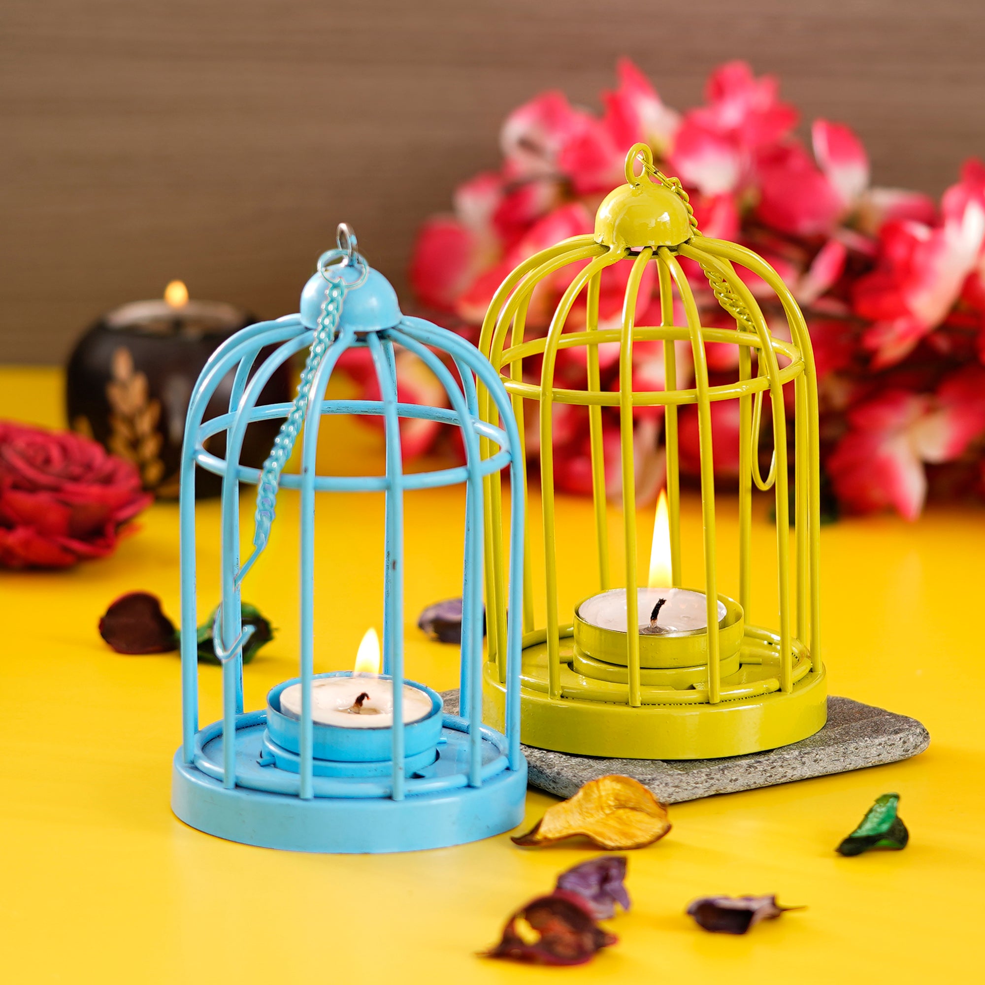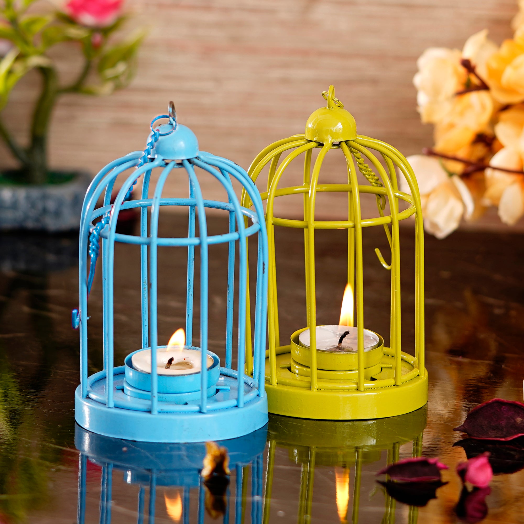 Product Description - Decorative tea light holders are in trend, especially the ones that have unique designs that stand as a great decor item during the festivals. They also help you decorate your home as well as the office space and enhance your festive decoration. eCraftIndia Set of 2 Blue and Green Cage Iron Tea Light Holder with hanging chain is the best for you to get your hands on. You can also gift this to your friends and family at festivals or other auspicious occasions. Diligently handcrafted using various ancient techniques by the artisans at eCraftIndia, this is the most unique and decorative tea light holder that you can get.