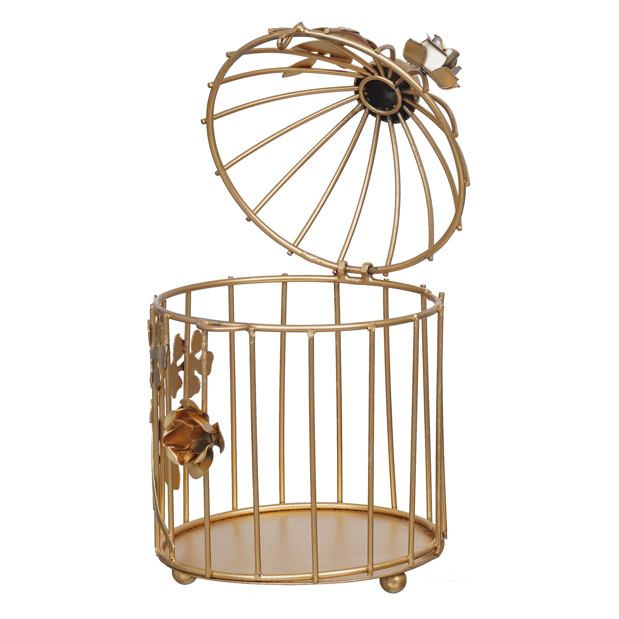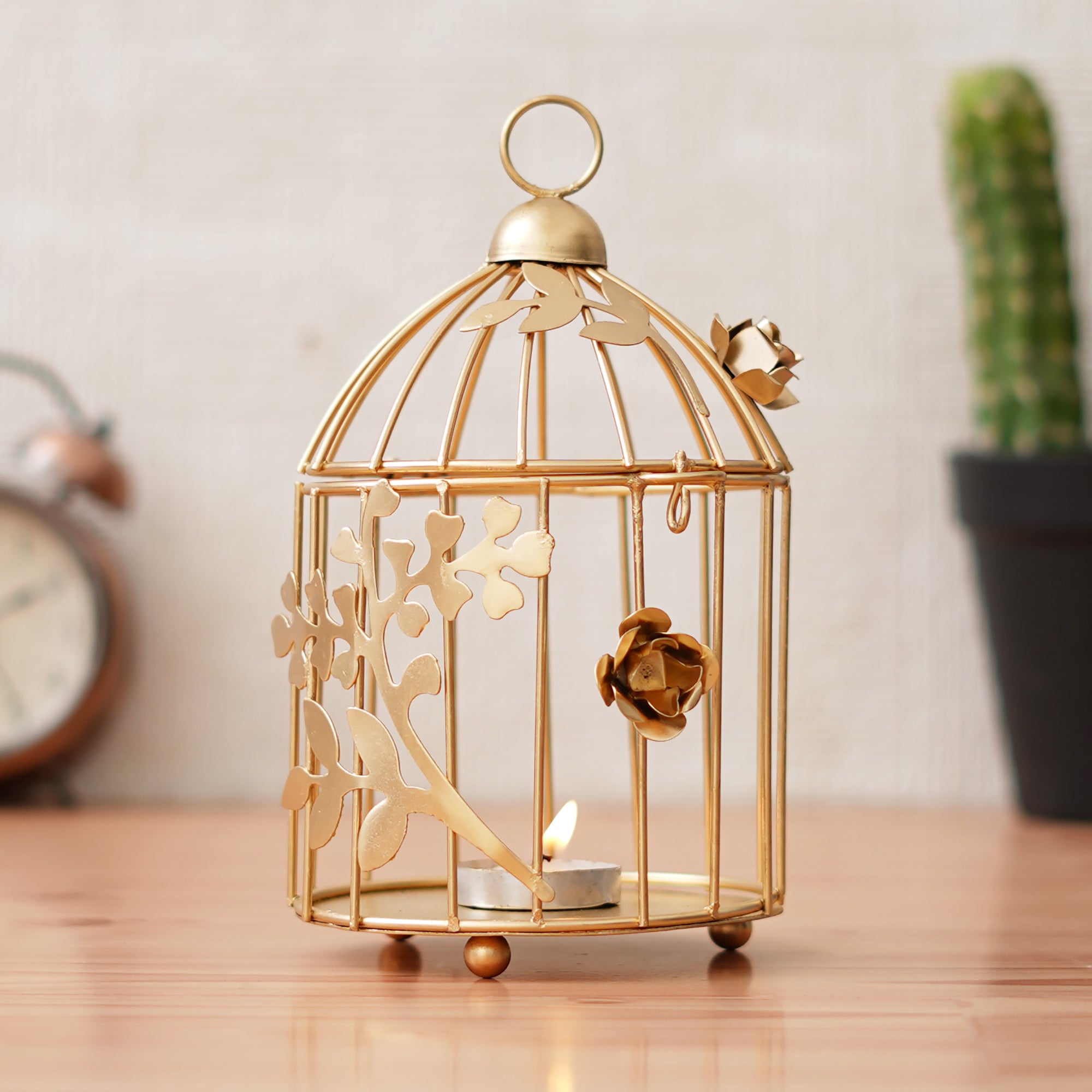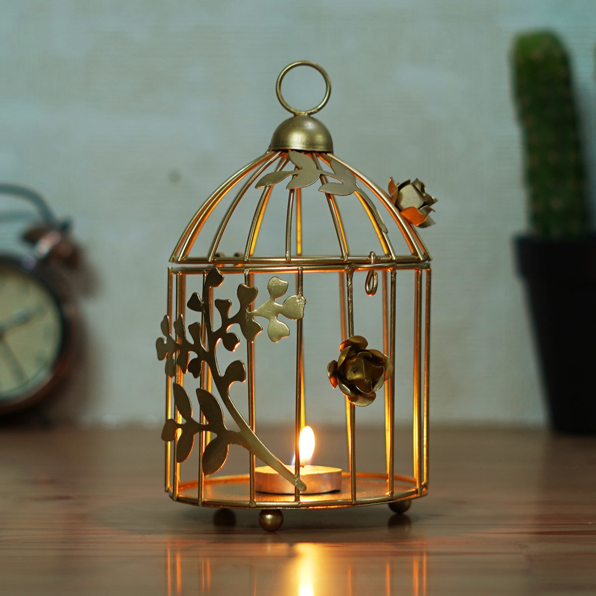 Product Description - Illuminate your spaces with elegance using the eCraftIndia Golden Metal Bird Cage with Floral Vine Decorative Hanging Tea Light Candle Holder. Crafted for reusability, it exudes timeless charm and offers cost-effective decoration options for your home, office, public areas, puja rooms, temples, and even outdoor decor. This exquisite piece doubles as a thoughtful gift on special occasions, spreading warmth and radiance. Embrace the Vastu benefits it brings by placing it strategically to enhance the positive energy in your surroundings. With its durable design, this candle holder promises longer-lasting beauty, making it an enchanting addition to your decor and a cherished delight for you and your loved ones.