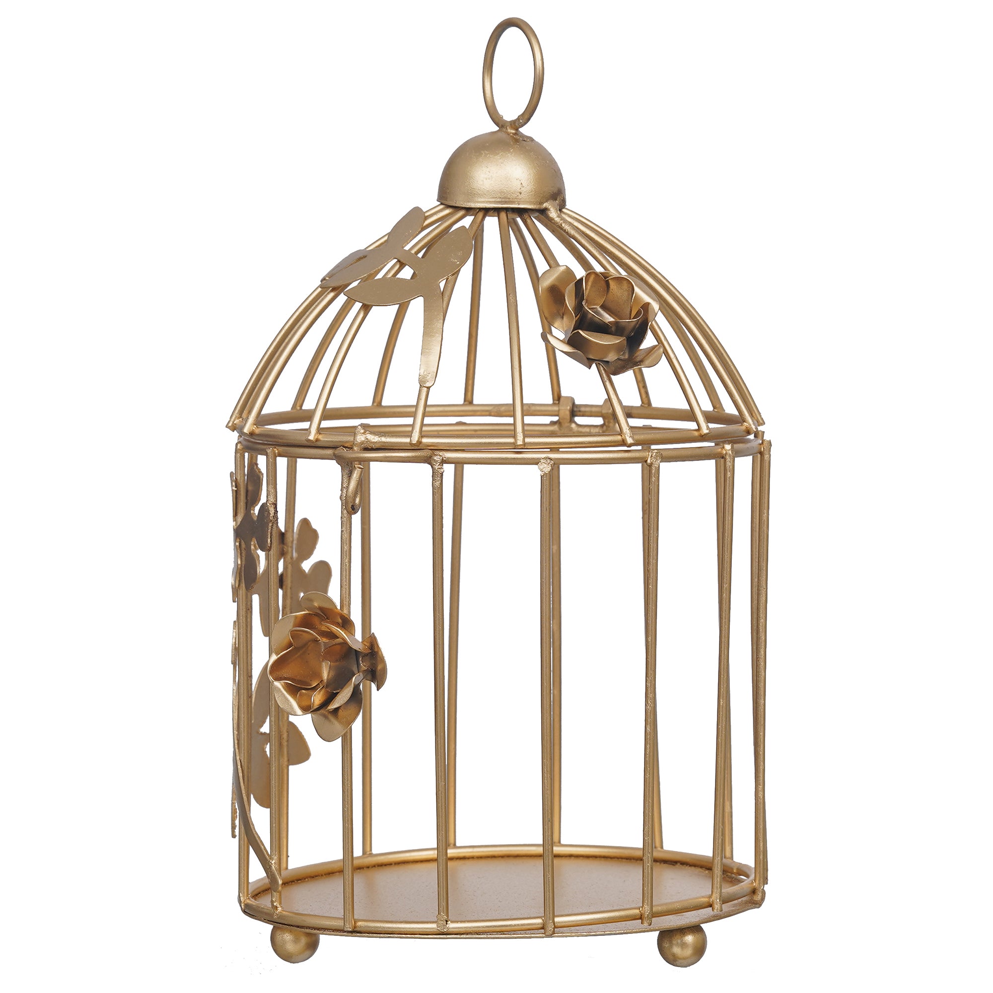 Package Content - One Golden Metal Bird Cage With Floral Vine Decorative Hanging Tea Light Candle Holder