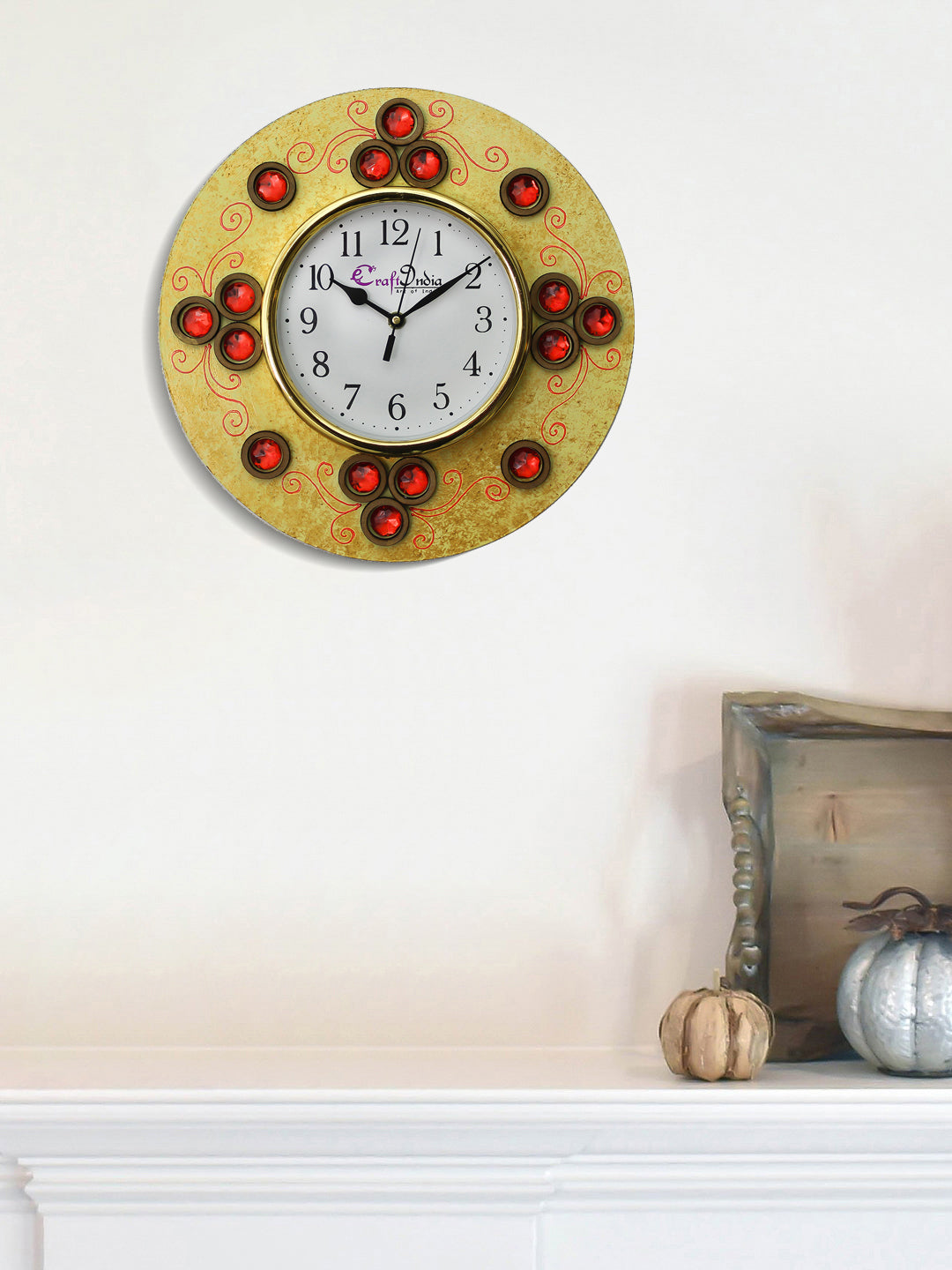 Handcrafted Antique Design Papier-Mache Wooden Wall Clock