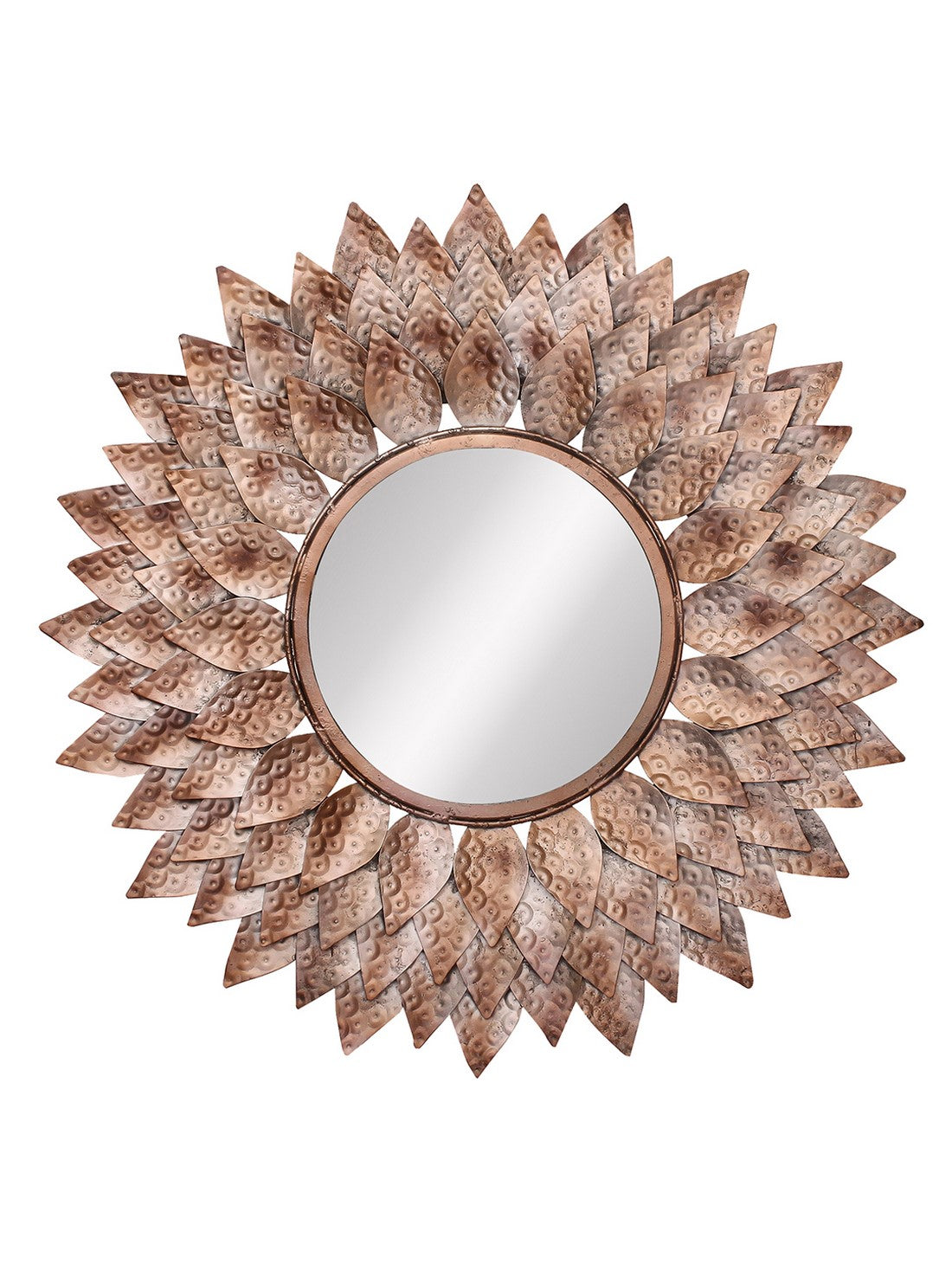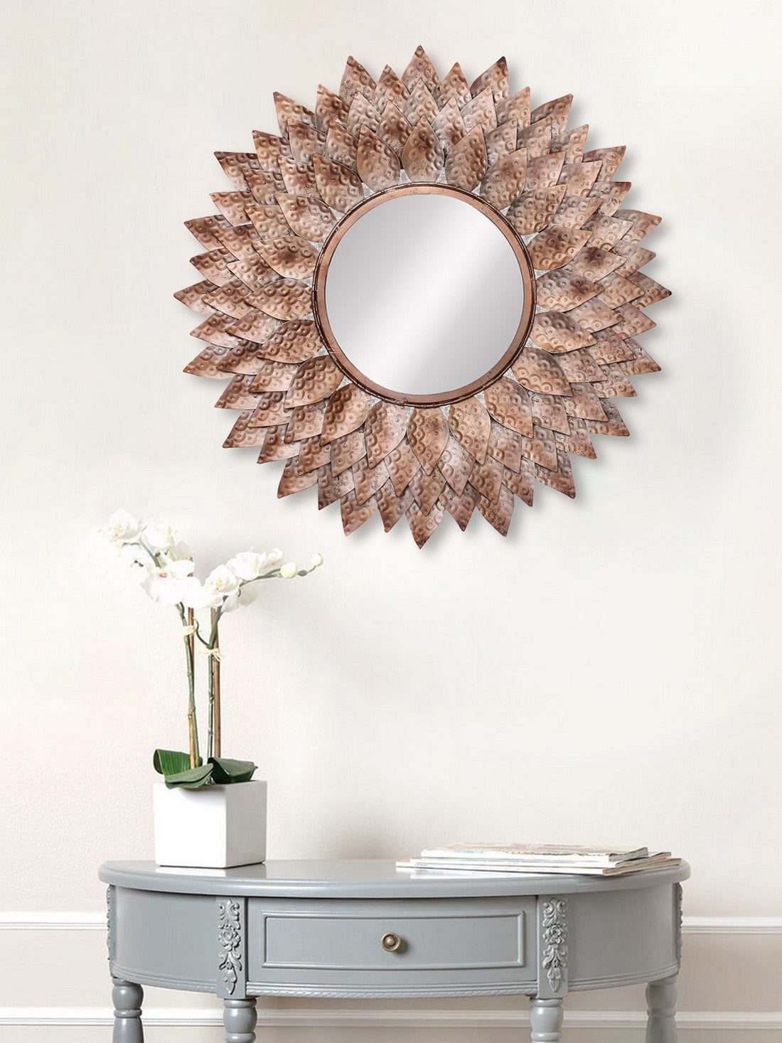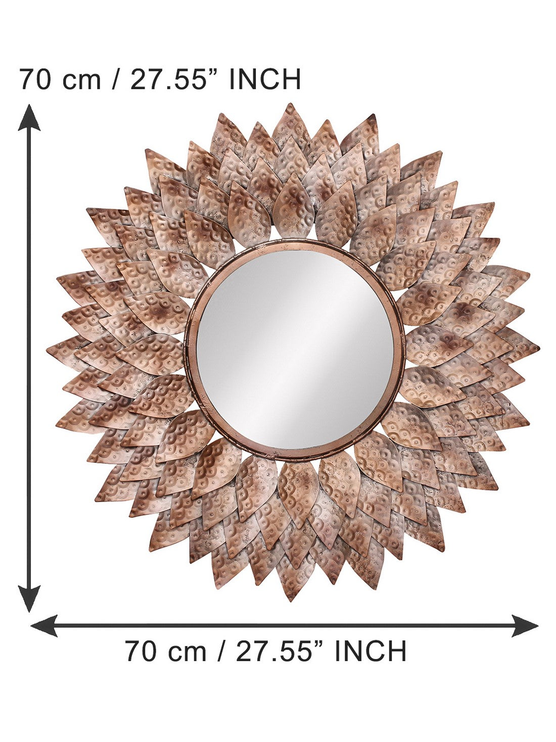 Package Content - One Brown, Copper and Black Decorative Metal Handcarved Wall Mirror