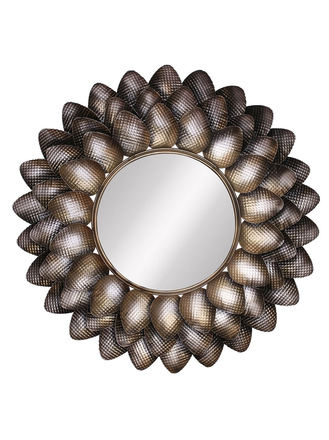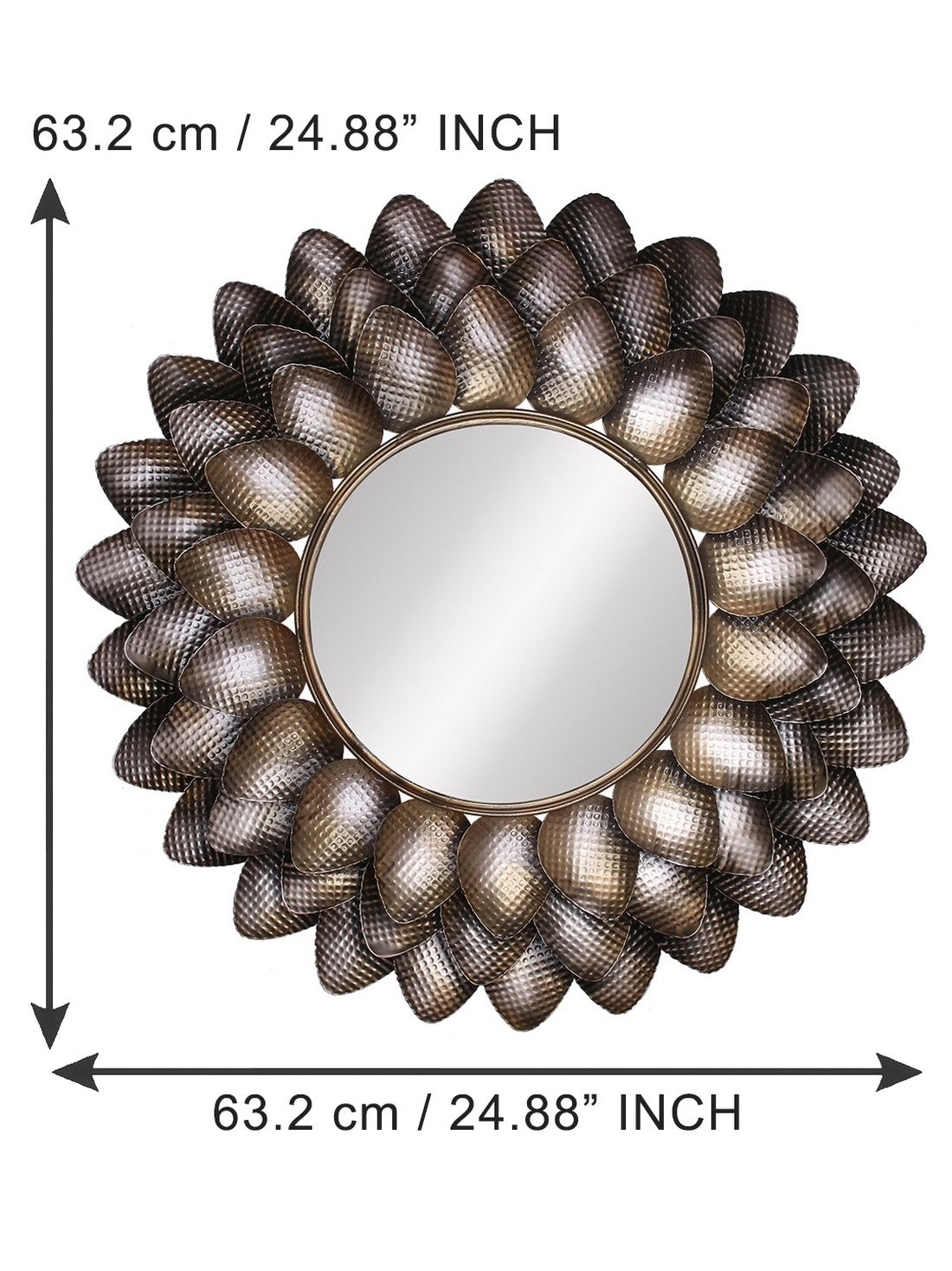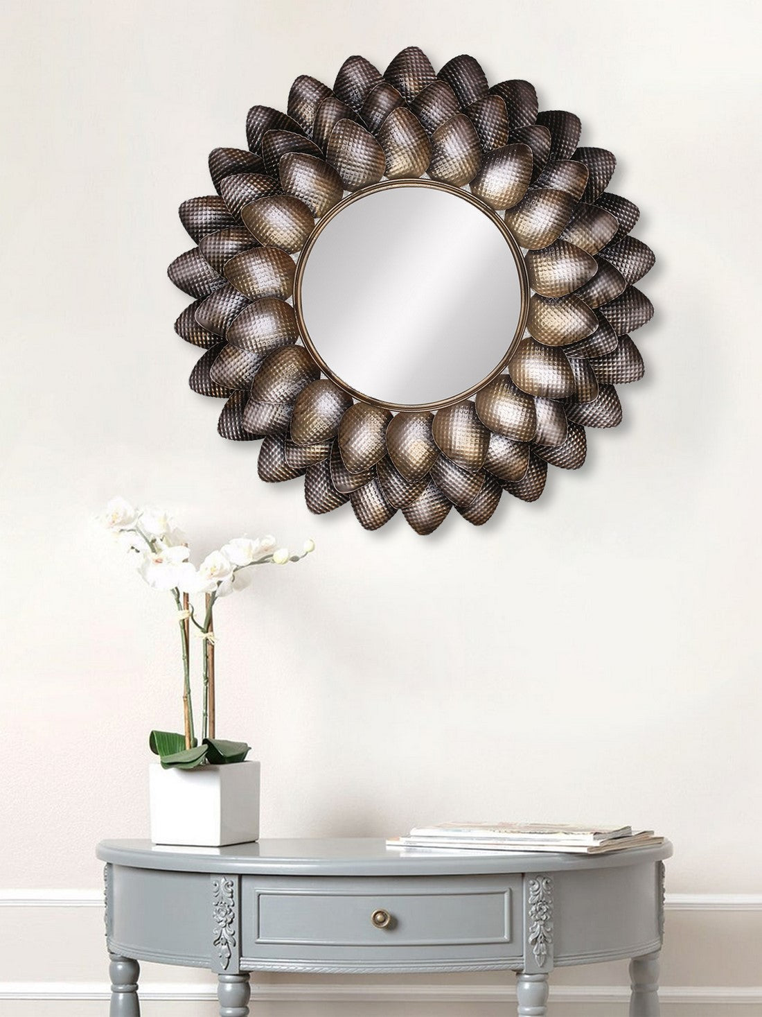 Package Content - One Black and Brown Decorative Metal Handcarved Wall Mirror