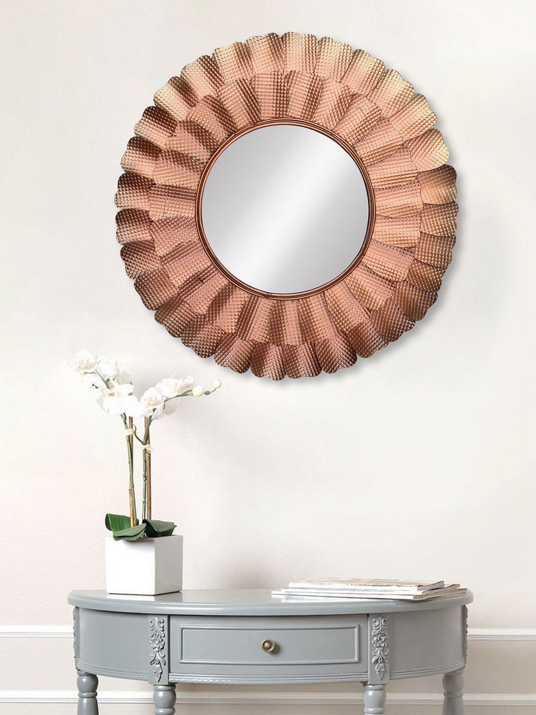 Package Content - One Copper Decorative Metal Handcarved Wall Mirror