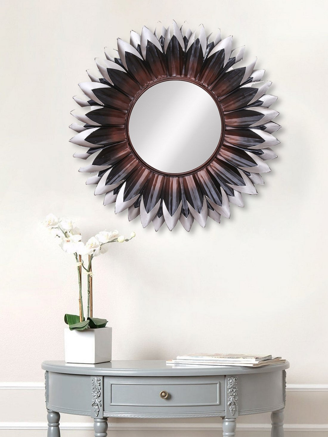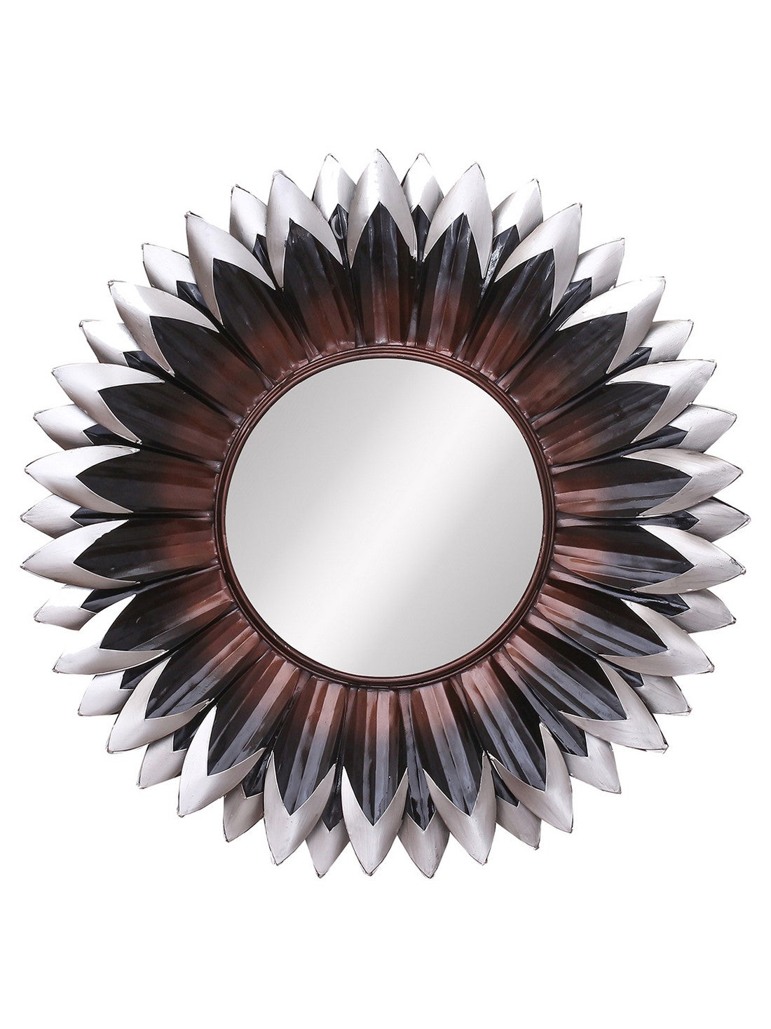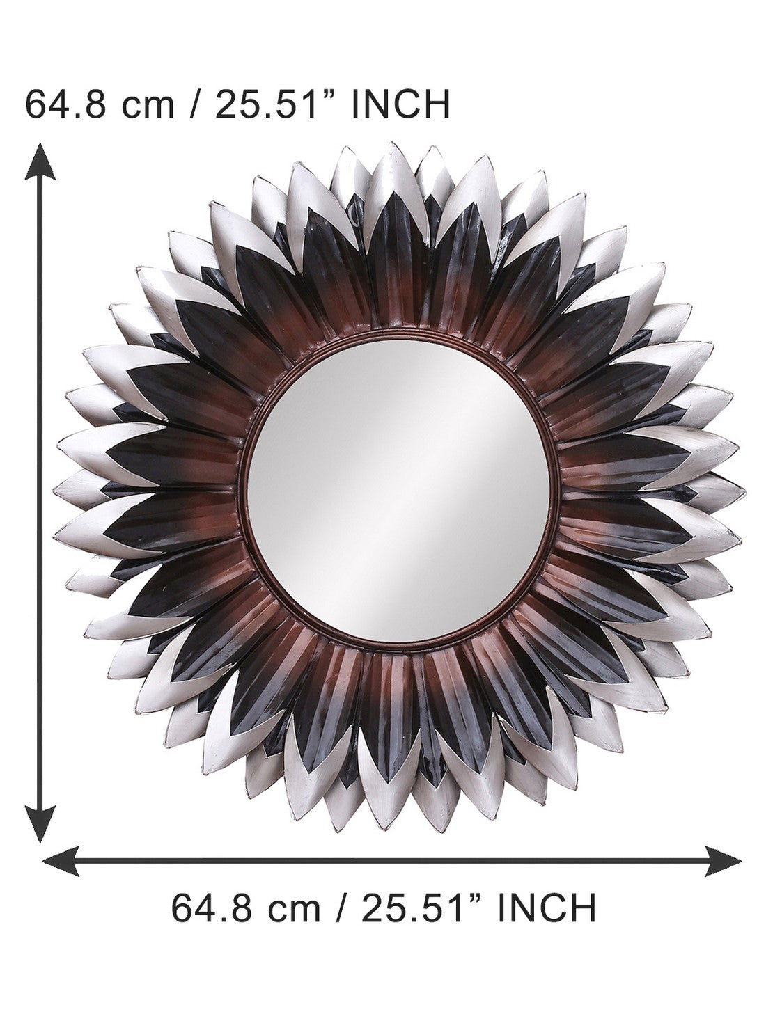 Package Content - One Brown, Black and Grey Decorative Metal Handcarved Wall Mirror