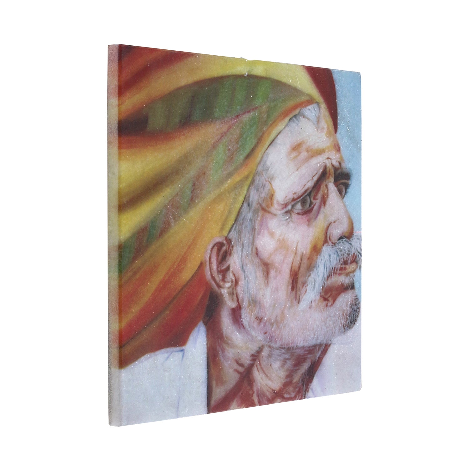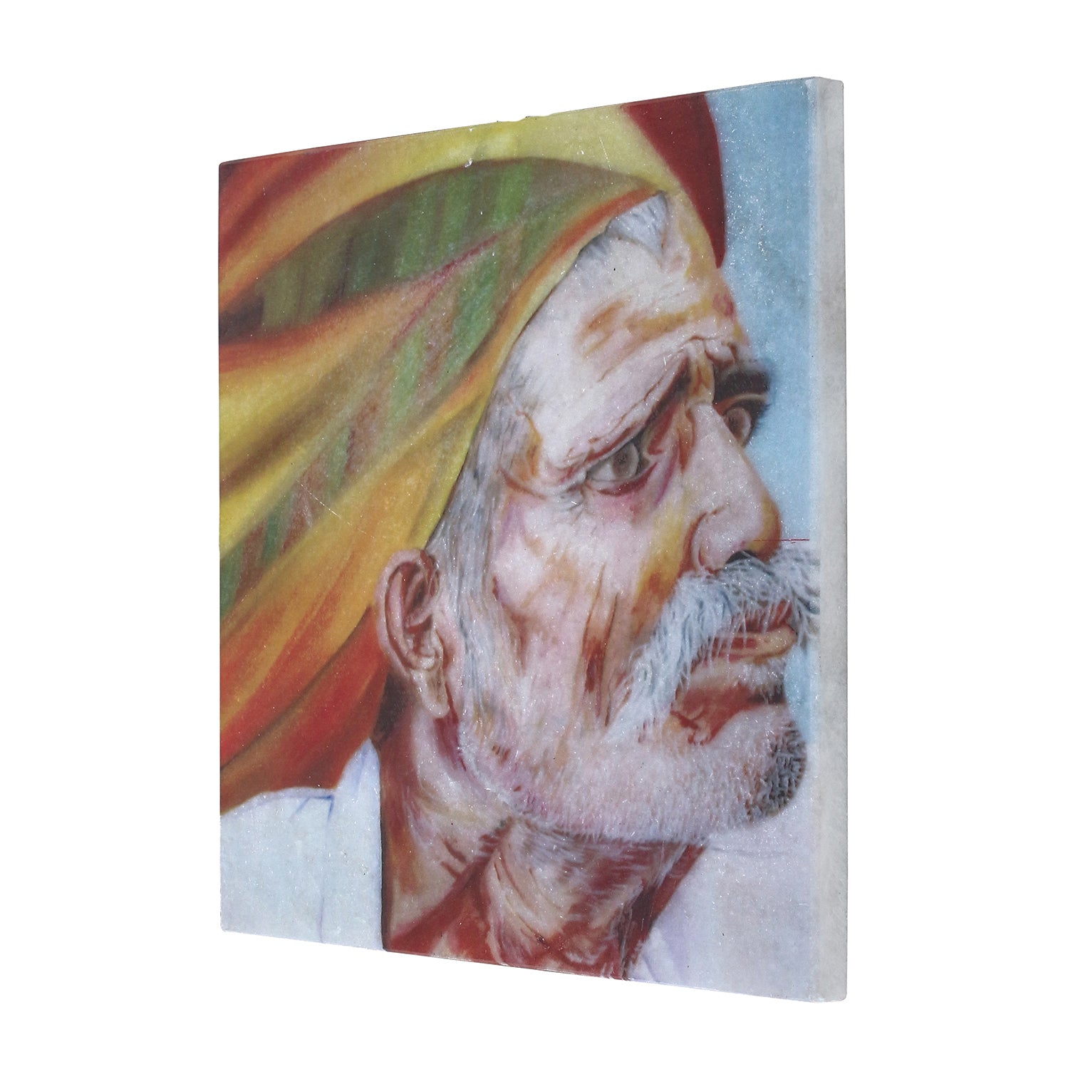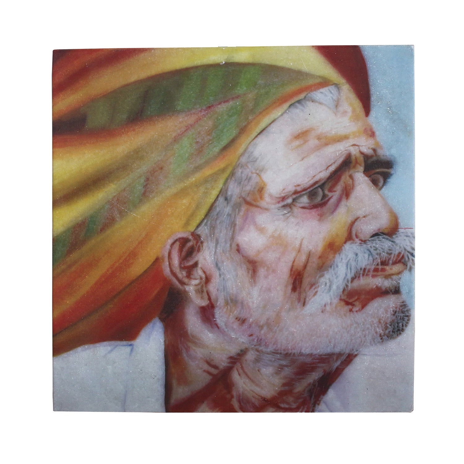 Package Content - One Rajasthani Old Man Wearing Turban Painting On Marble Square Tile