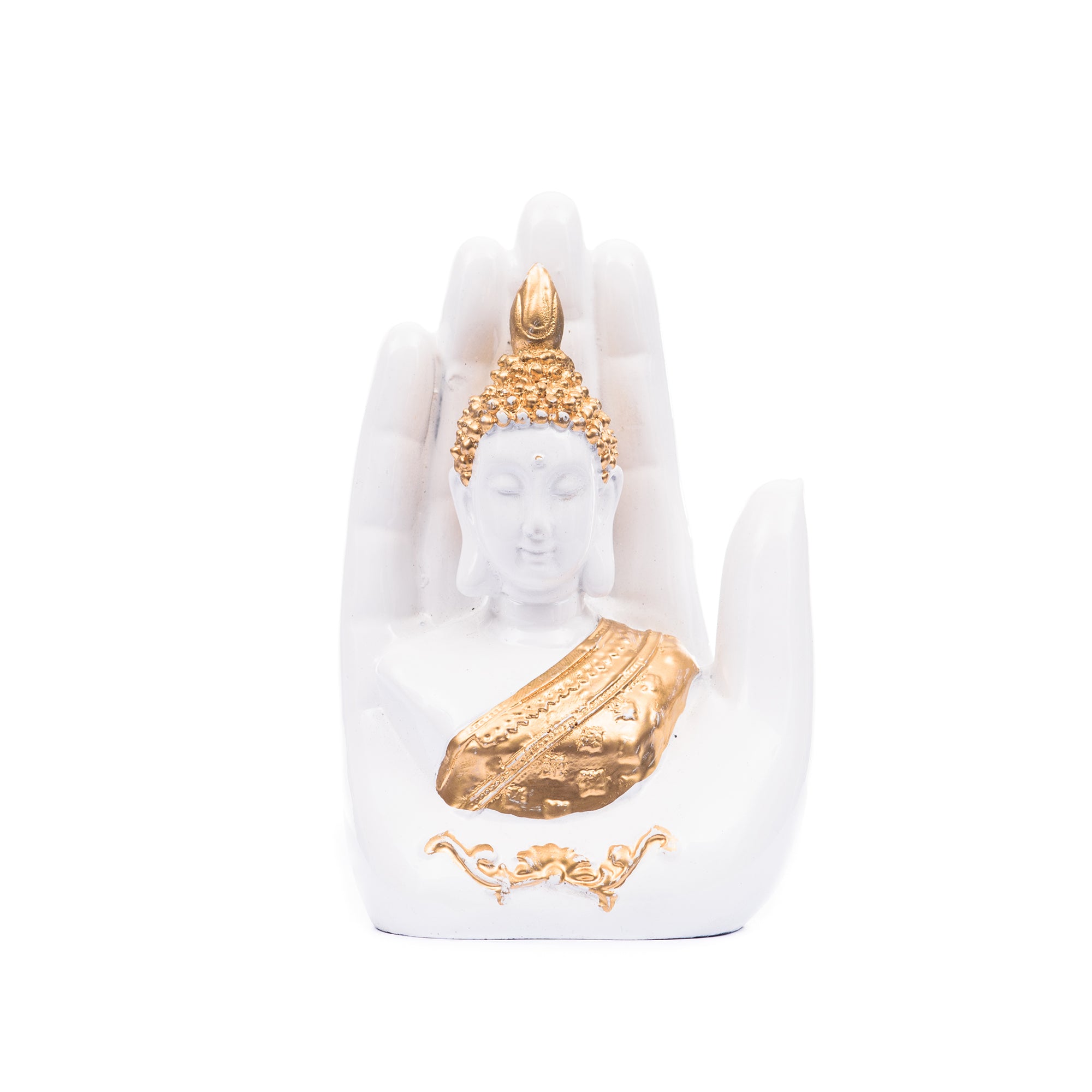 Package Content - One Decorative Palm Buddha Figurine Showpiece - 17 cm(Polyresin, White)