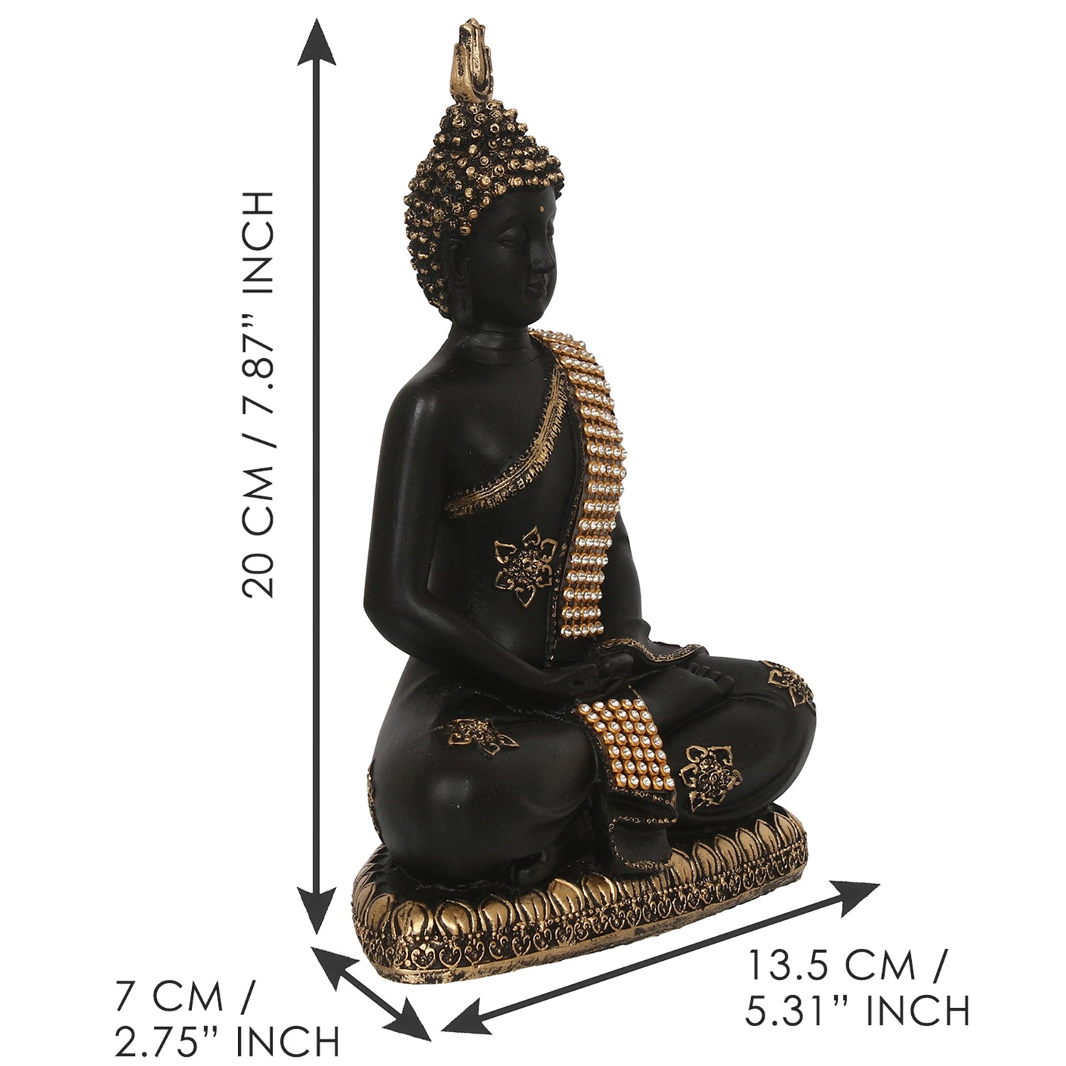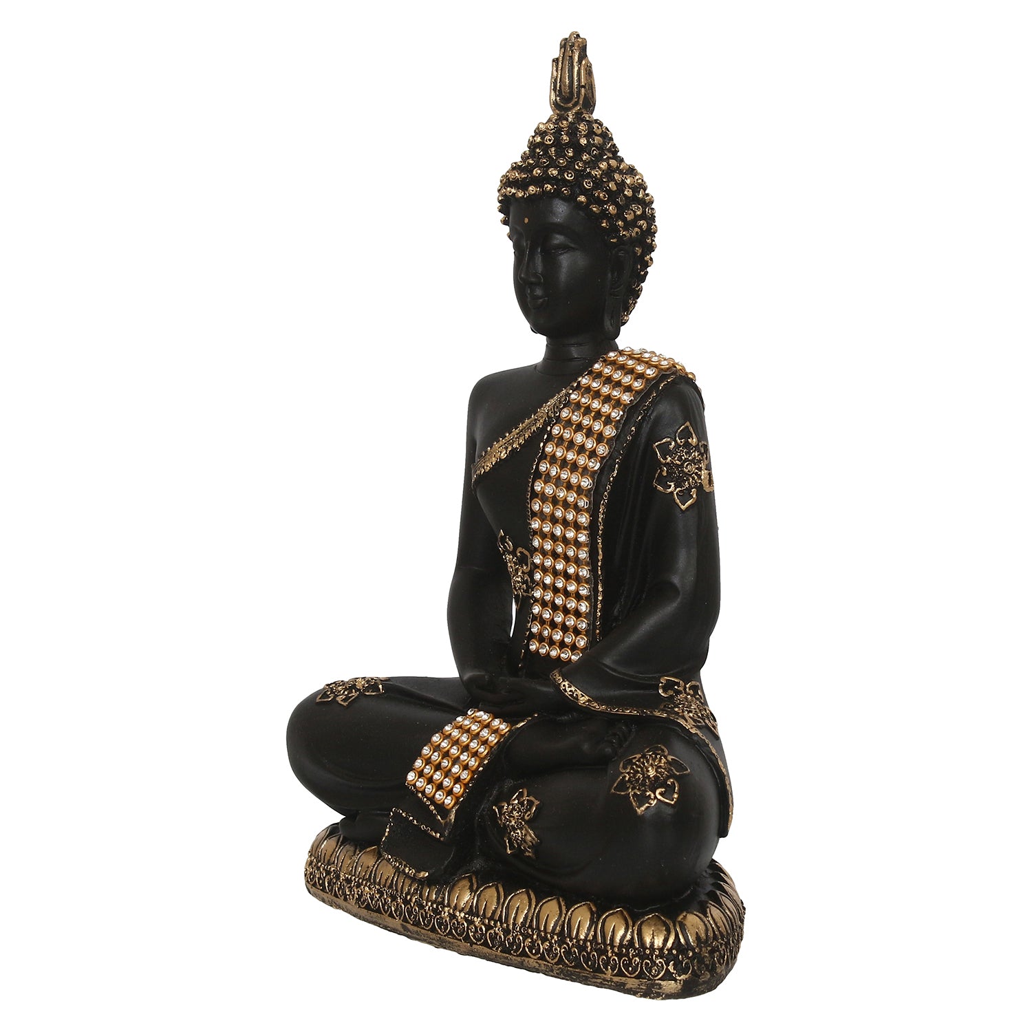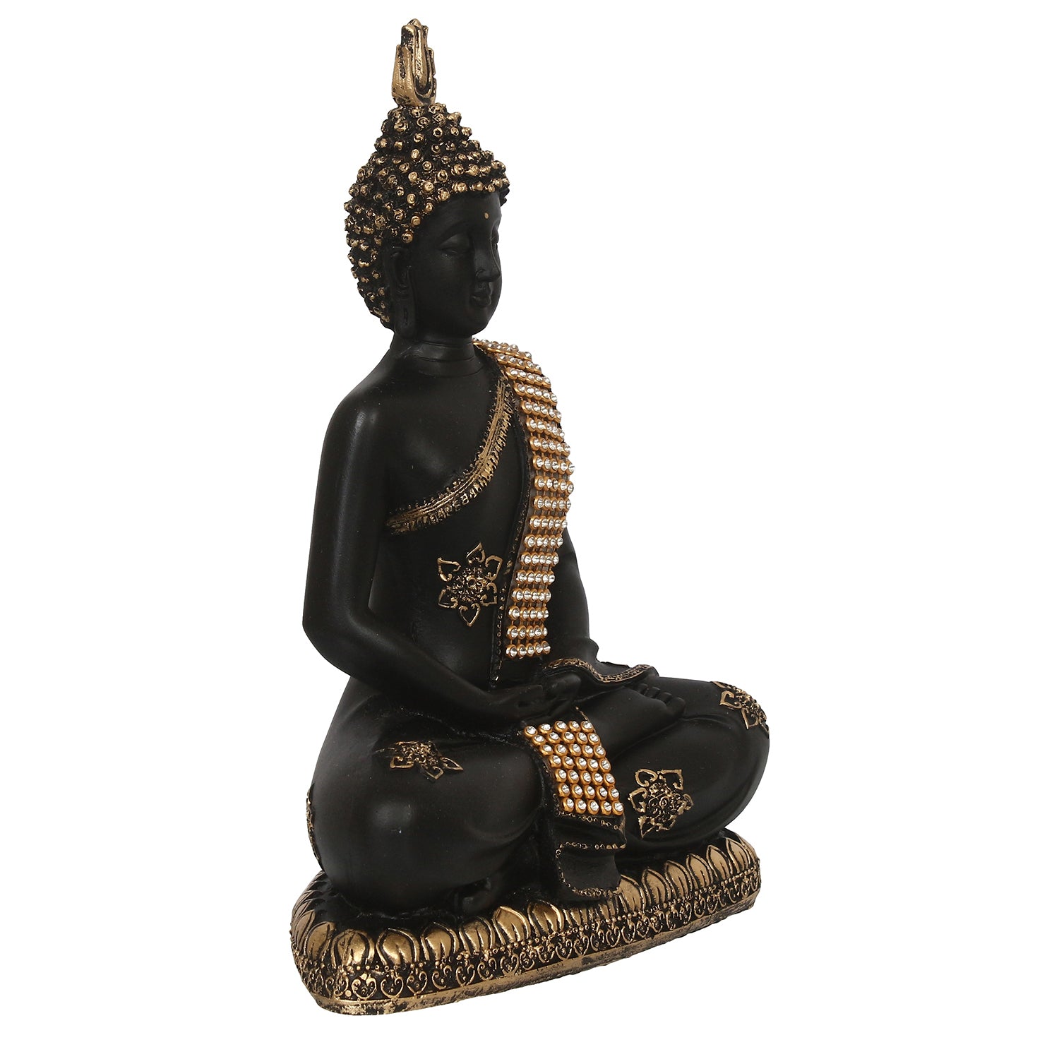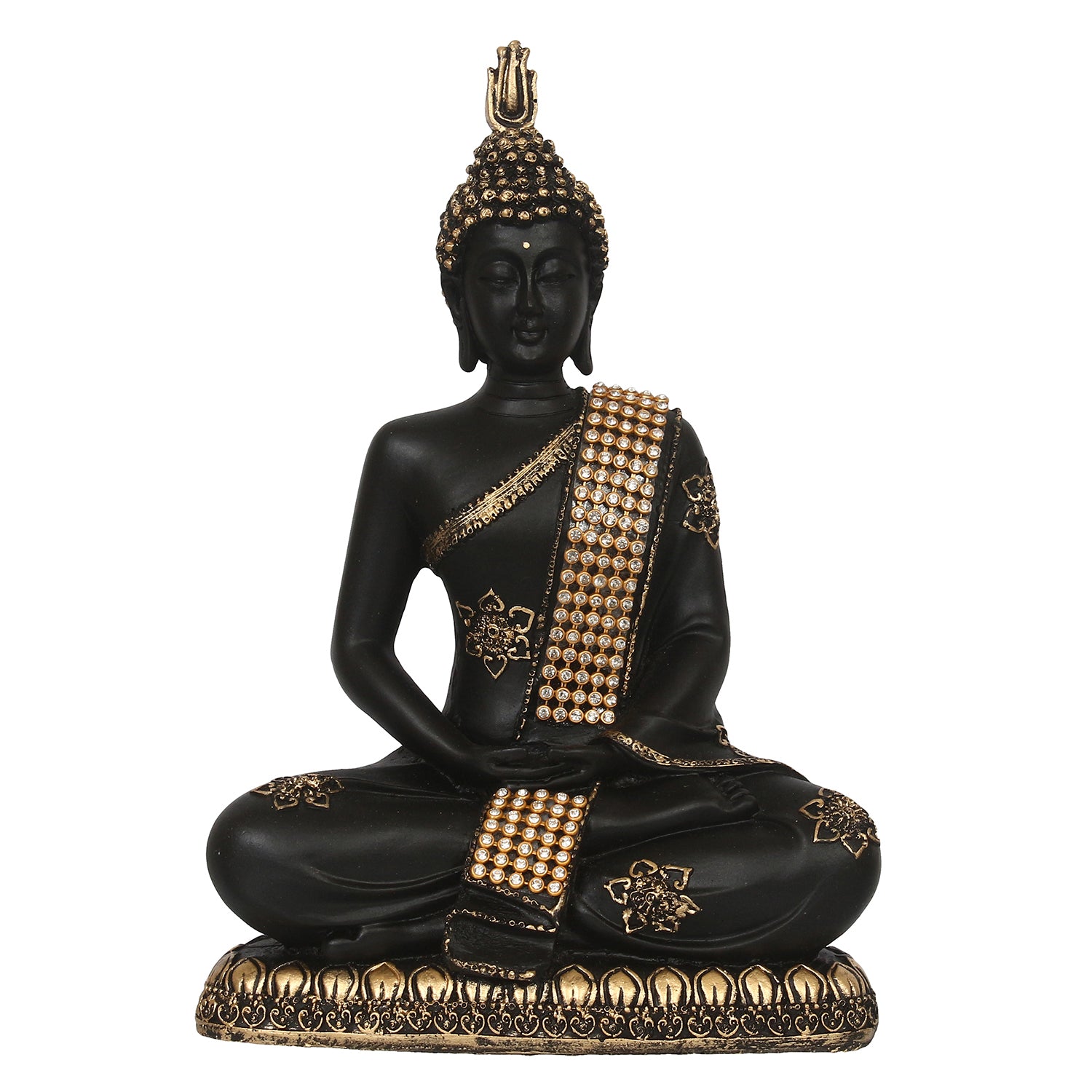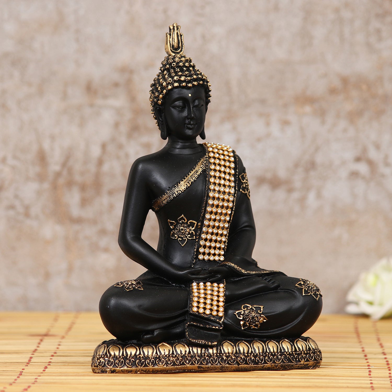 Product Description - Buddha has a way of calming you down– whether you see him in a photo, a painting, or a figurine– no wonder you will get to see Buddha statues in meditation rooms, yoga studios, and even homes. When you choose to buy this particular black & golden meditating Buddha statue or figurine, you can invite the same sense of calm into your home and life too. Made using polyresin, this Buddha has intricate detailing all over; for instance, the gold work stands out on the black base. Choose this figurine for your home, office, or as a gift! It serves as a great gift, especially around religious celebrations and festivities. This handicraft has been made by skilled artisans from the house of eCraftIndia using various traditional techniques.
