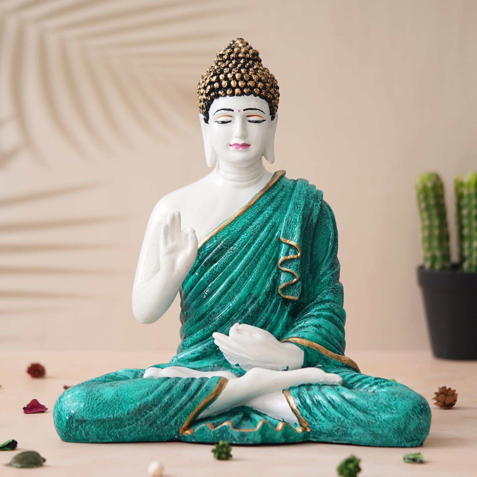 Product Description - Discover serenity with eCraftIndia's Blue Polyresin Handcrafted Blessing Lord Buddha Idol. This serene Buddha statue is a source of inspiration and tranquility, perfect for your meditation room, living area, or office. Whether it's a birthday, housewarming, or any special occasion, gifting this idol represents bestowing blessings and inner peace. According to Vastu, it attracts positivity and spiritual harmony, making it a meaningful addition to your space. Embrace the serene presence of Lord Buddha and invite a sense of calm and enlightenment into your surroundings with this exquisite, handcrafted idol that serves as a symbol of grace and serenity.