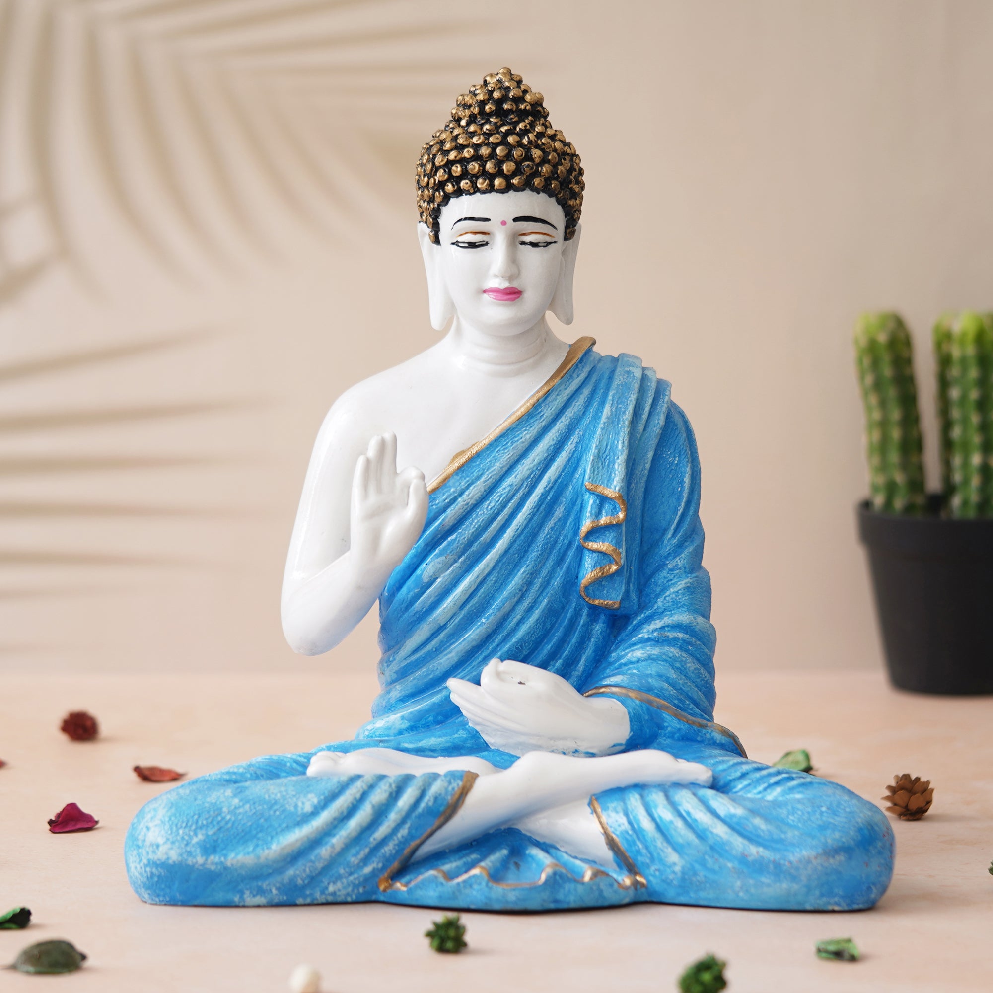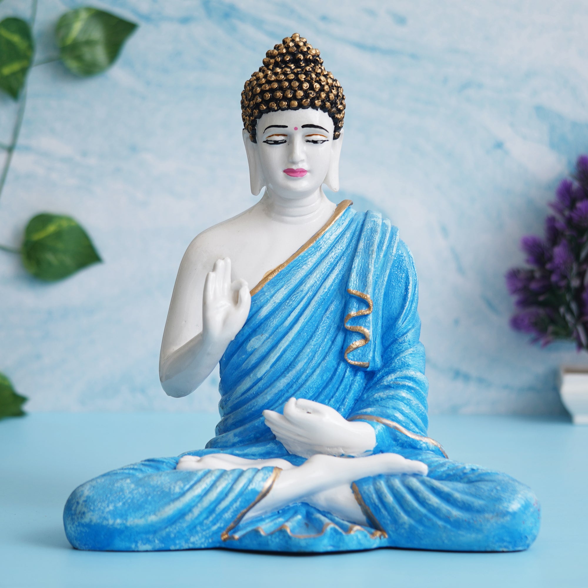 Package Content - One Blue Polyresin Handcrafted Blessing Lord Buddha Idol