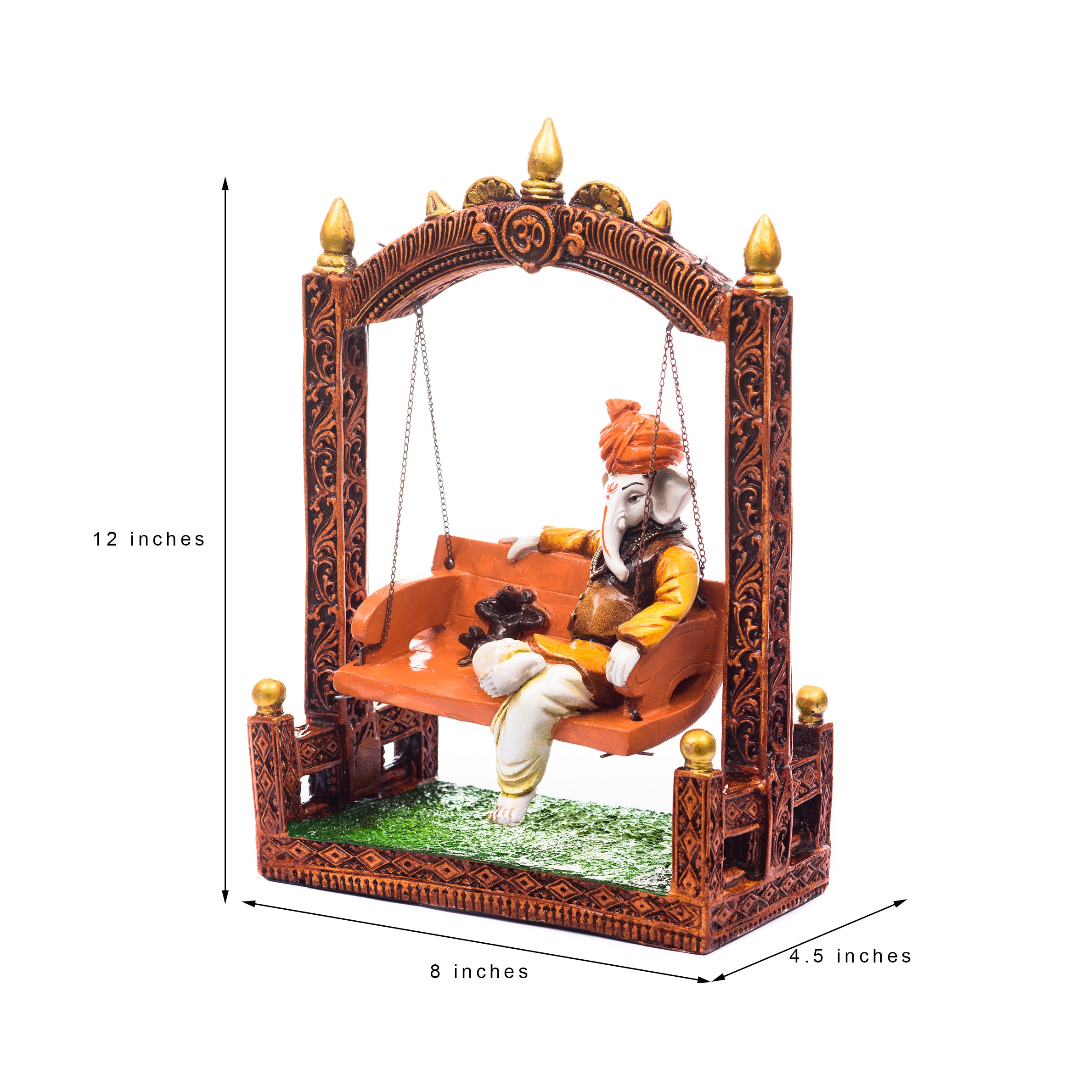 Product Description - Seated on an elaborate and intricately carved jhoola is a relaxed-looking Lord Ganesha and his dear friend Mooshak! If you are looking to add some color, spirituality, and whimsy to your interiors, then this is the décor piece that you will want. The detailing on the jhoola is impressive and you are sure to fall in love with our brown Mouse & Lord Ganesha idol on the swing showpiece. We are pretty sure that you will want to gift this to all your loved ones too! Lord Ganesha is known for bringing well-being, success, and overcoming obstacles. Placement of Ganesha brings good luck, prosperity & wealth to your home. If you are out looking for the perfect Ganesha idol that is elegant yet reflects your religious belief, then this is the perfect pick. This idol from eCraftIndia is the best fit for décor as well as gifting purposes. This handcrafted piece of brilliance is an ode to the talent and creativity of Indian artisans and is very easy to maintain as well.