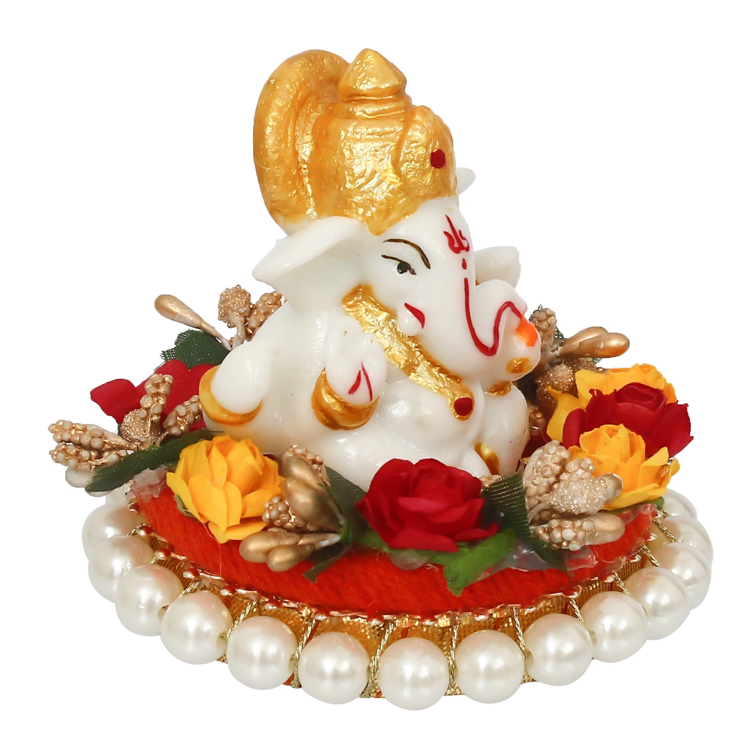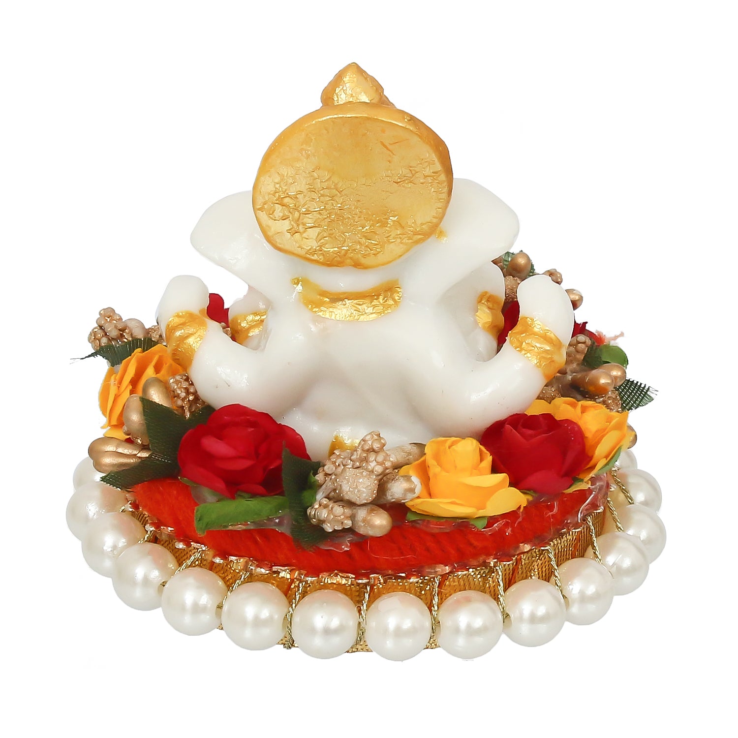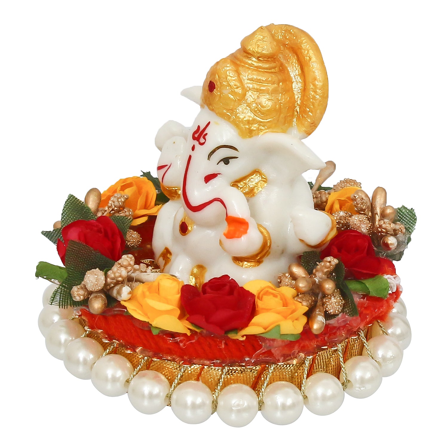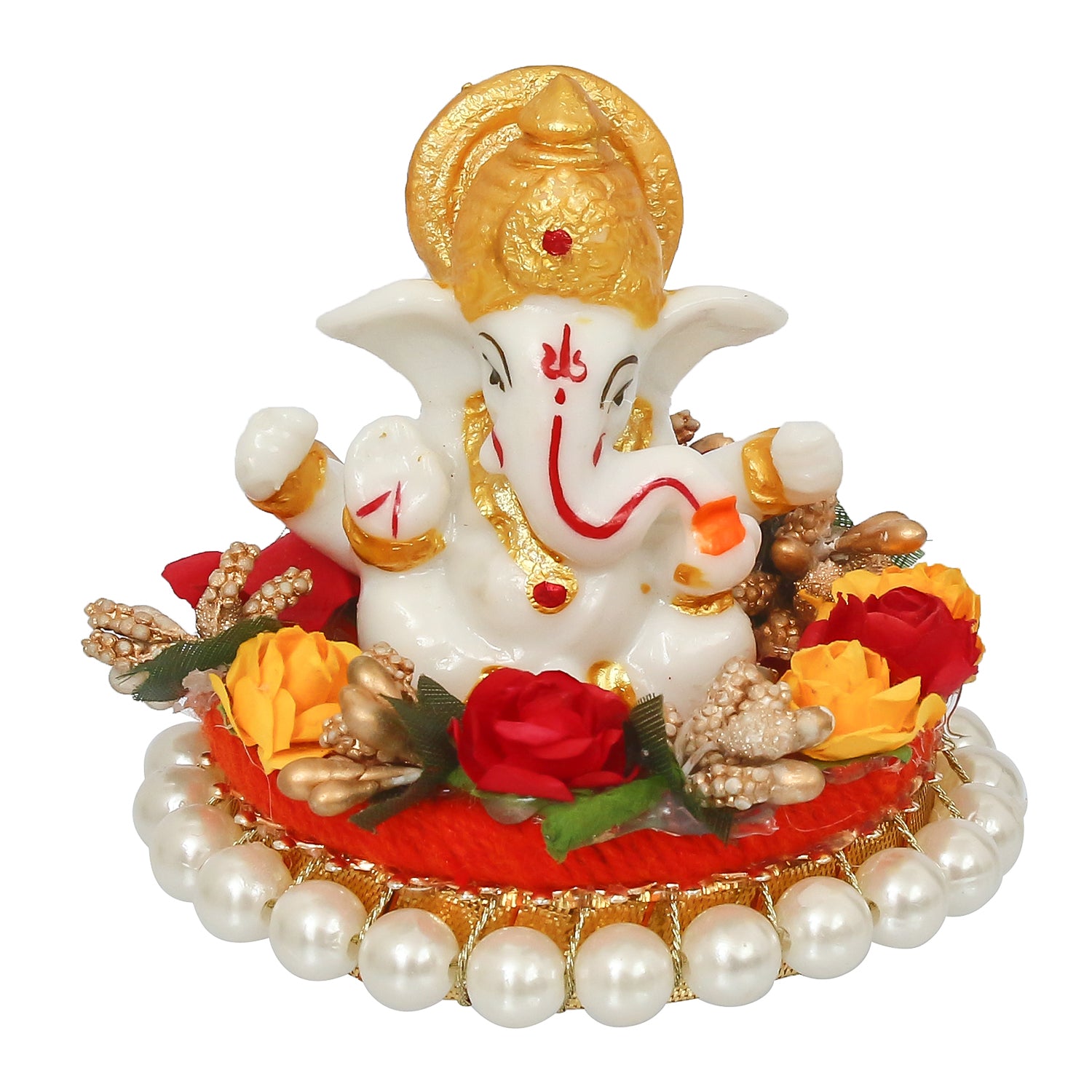 Package Content - One Lord Ganesha Idol on Decorative Handcrafted Plate for Home and Car