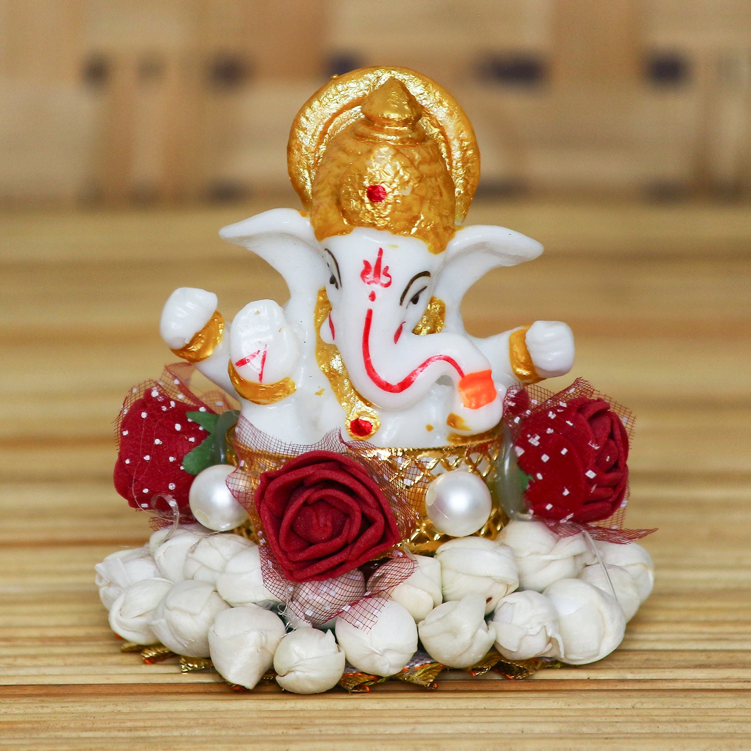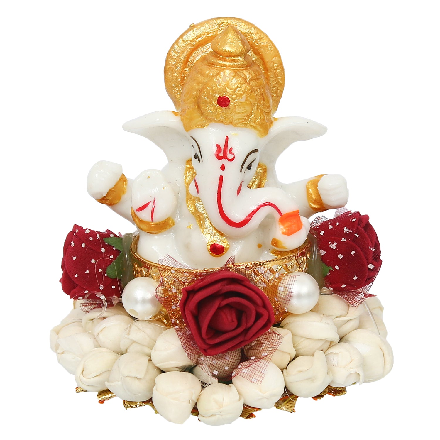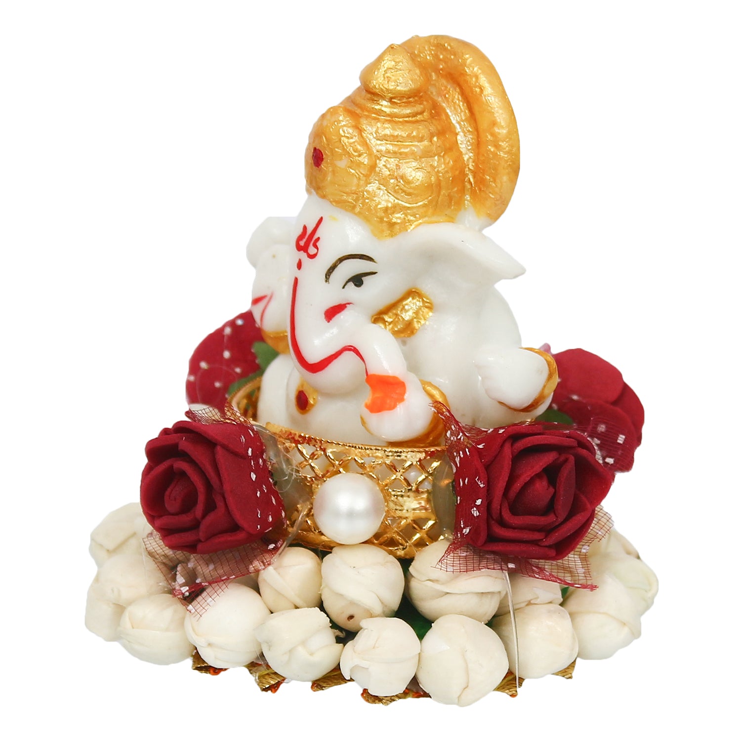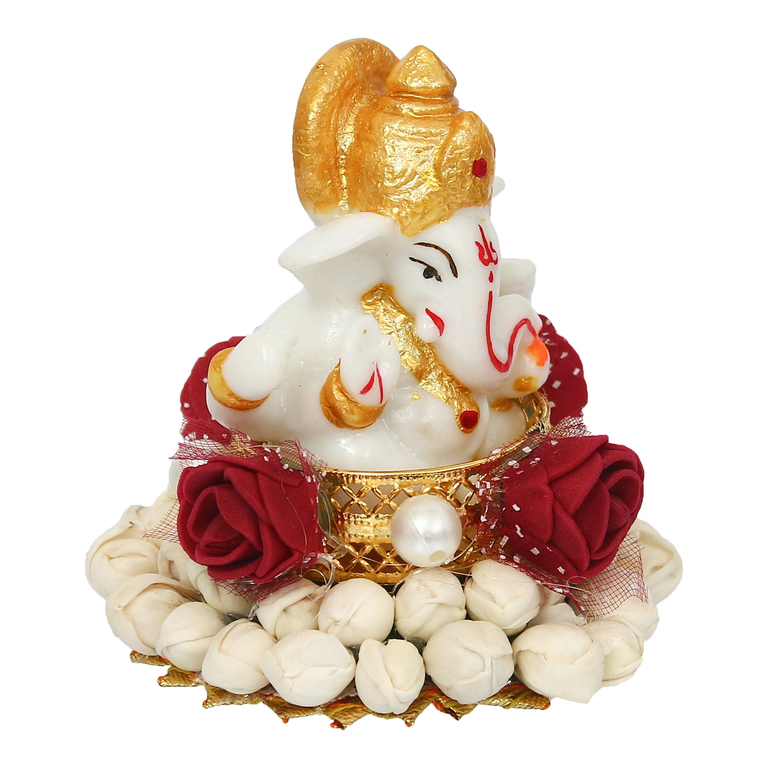Package Content - One Lord Ganesha Idol on Decorative Handcrafted Plate for Home and Car
