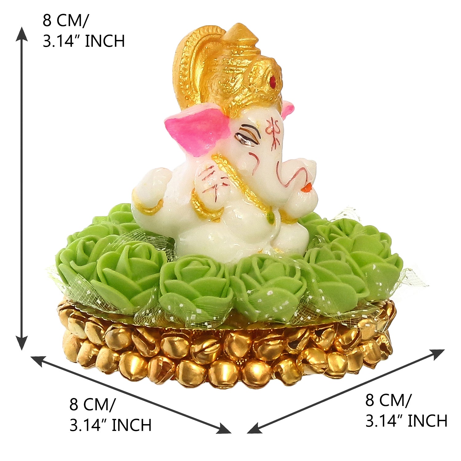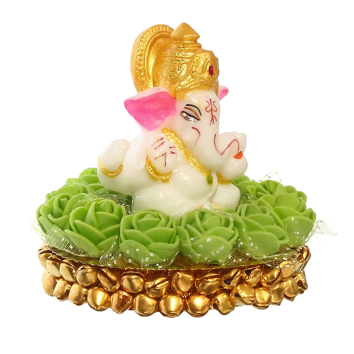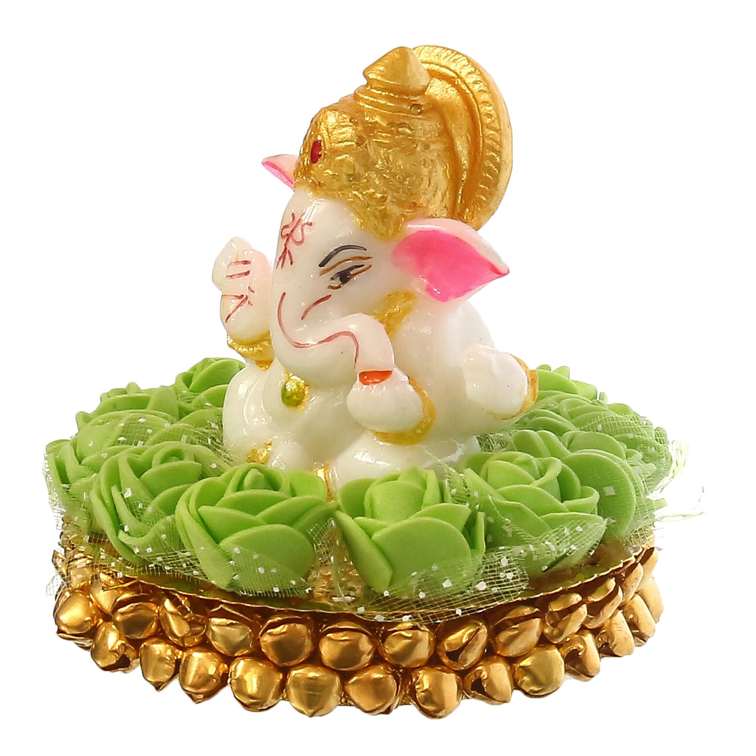 Package Content - One Lord Ganesha Idol on Decorative Handcrafted Plate with Green Flowers