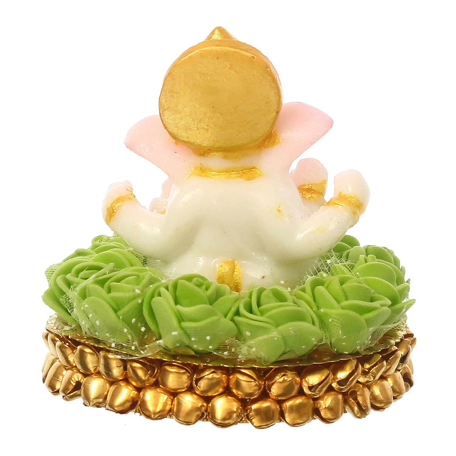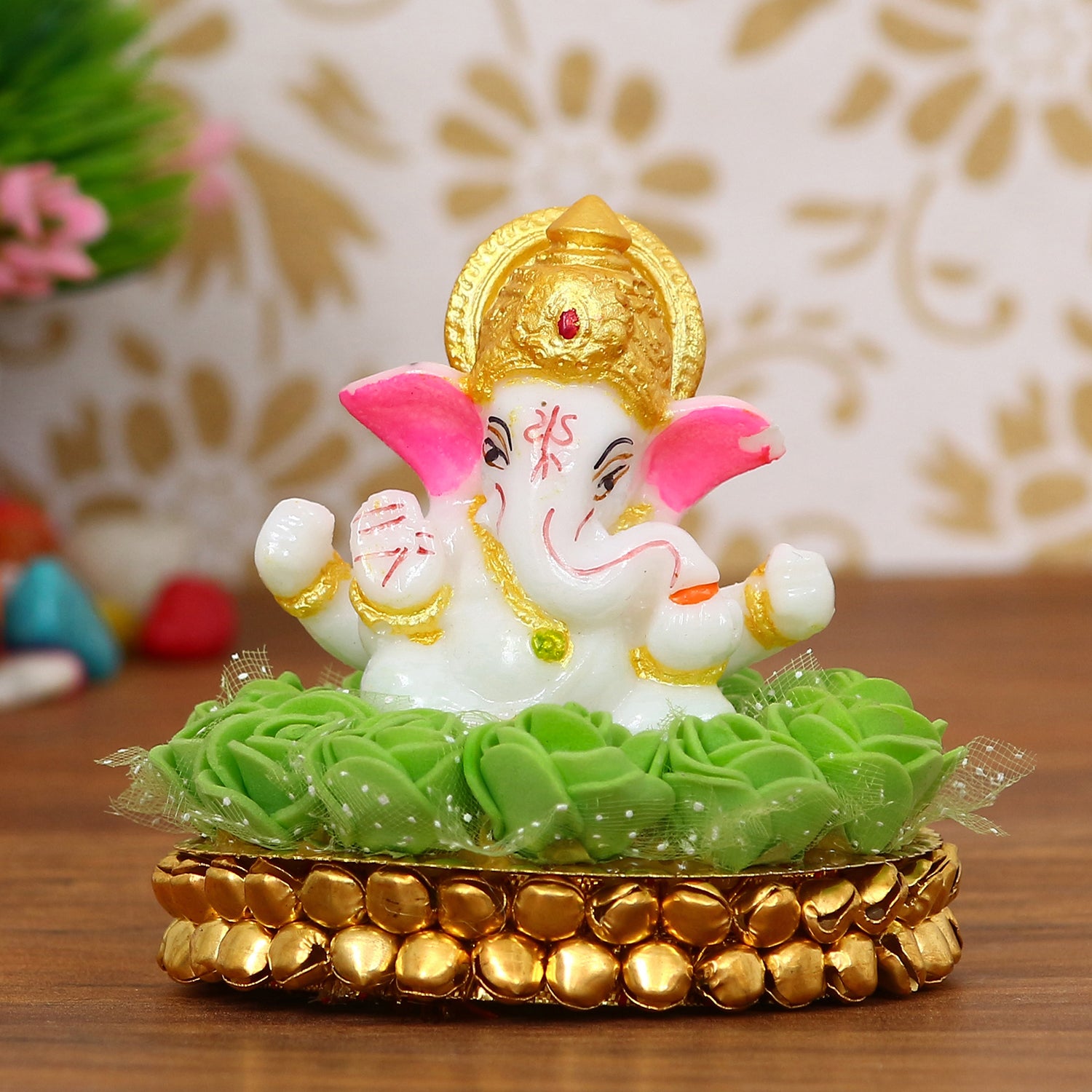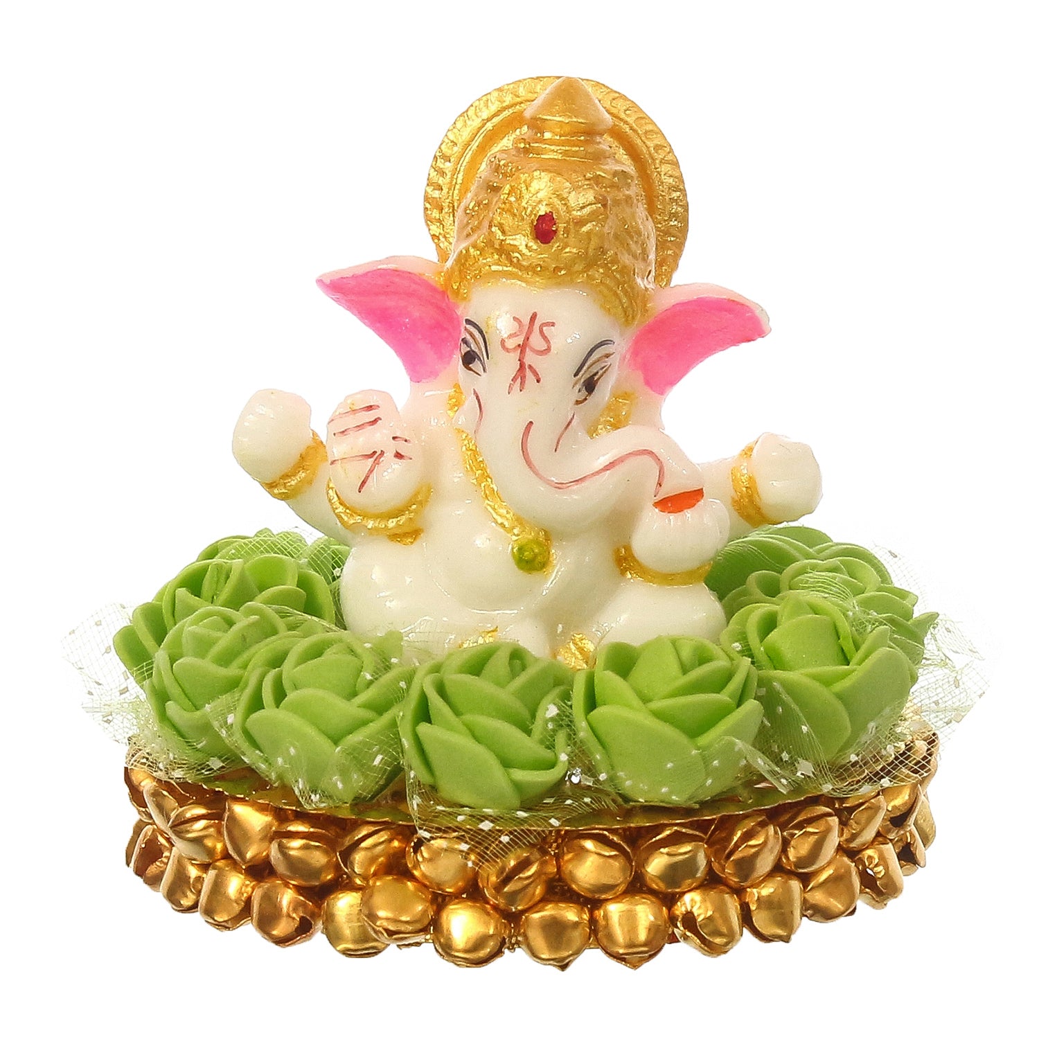 Package Content - One Lord Ganesha Idol on Decorative Handcrafted Plate with Green Flowers