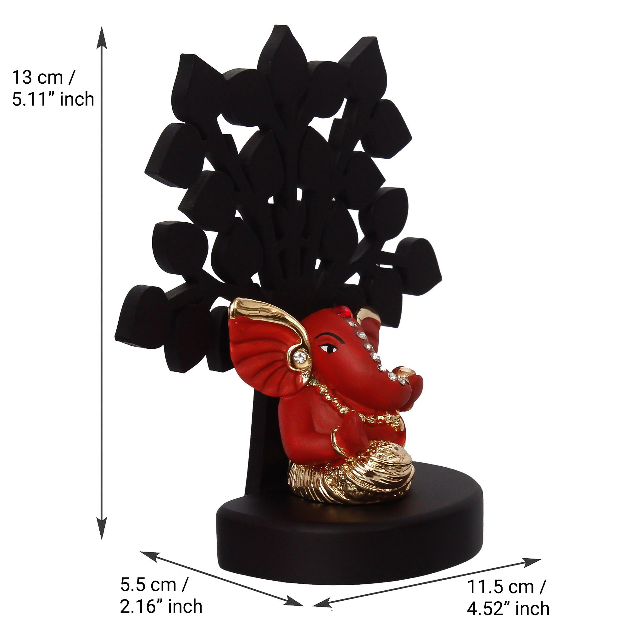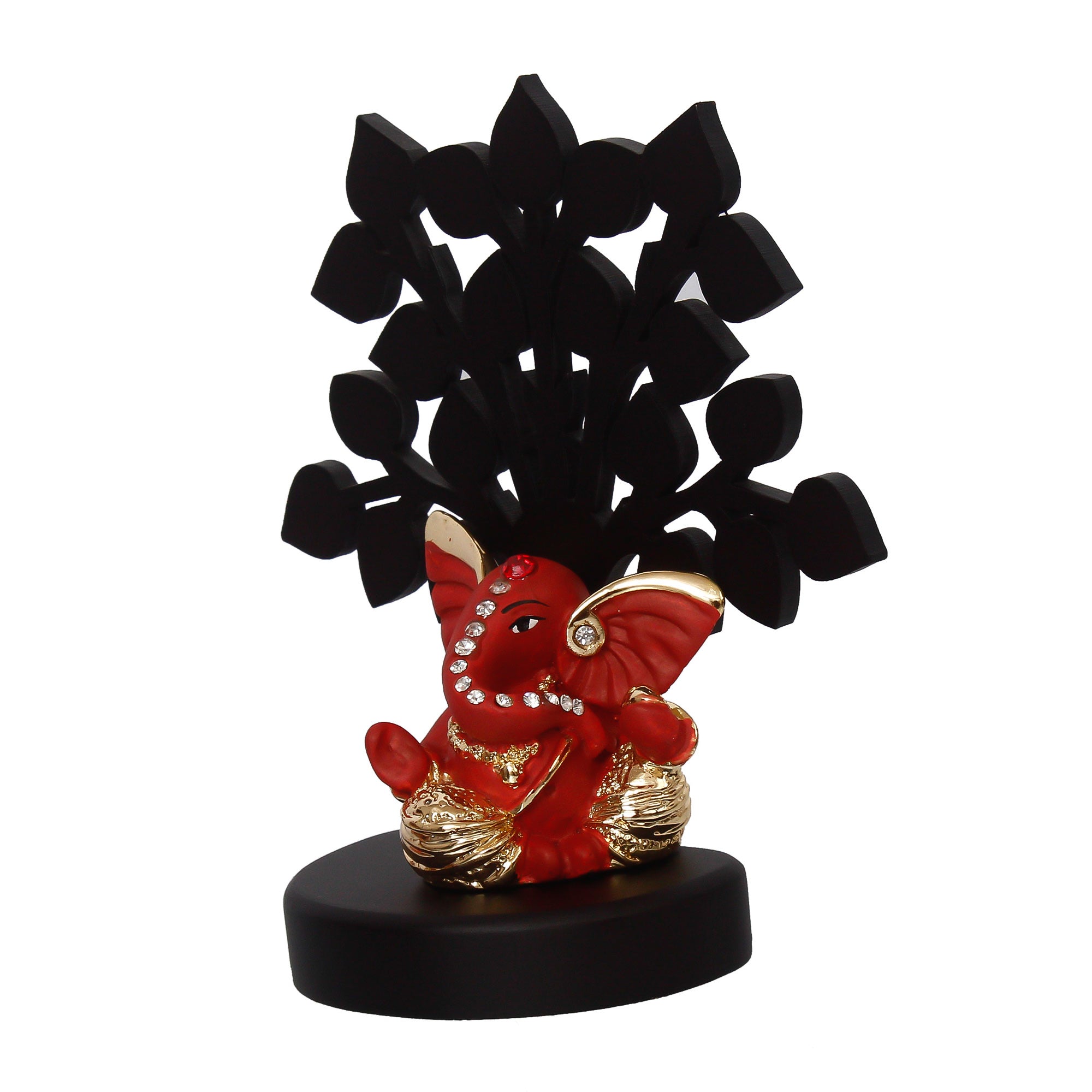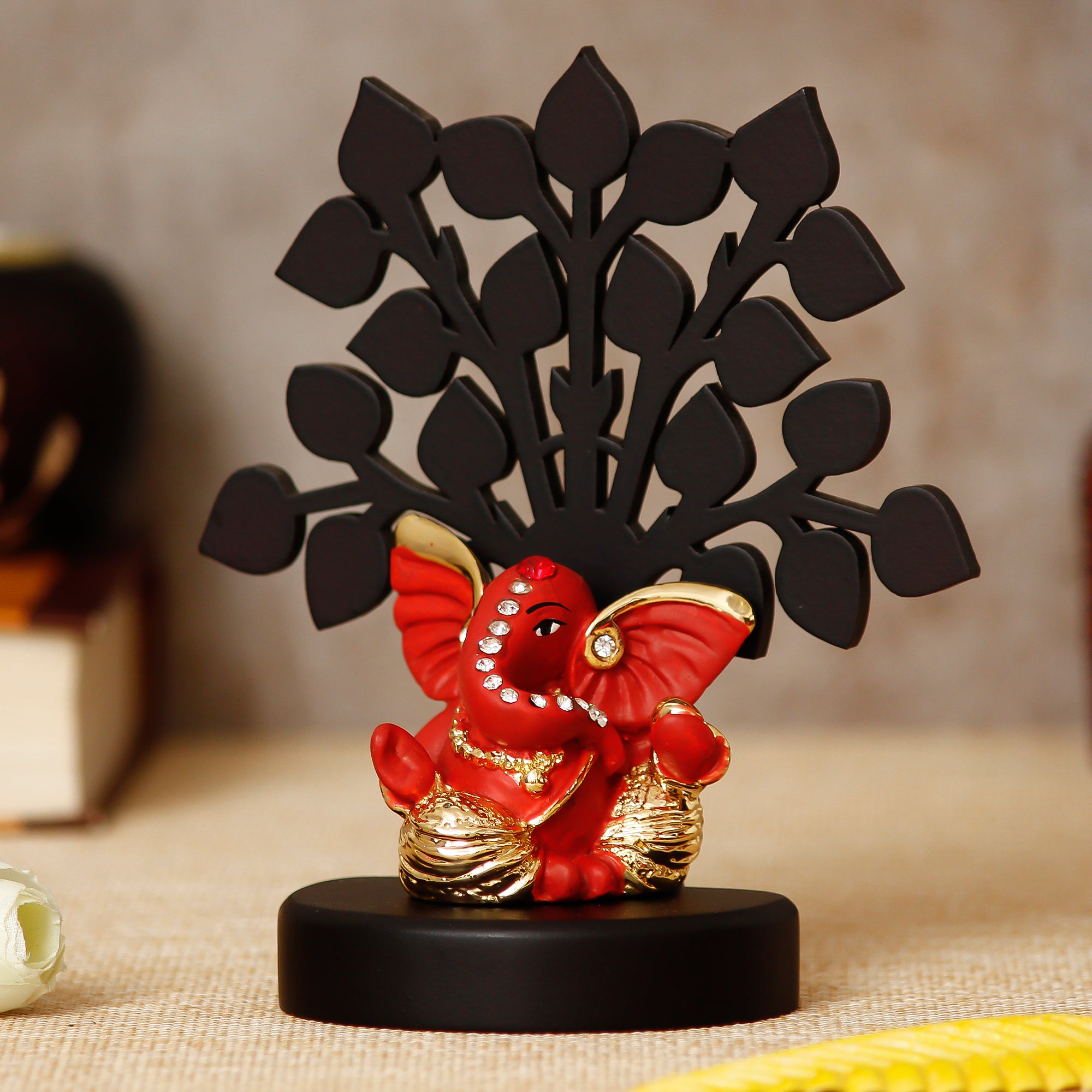 Package Content - One Gold Plated Orange Mini Kaan Ganesha Decorative Showpiece with Wooden Tree for Home/Temple/Office/Car Dashboard