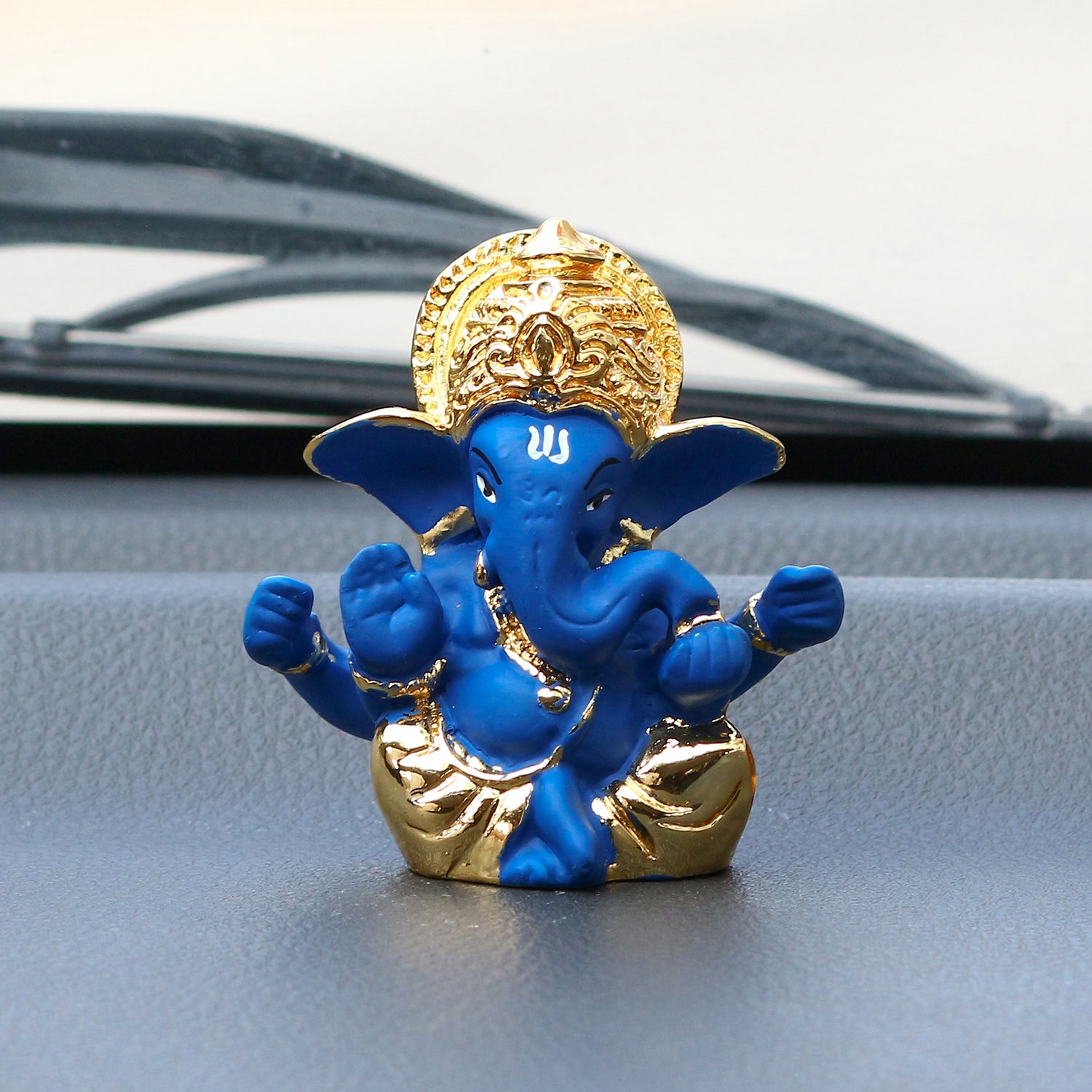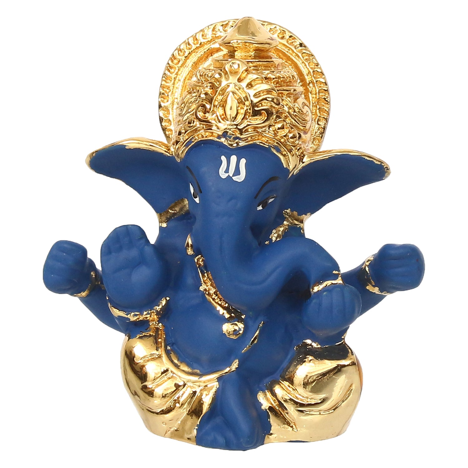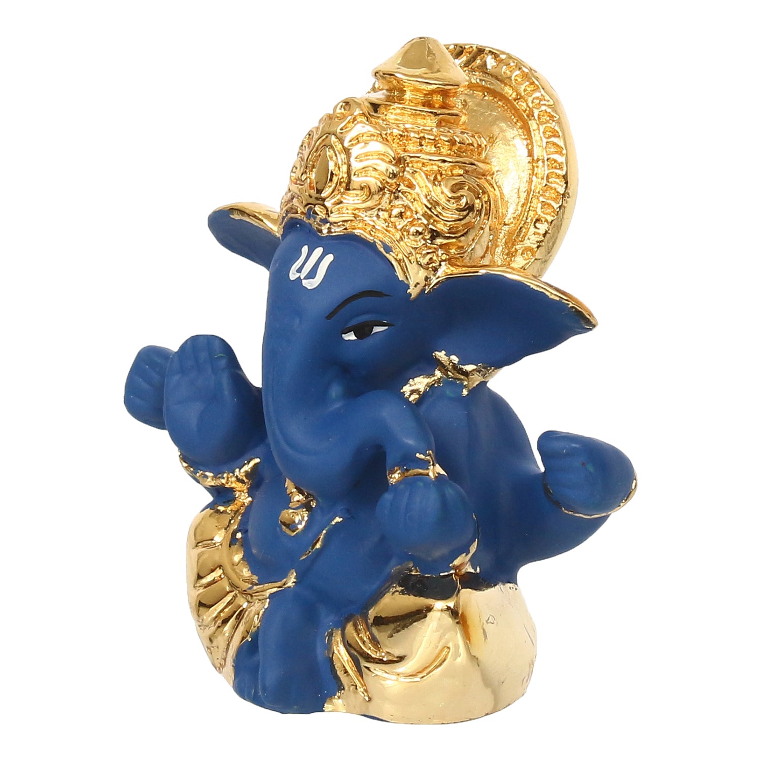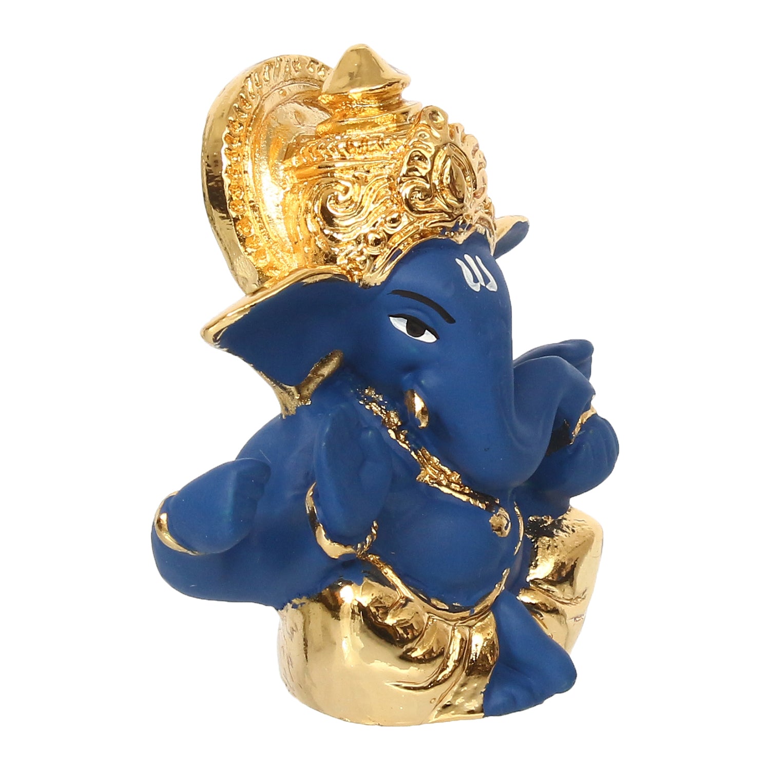 Package Content - One Gold Plated Blue Mukut Ganesha Decorative Showpiece for Home/Temple/Office/Car Dashboard