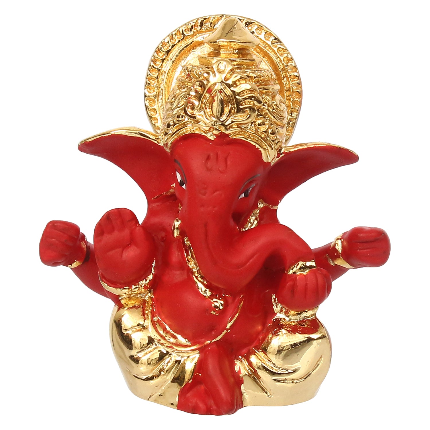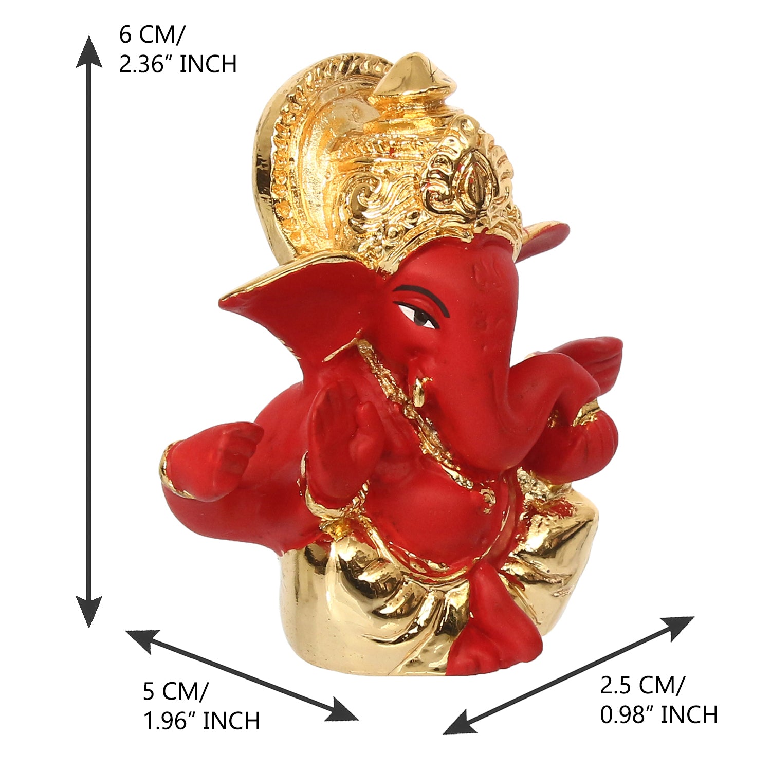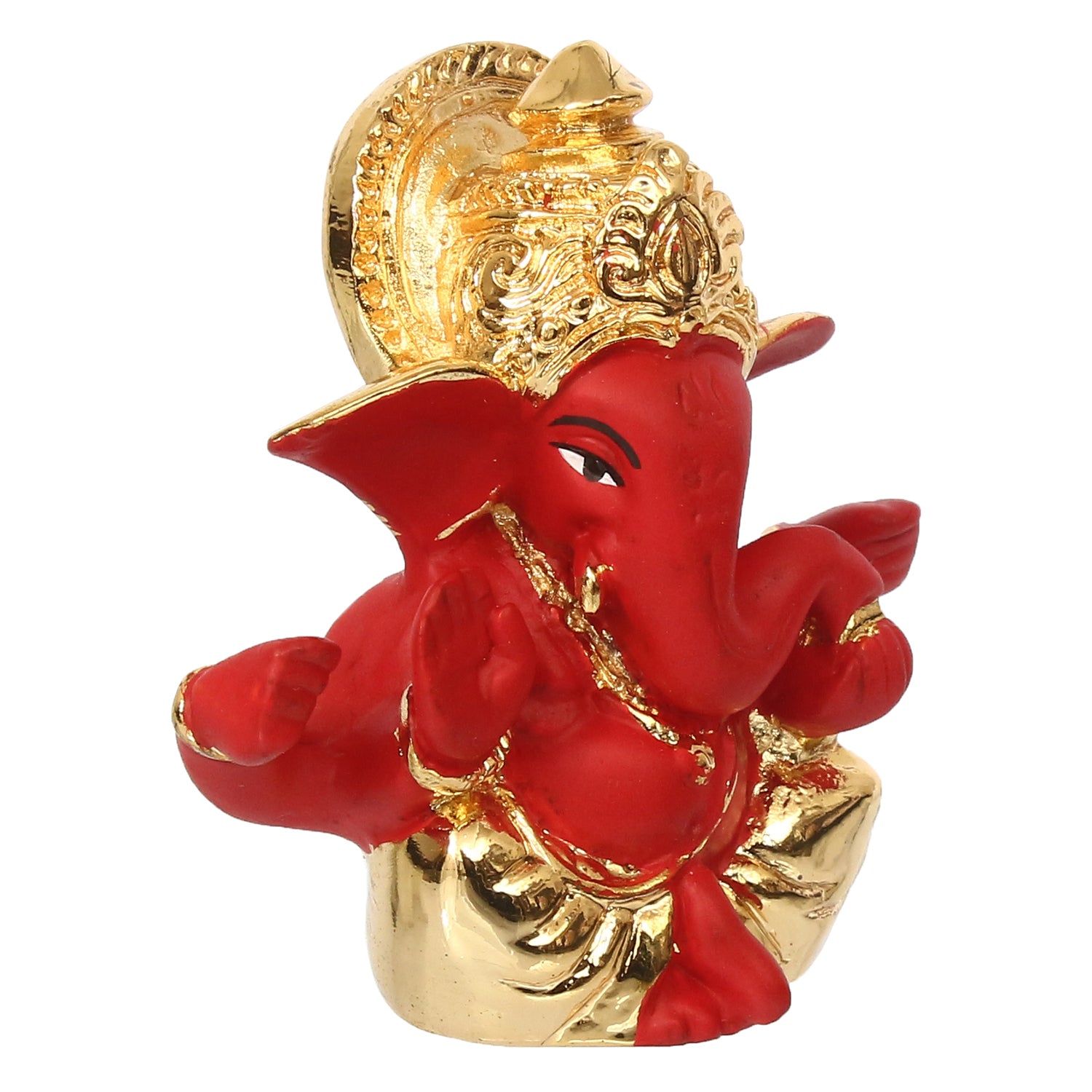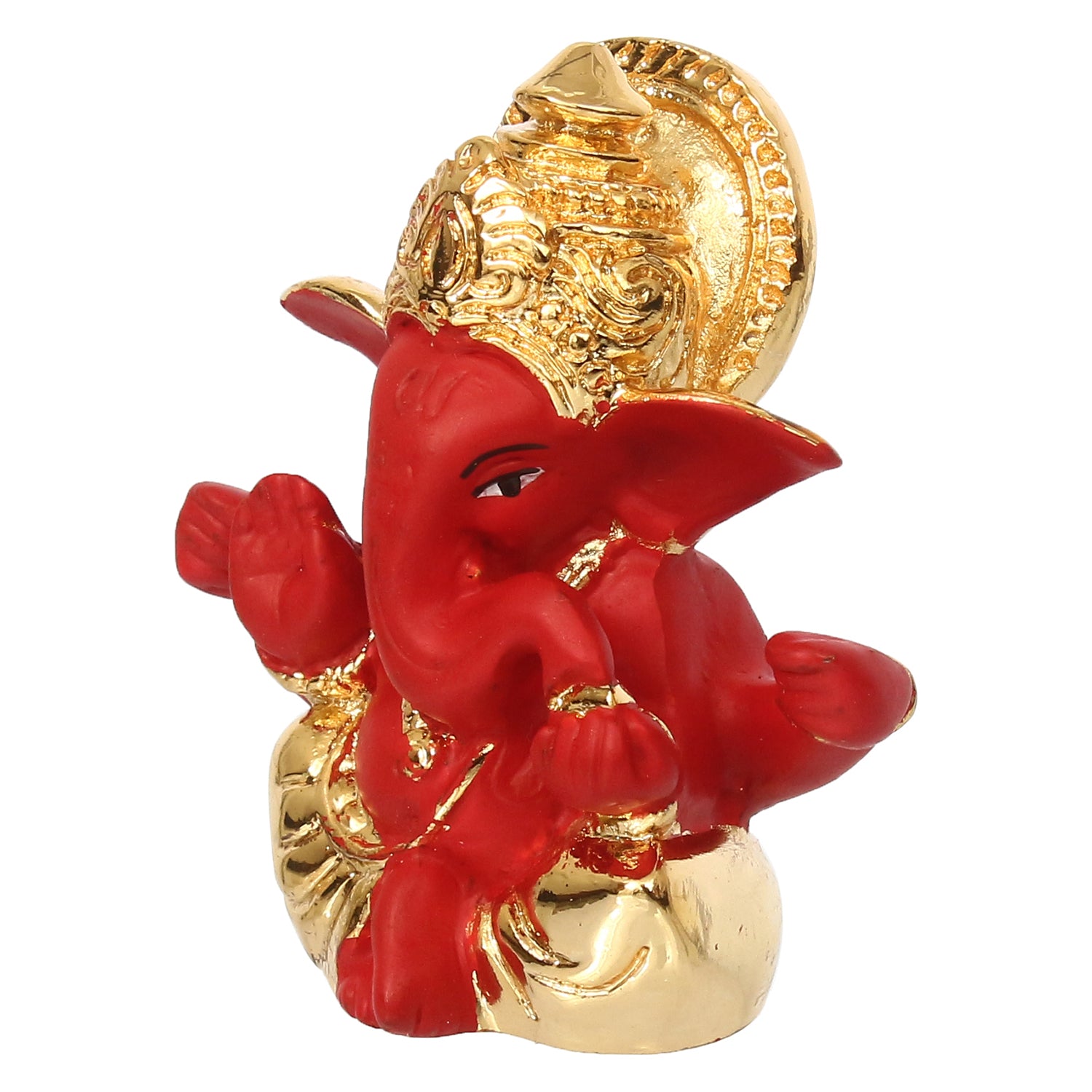 Package Content - One Gold Plated Red Mukut Ganesha Decorative Showpiece for Home/Temple/Office/Car Dashboard