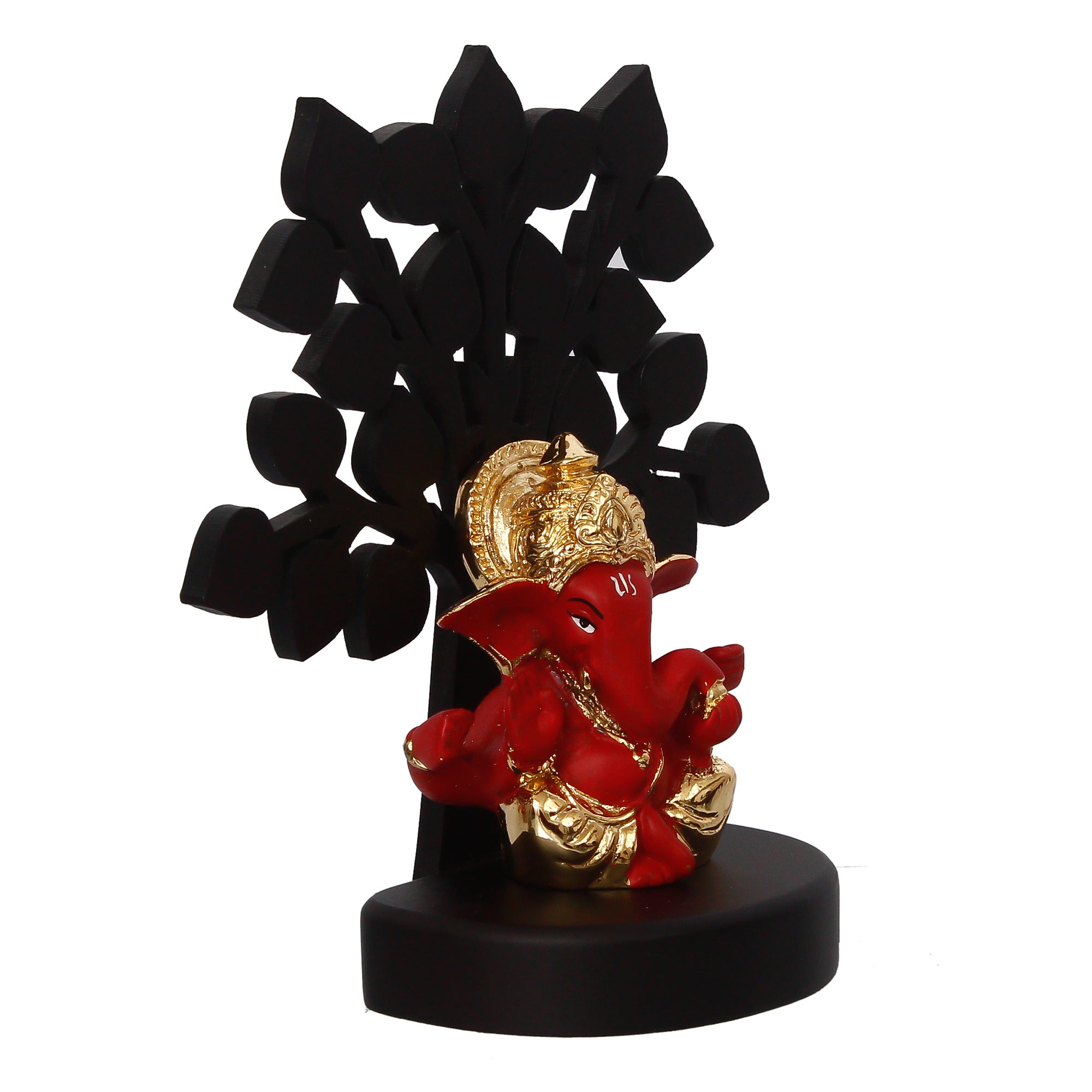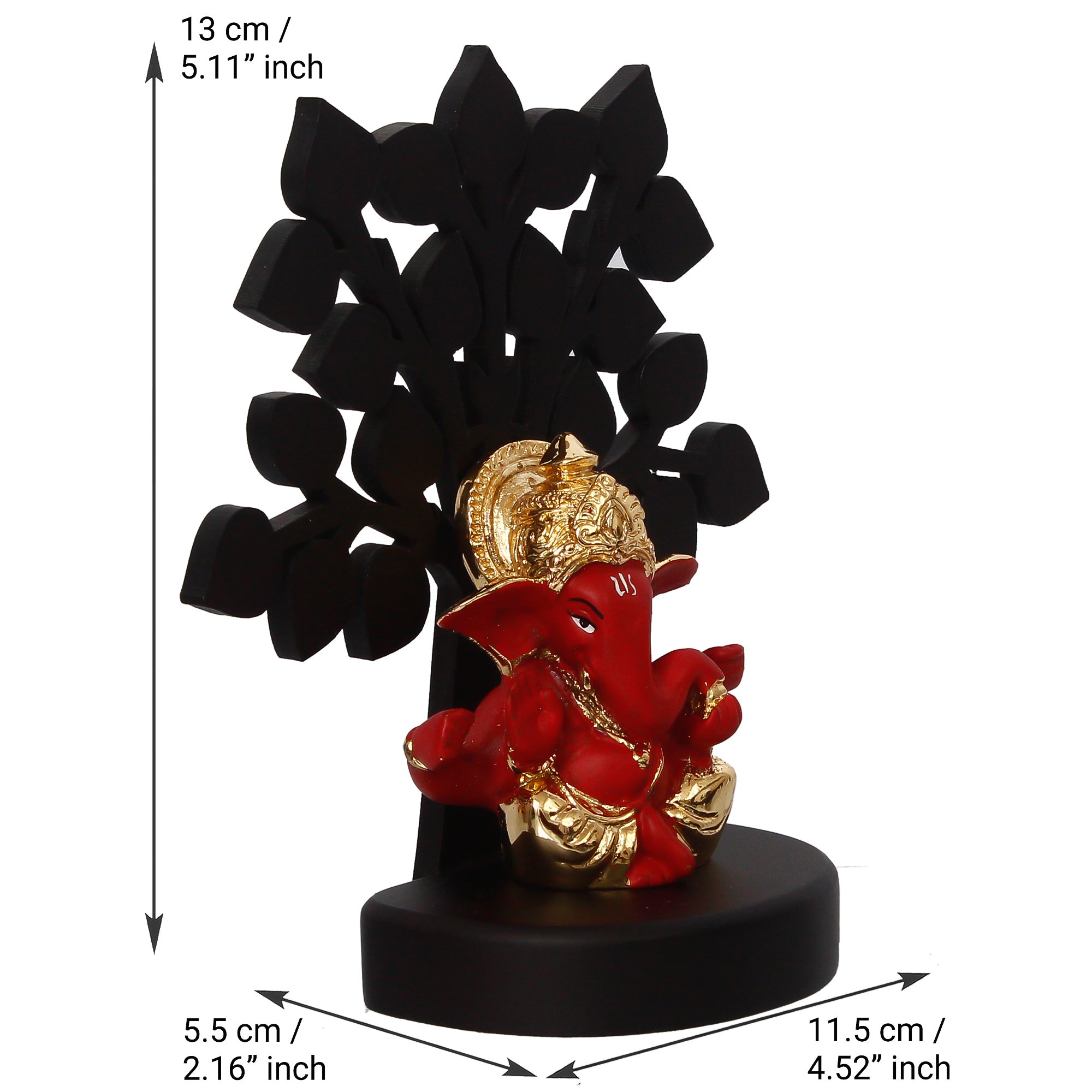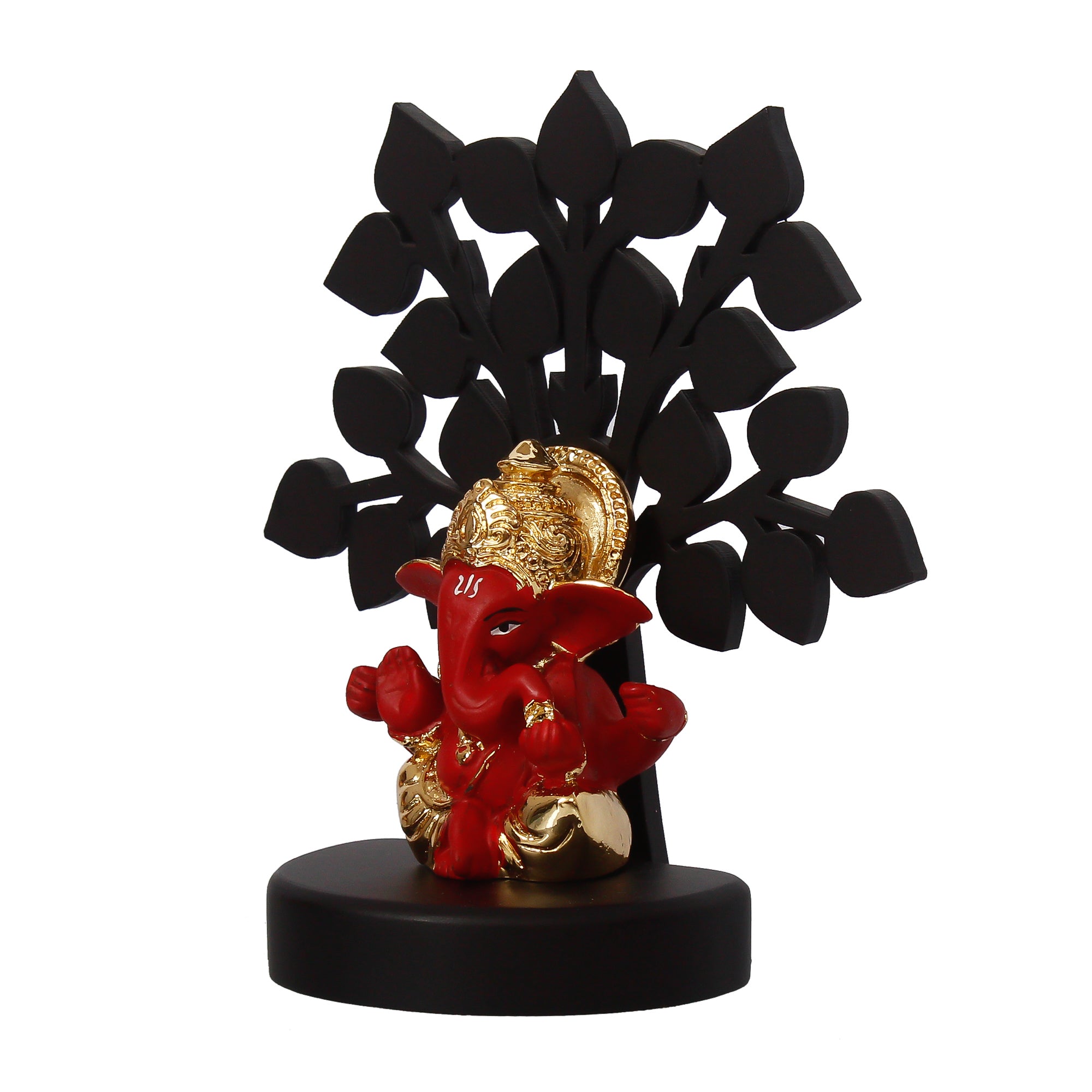 Package Content - One Gold Plated Red Mukut Ganesha Decorative Showpiece with Wooden Tree for Home/Temple/Office/Car Dashboard