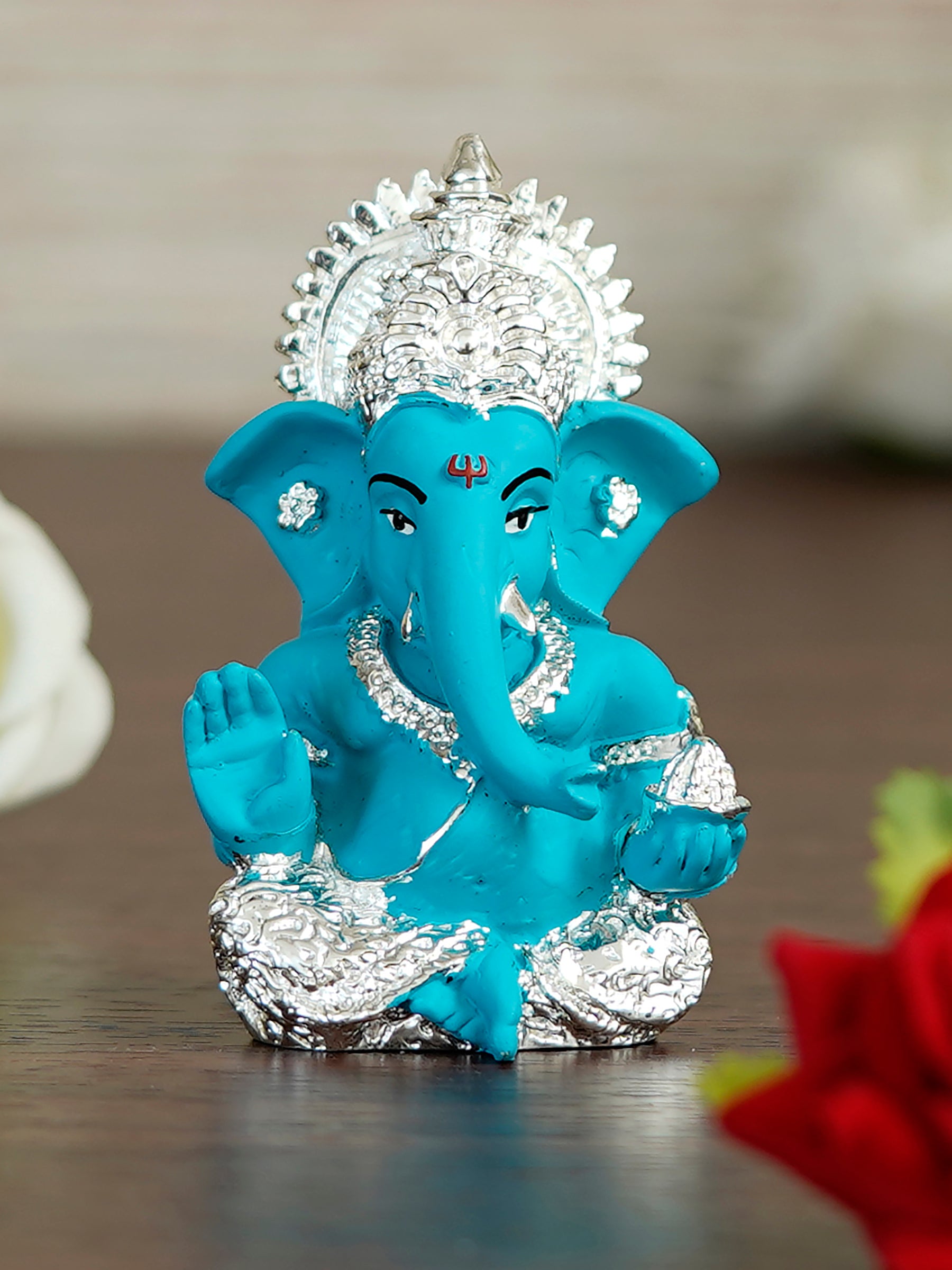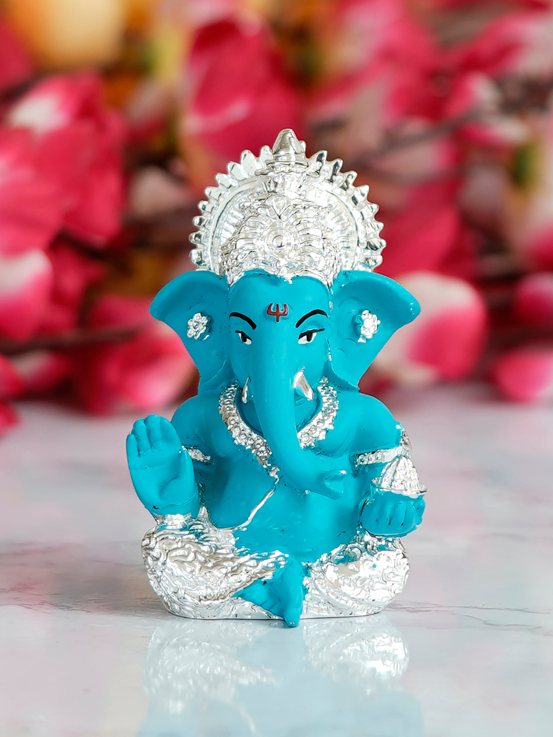 Package Content - One Silver Plated Blue Siddhivinayak Ganesha Idol for Home/Temple/Office/Car Dashboard