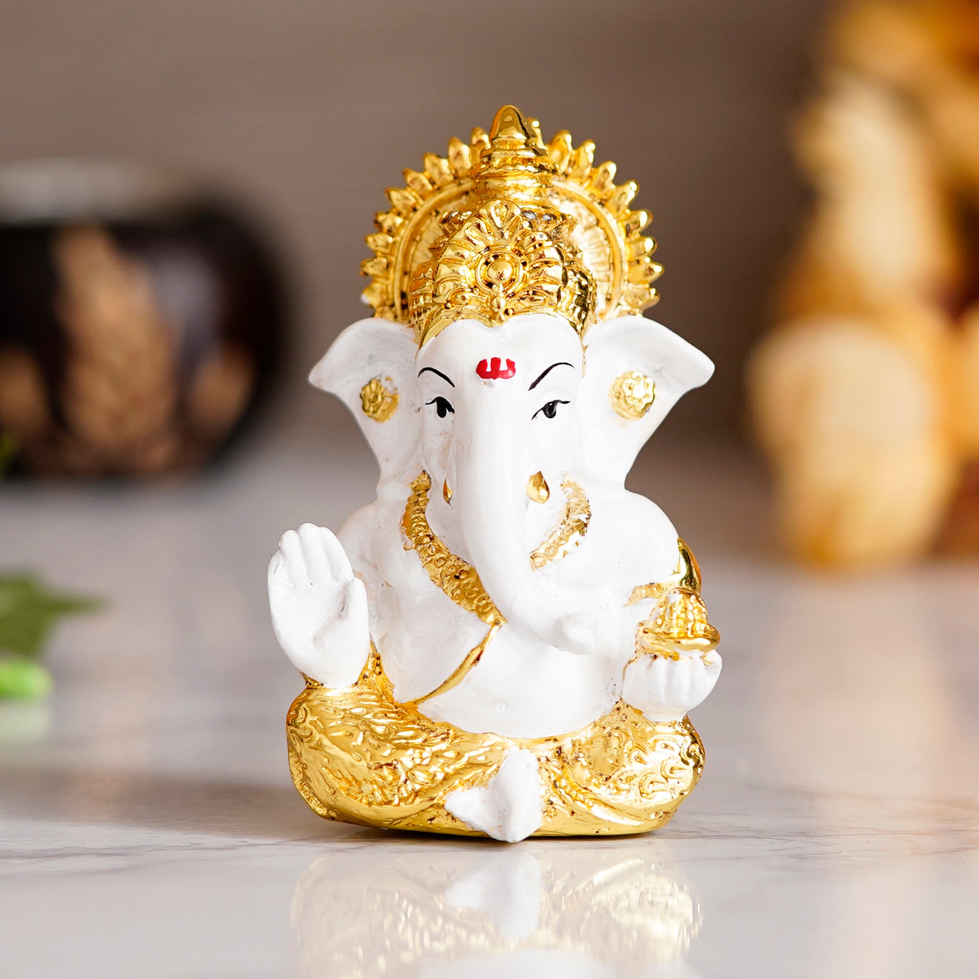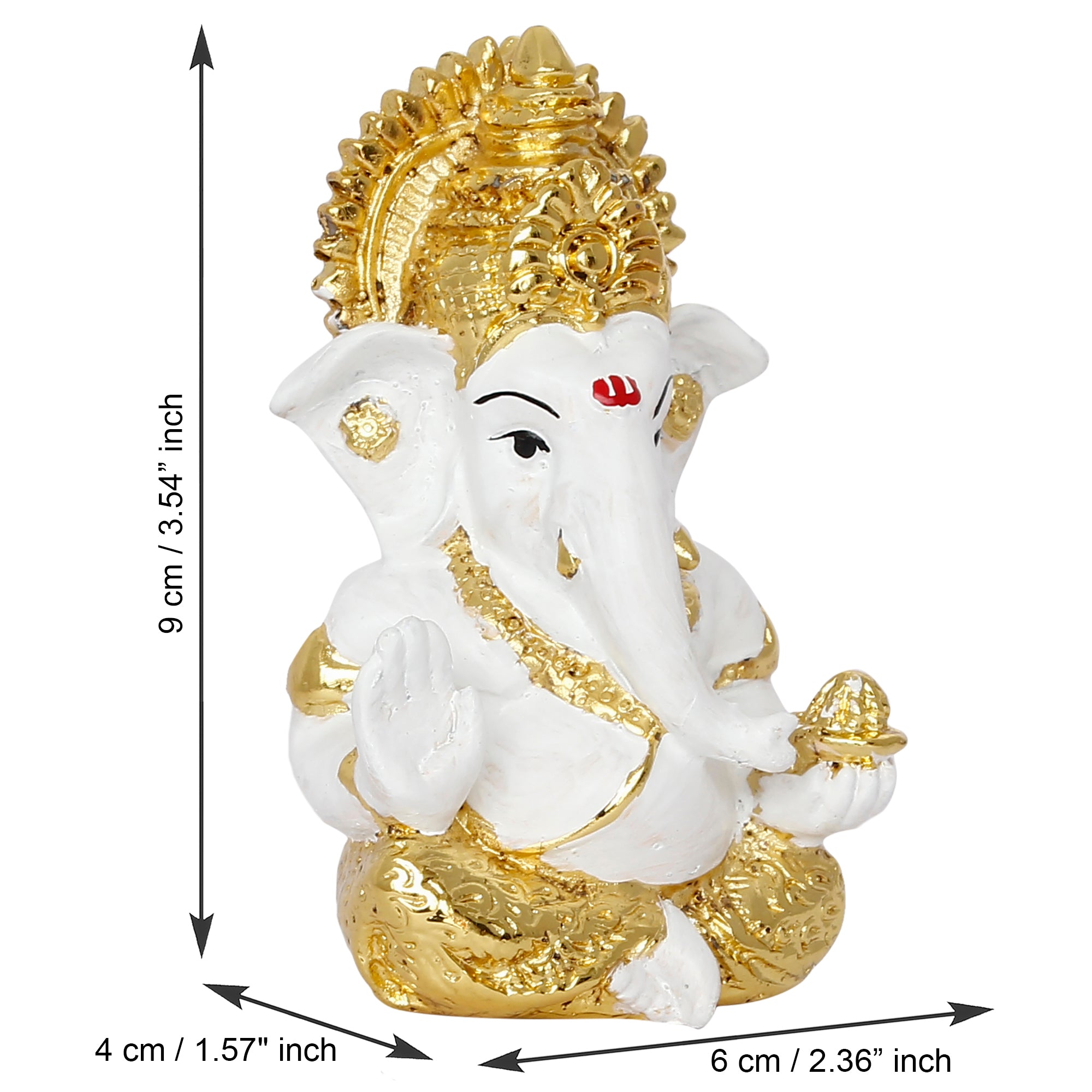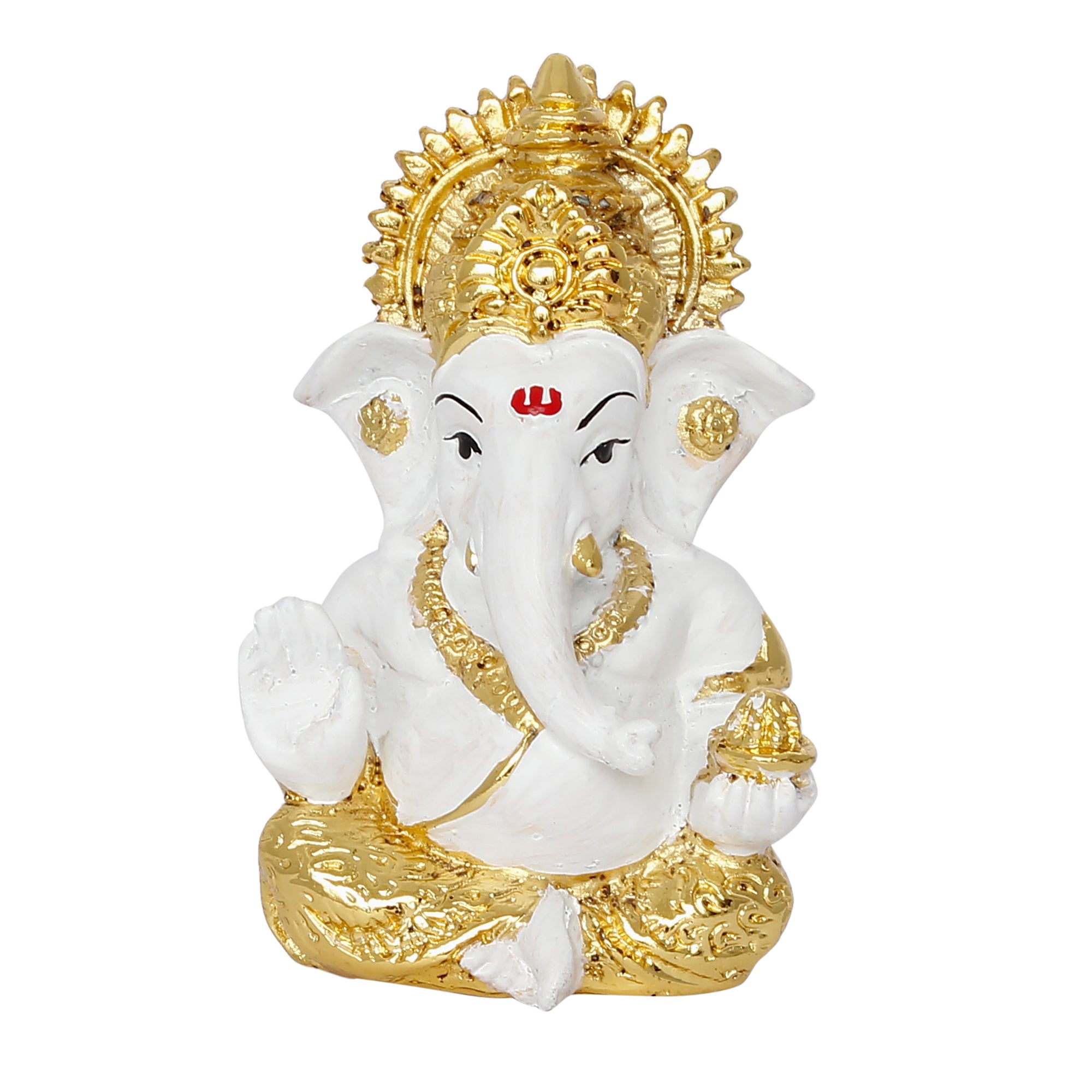 Product Description - Adorning your home place with God's idols and figurines has been there for ages now and continues to be there. Everyone wishes to hold God's idols in their home as it is said to bring positive energy and good vibes. And you can bring the same spirituality to your home with eCraftIndia's white & golden polyresin Lord Ganesha idol for the home temple, office & car dashboard. You can find many more god idols and figurines in different avatars on our online portal in various colors that suit your home or office interior. Each showpiece is handcrafted using various ancient techniques by the artisans at the house of eCraftIndia and is also a great gifting option for your loved ones. Our showpieces have been diligently handcrafted by proficient artisans of eCraftIndia who are on a mission to take Indian Art and Culture into each home of India.