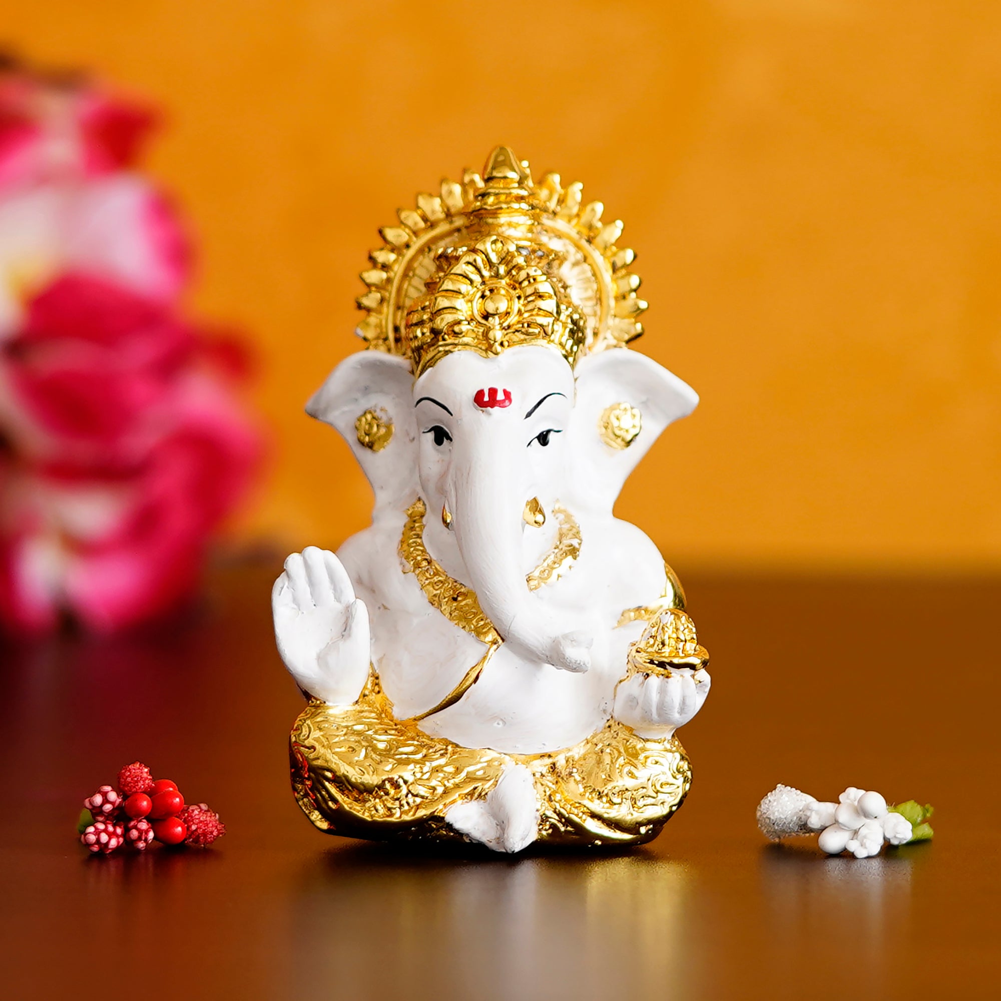 Package Content - One Gold Plated White Siddhivinayak Ganesha Idol for Home/Temple/Office/Car Dashboard