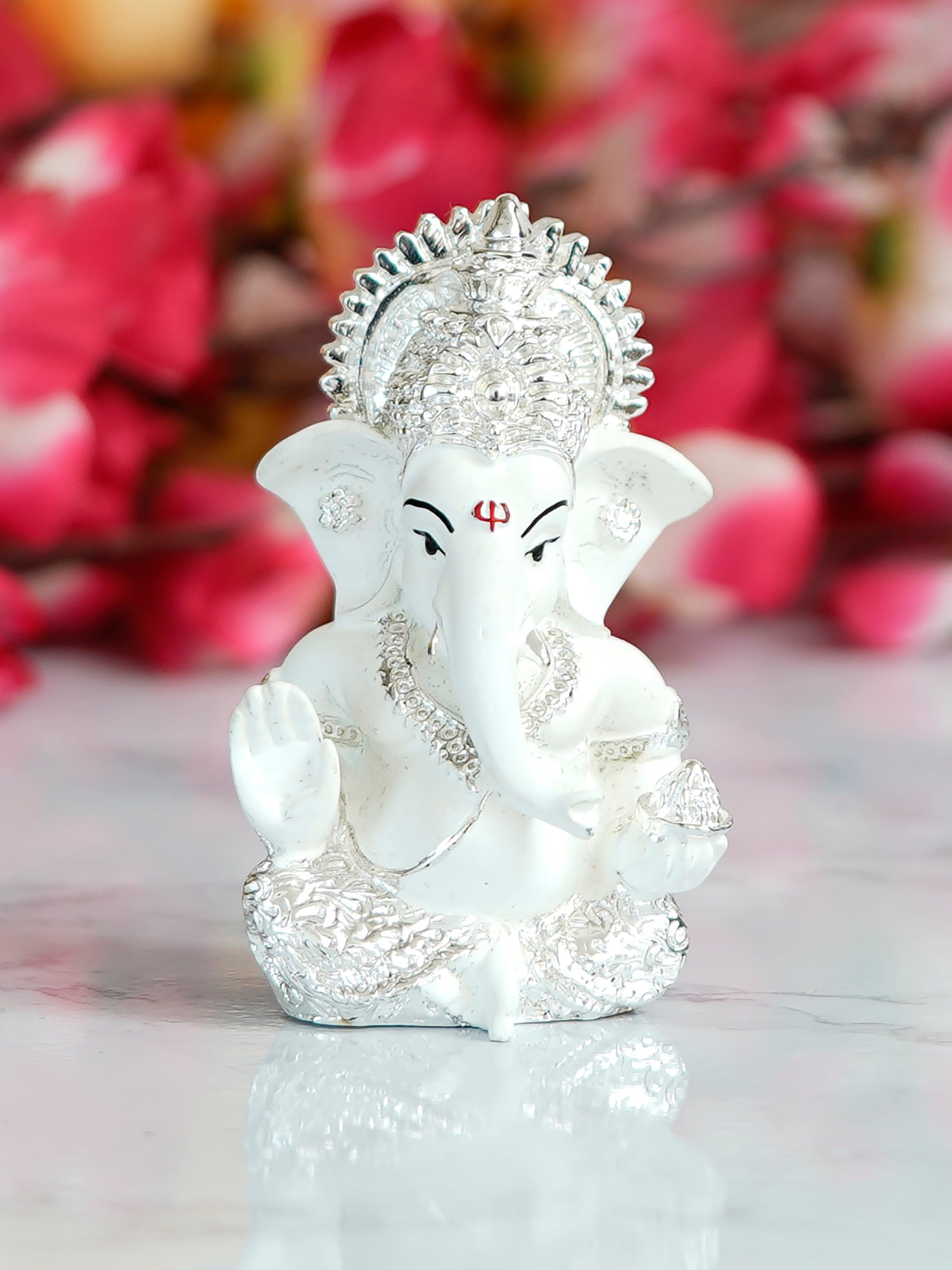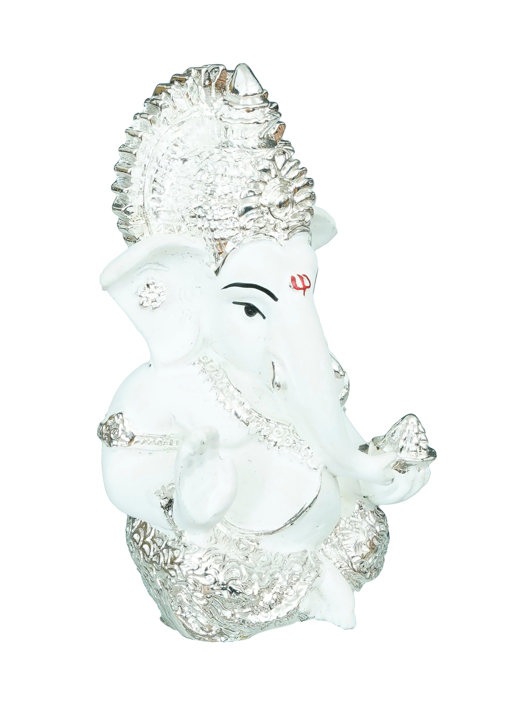 Package Content - One Silver Plated White Siddhivinayak Ganesha Idol for Home/Temple/Office/Car Dashboard