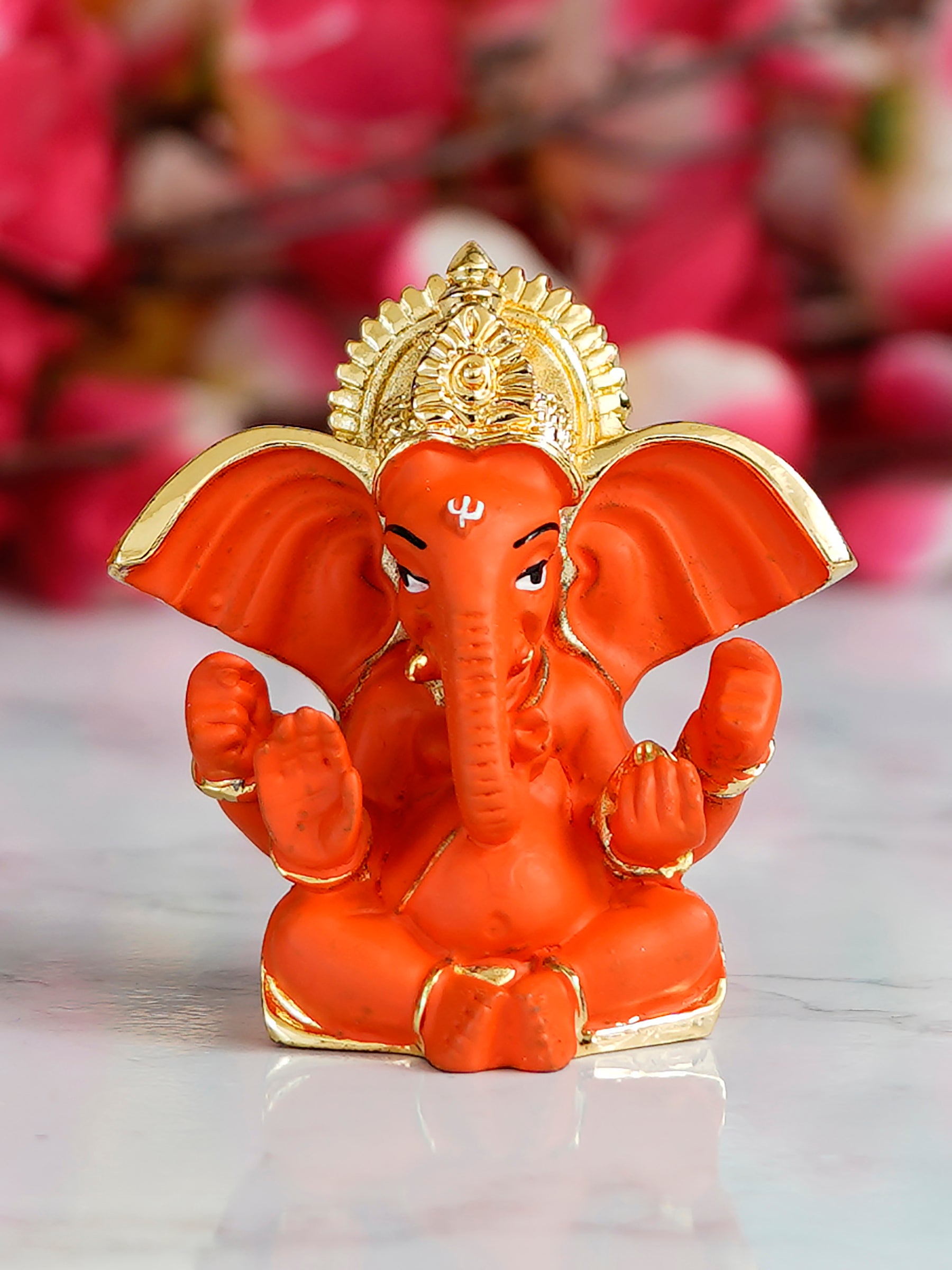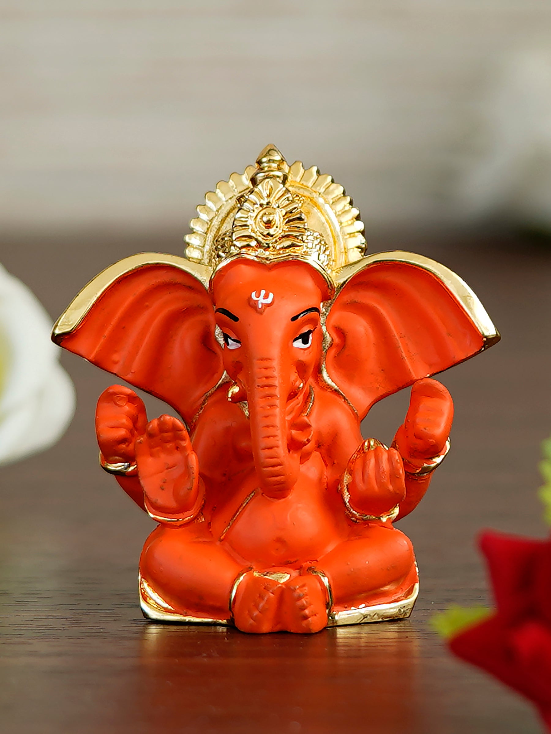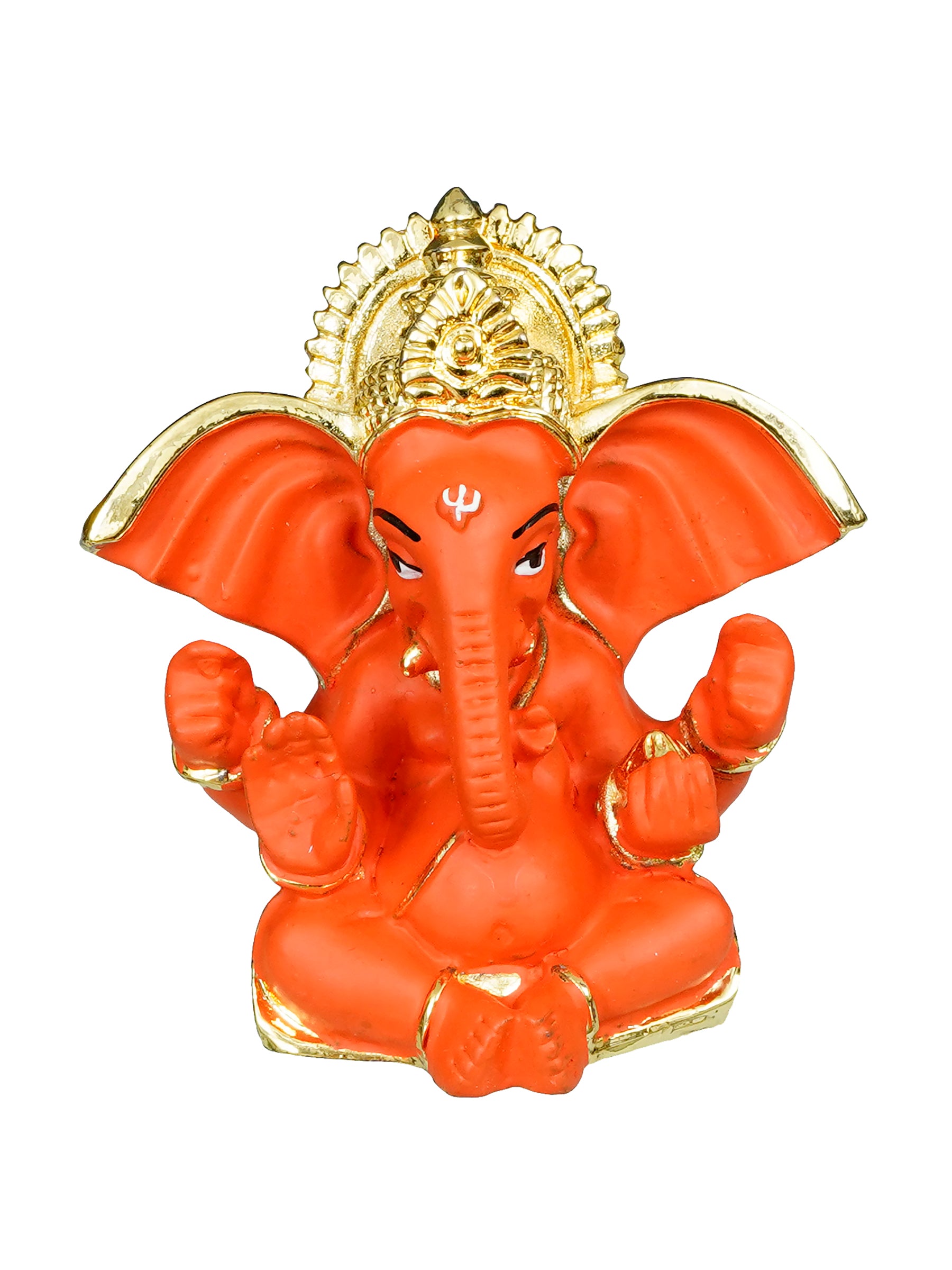 Package Content - One Gold Plated Orange Siddhivinayak Ganesha Idol for Home/Temple/Office/Car Dashboard