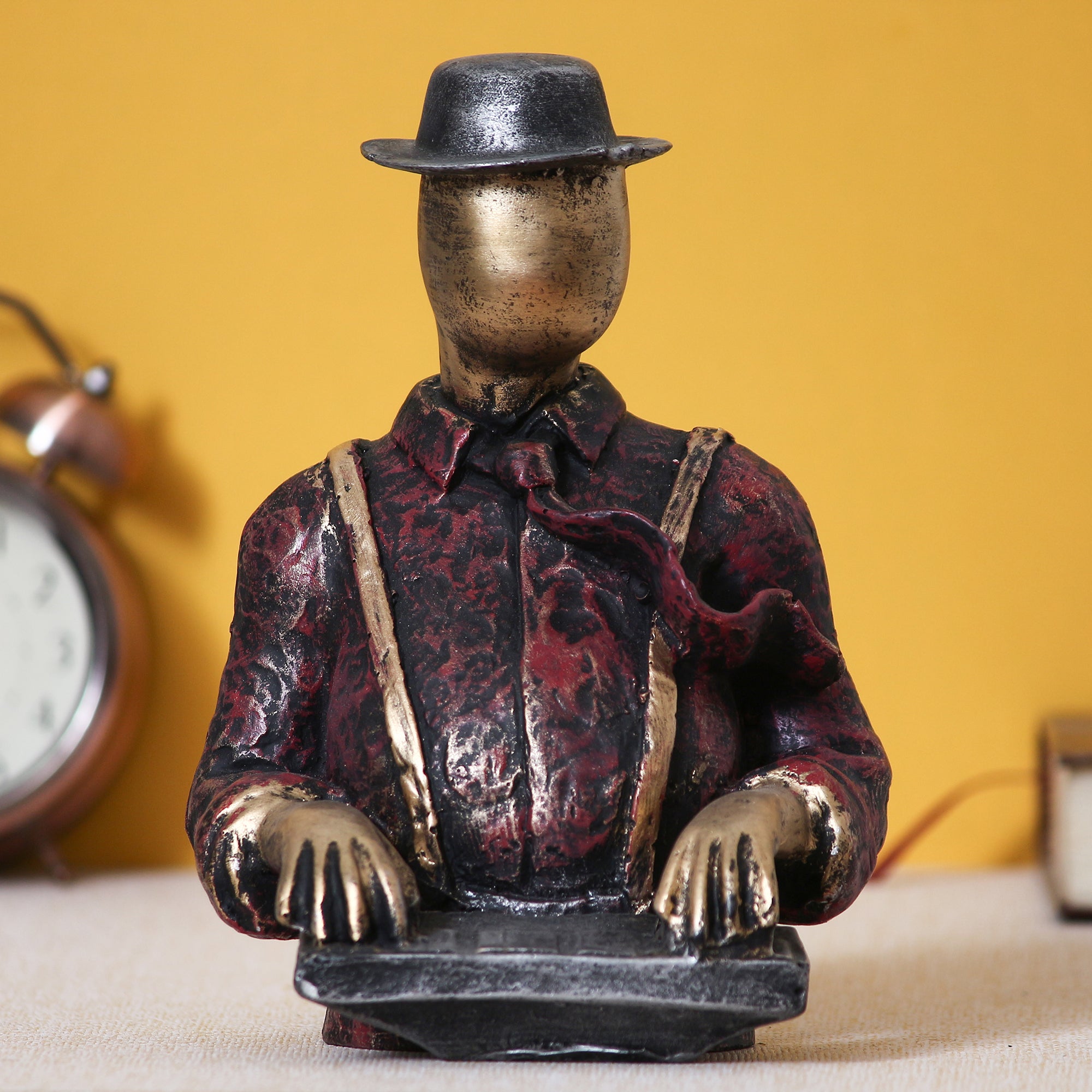 Product Description - Enlighten your home with eCraftIndia Man with Hat playing Piano Decorative Statue which reflects the artistic brilliance and adds elegance to your decor. Style your home and office with this decorative; sure to be admired by your guests. It serves as a great gift, especially around religious celebrations and festivities. This handicraft has been made by skilled artisans from the house of eCraftIndia using various traditional techniques.