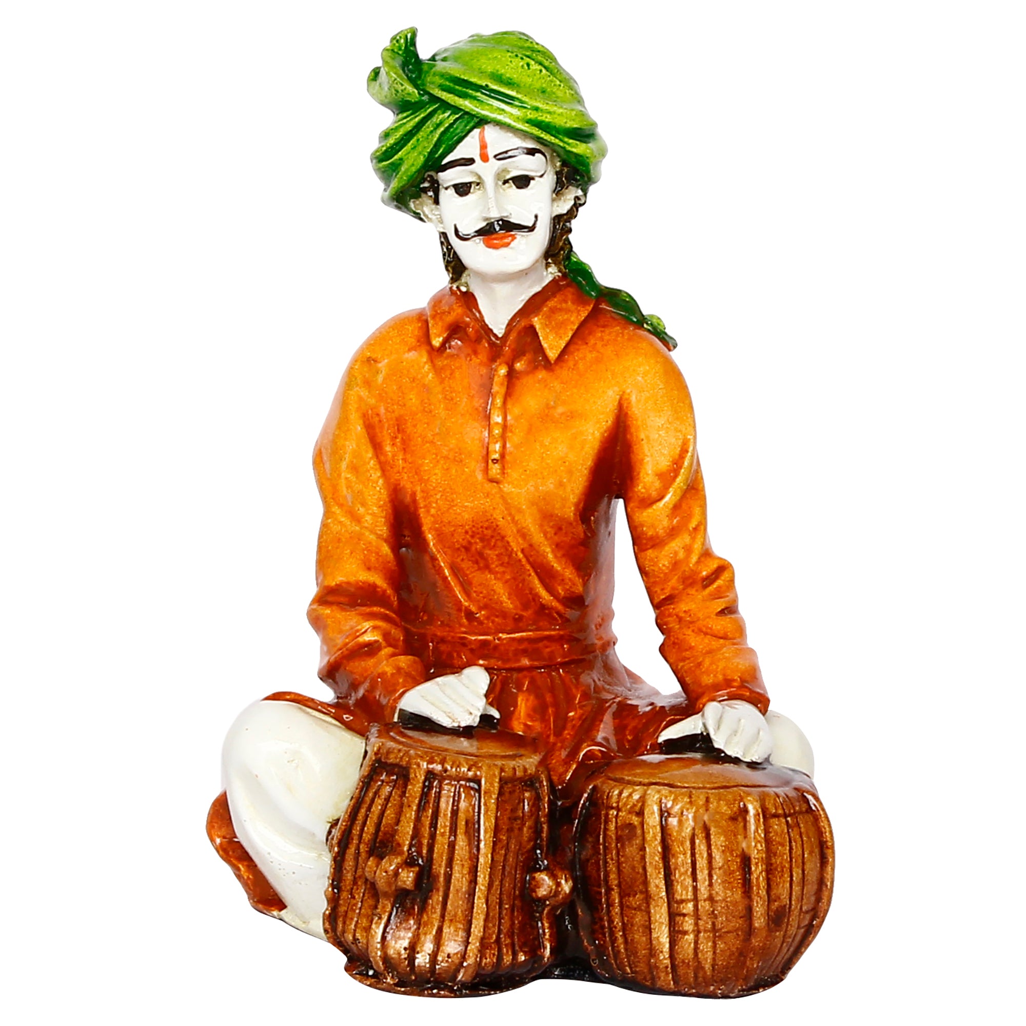 Package Content - One Colorful Rajasthani Man Playing Tabla Handcrafted Decorative Polyresin Showpiece
