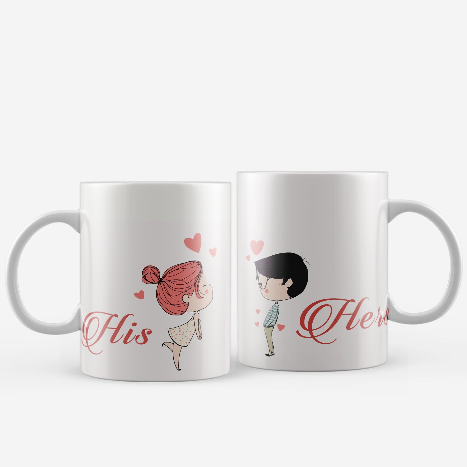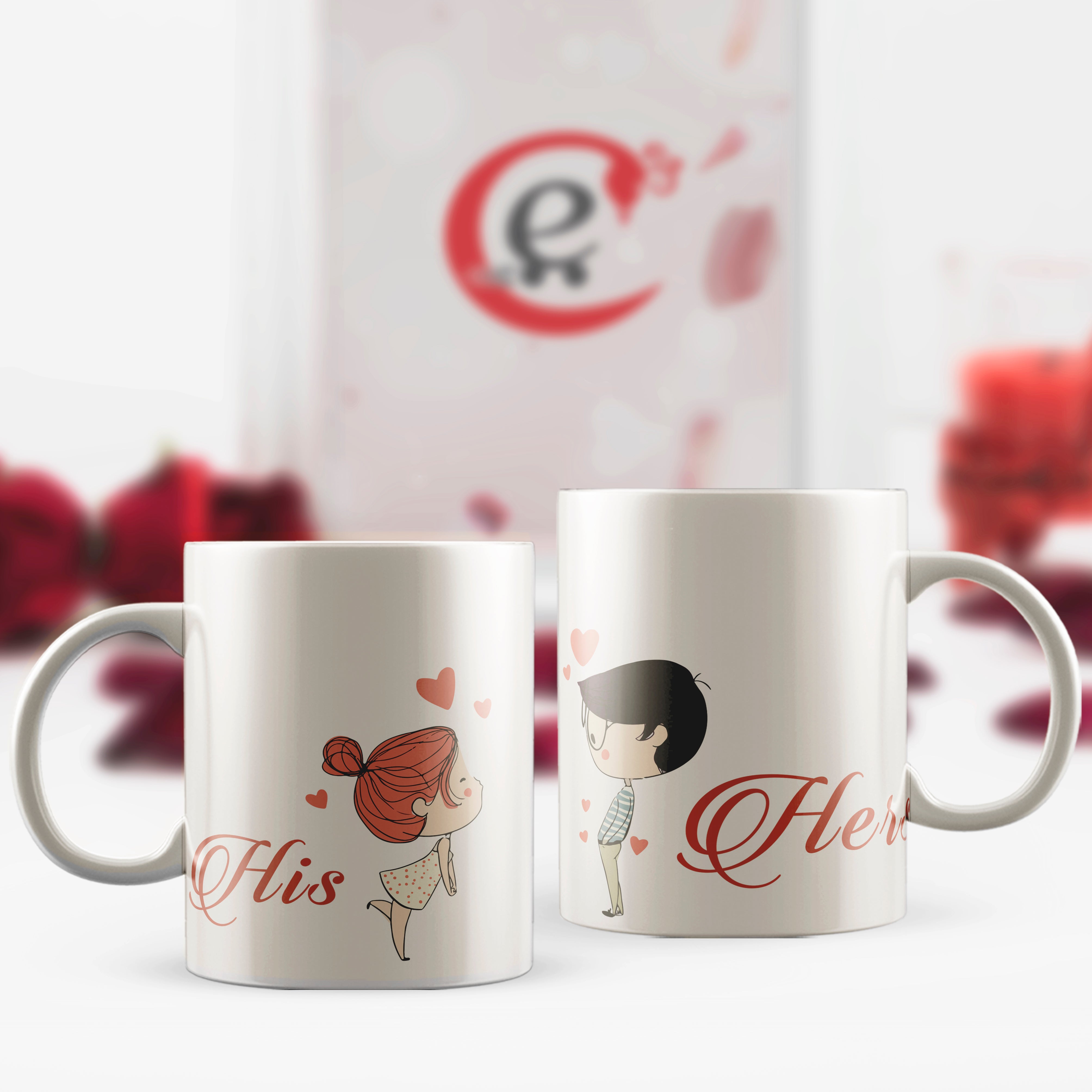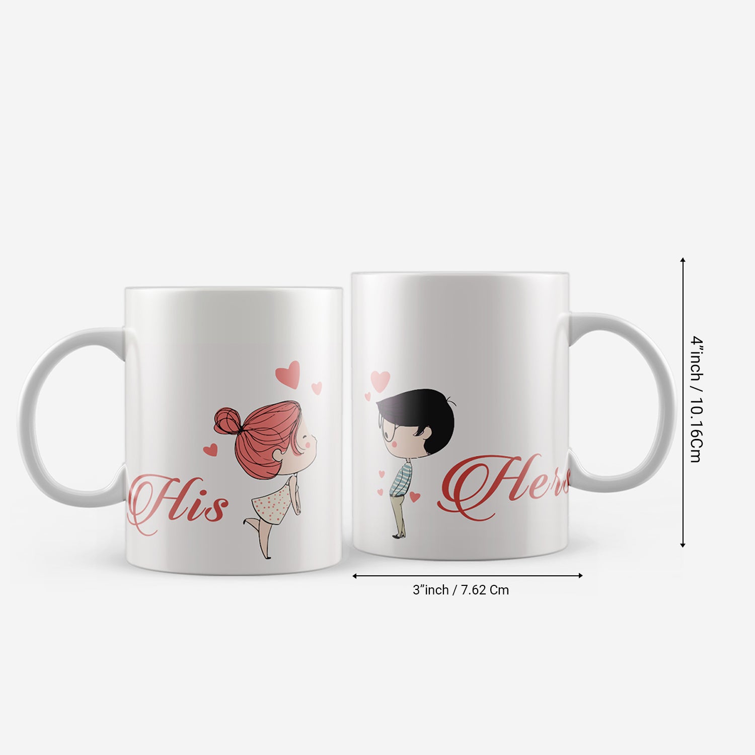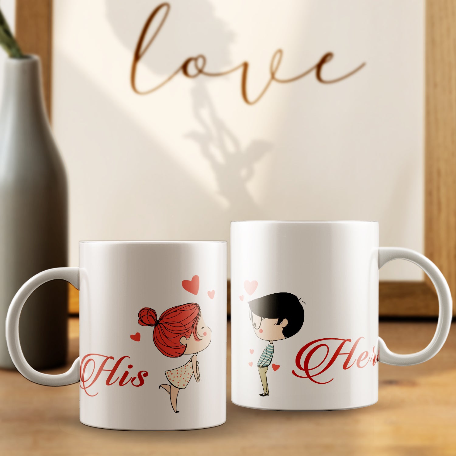 Package Content - One Set of 2 "His - Her" Valentine Love theme Ceramic Coffee Mugs