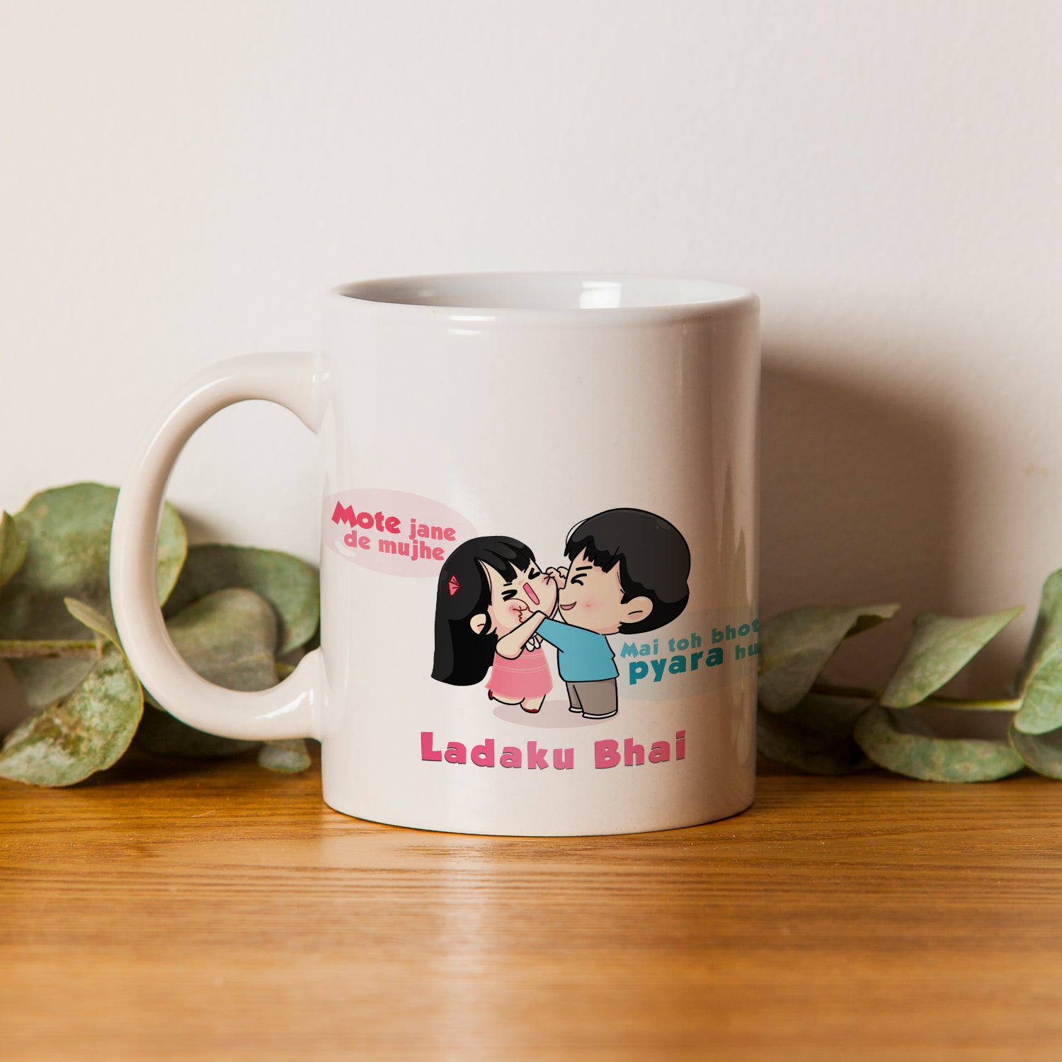 Package Content - One "Ladaku Bhai" Brother Rakhi Theme Ceramic Coffee/Tea Mug