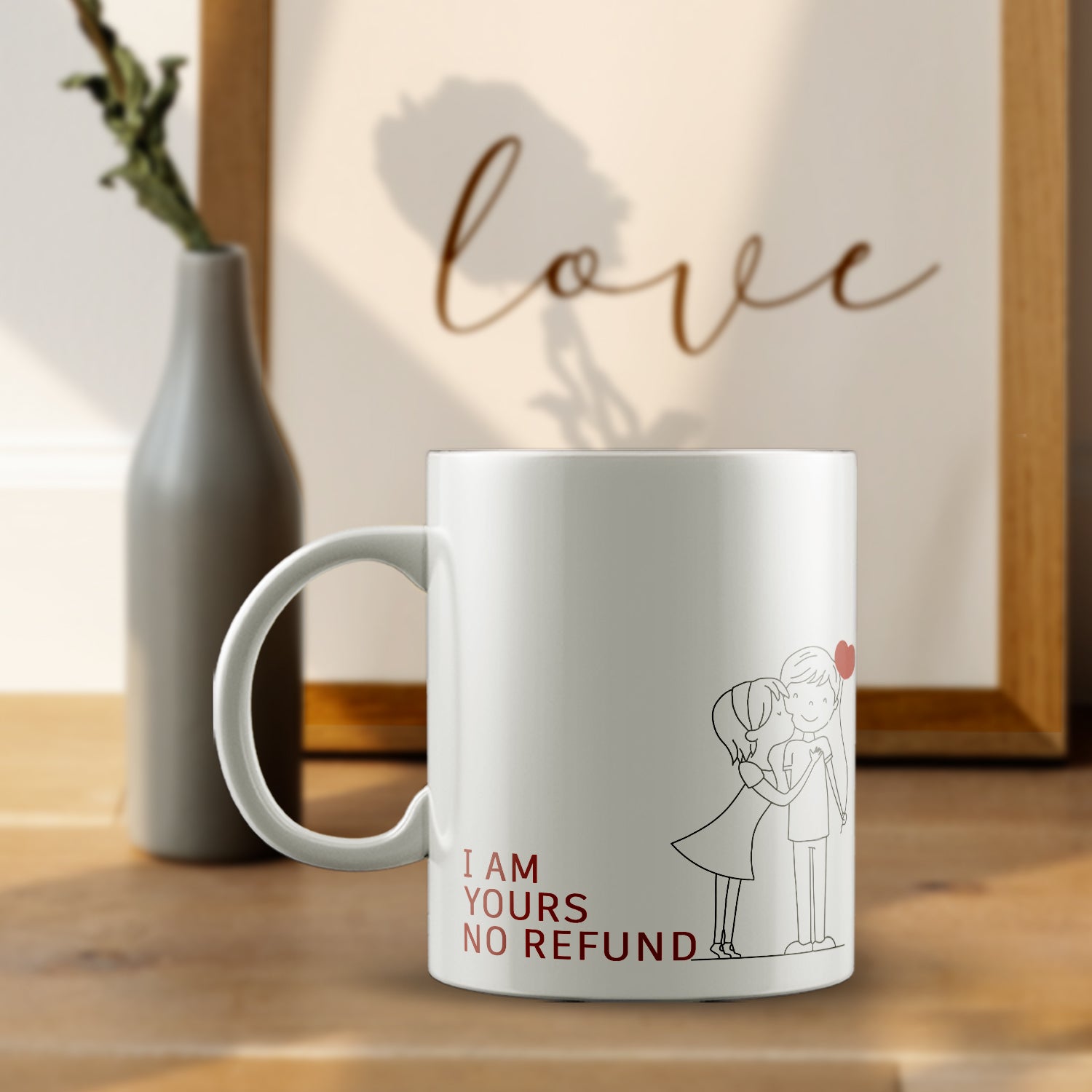 Package Content - One "I Am yours No Refund" Valentine Love theme Ceramic Coffee Mug
