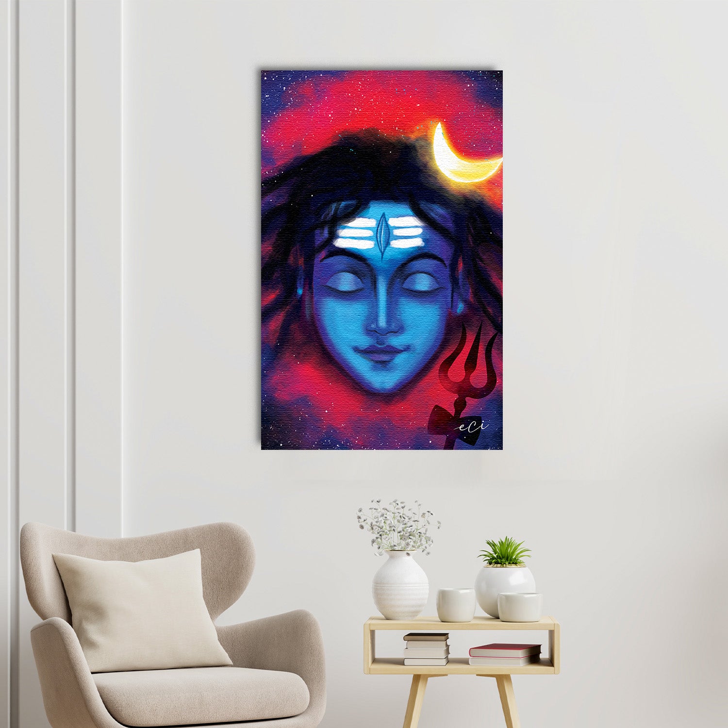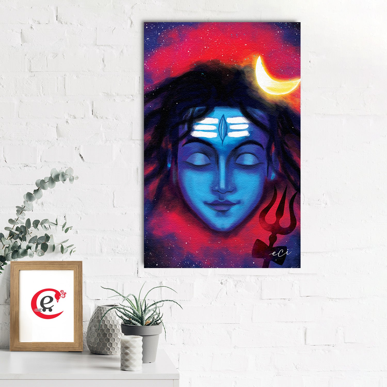 Product Description - Decorate your home & office walls with eCraftIndia Lord Shiva face Original Design Canvas Printed Wall Painting. Since product size is large, each art piece arrives in foldable frame with ready to hang canvas. Only assembly of frames is required. It can be displayed as per convenience of customer and space availability on wall. Each design reflects the artistic qualities and time one has taken to design this painting Exquisitely printed, it is also a perfect gifting option for your colleagues, loved ones and family members. These paintings don't include glass so it is very light weight and fry cloth can be used to clean it.