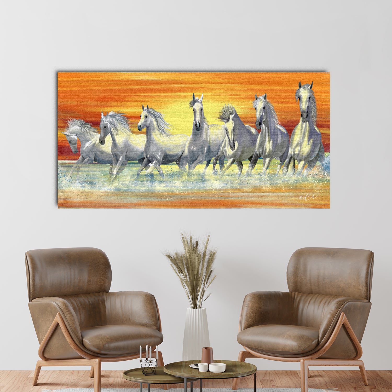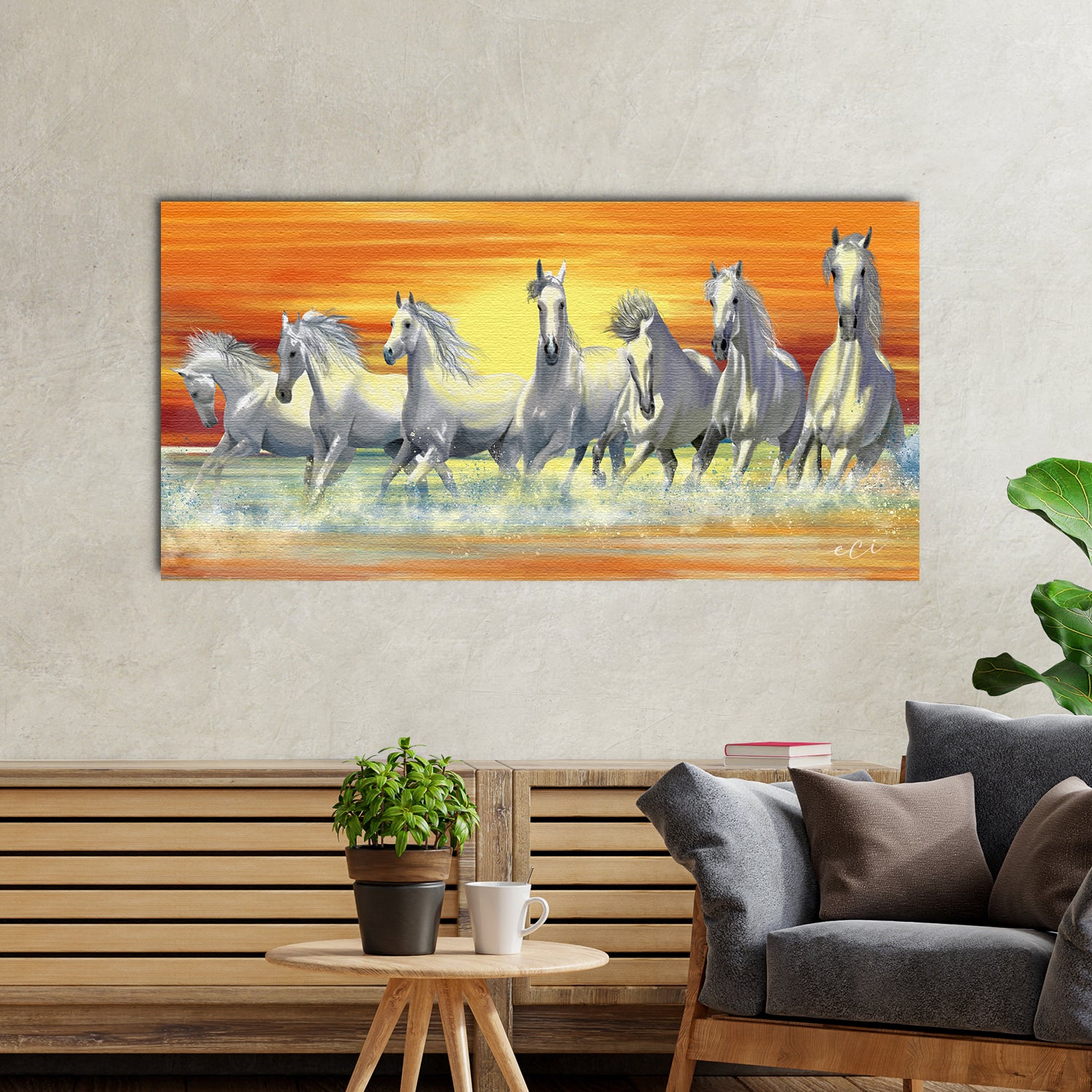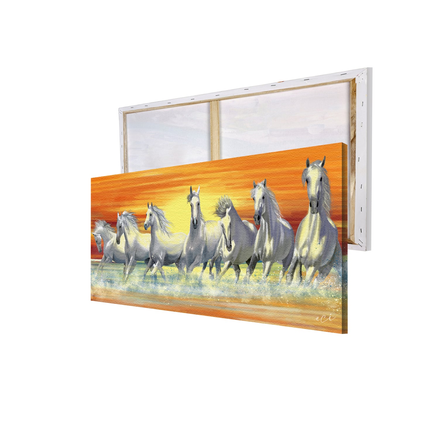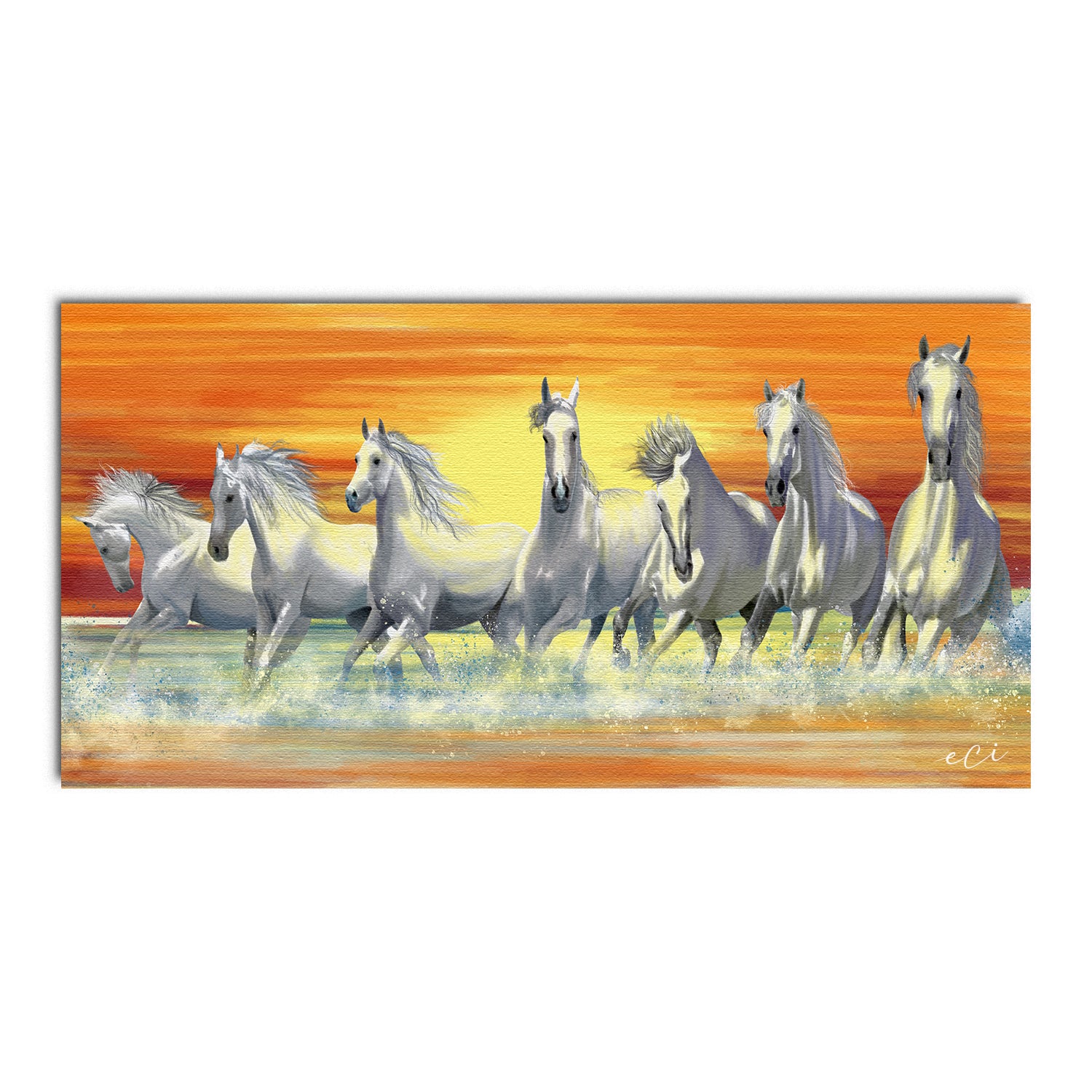 Package Content - One 7 Running White Horses Vastu Original Design Canvas Printed Wall Painting