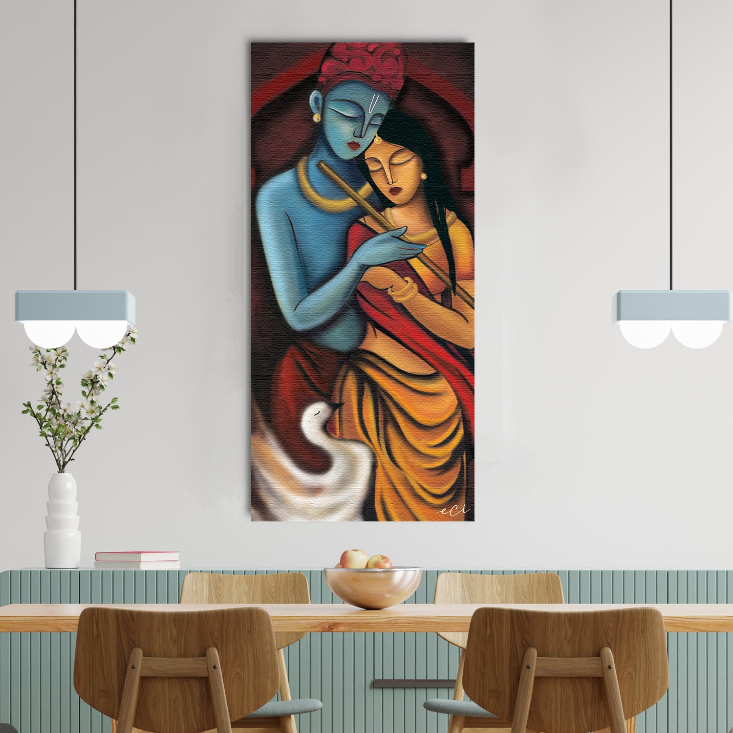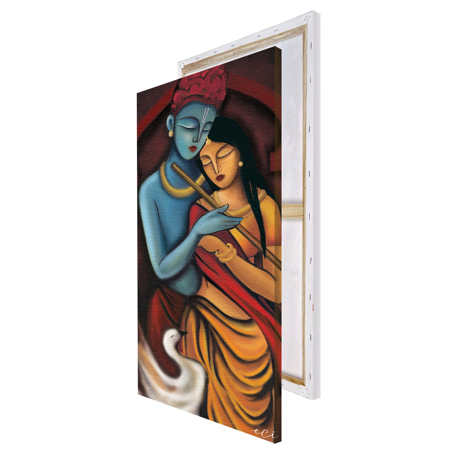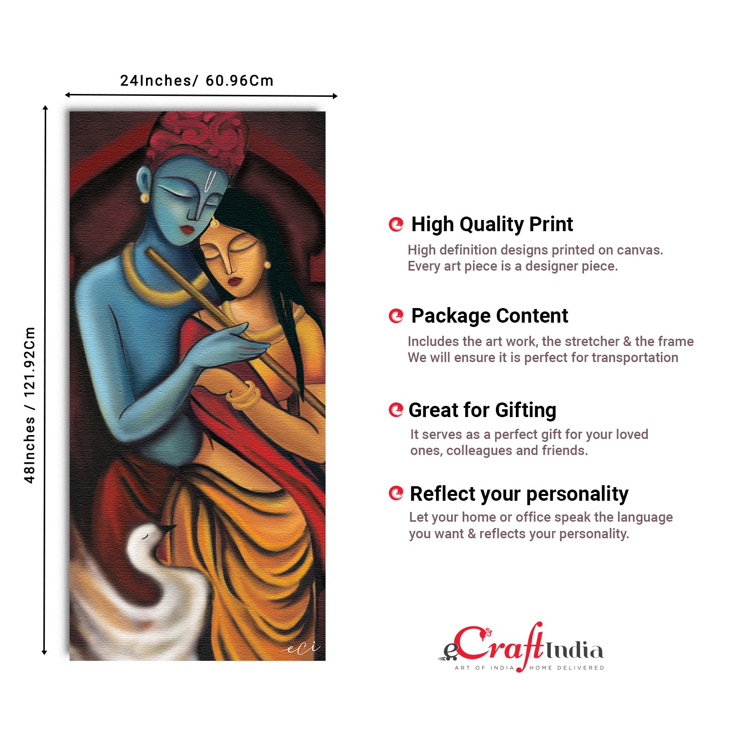 Product Description - Decorate your home & office walls with eCraftIndia Radha Krishna Abstract Original Design Canvas Printed Wall Painting. Since product size is large, each art piece arrives in foldable frame with ready to hang canvas. Only assembly of frames is required. It can be displayed as per convenience of customer and space availability on wall. Each design reflects the artistic qualities and time one has taken to design this painting Exquisitely printed, it is also a perfect gifting option for your colleagues, loved ones and family members. These paintings don't include glass so it is very light weight and fry cloth can be used to clean it.
