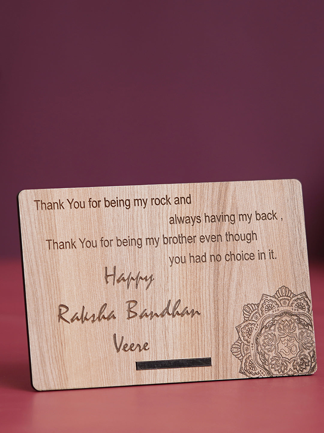“Happy Raksha Bandhan” Decorative Showpiece — a heartfelt tribute to the memories, mischief, and moments shared with your brother. Crafted with warmth and personalised just for him, this elegant piece makes for a perfect Raksha Bandhan gift. Whether placed on a desk, shelf, or bedside, it adds emotional value to any space. A customised token of affection that speaks louder than words — because this Rakhi, your gift should be as special as your bond.