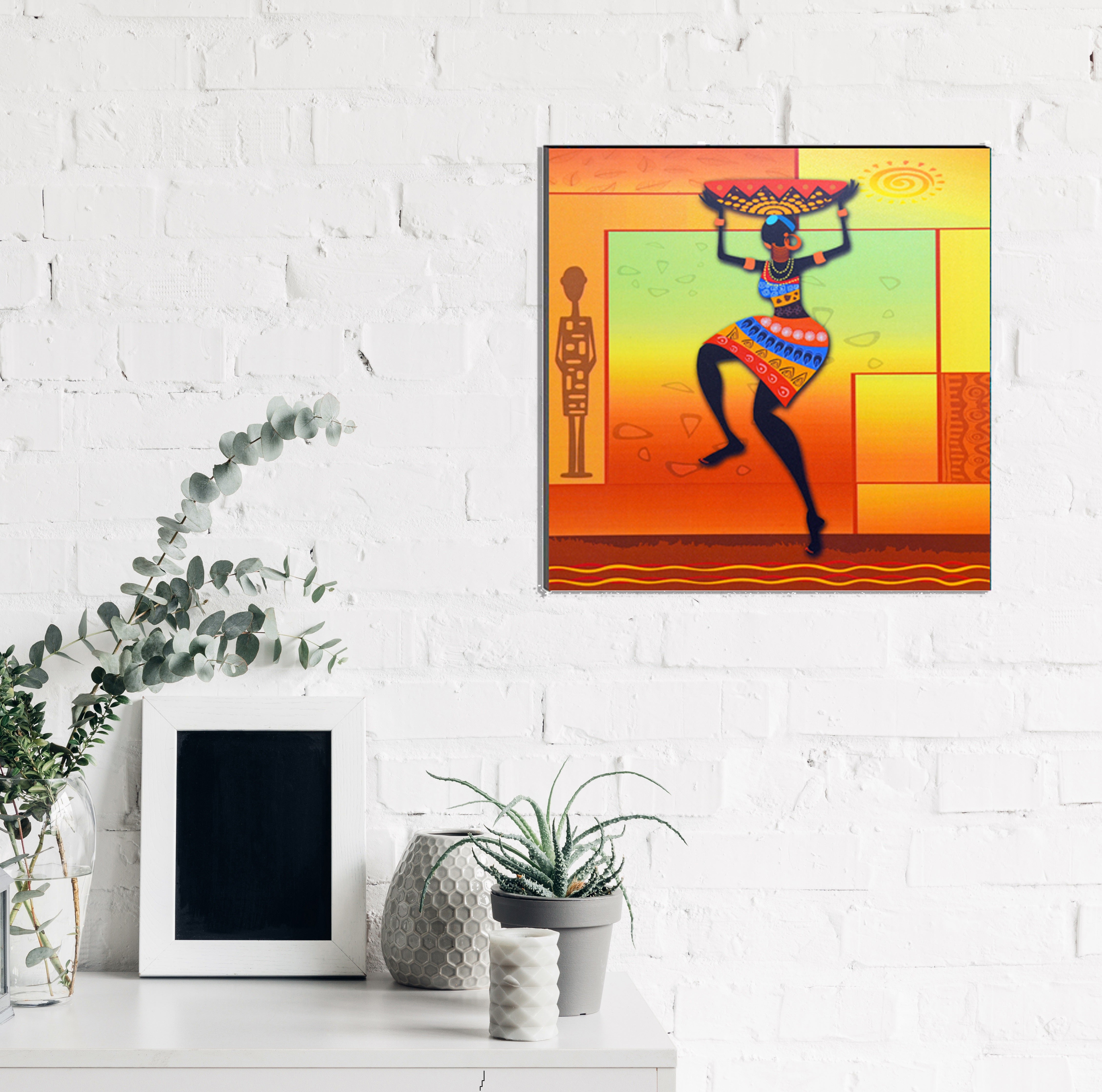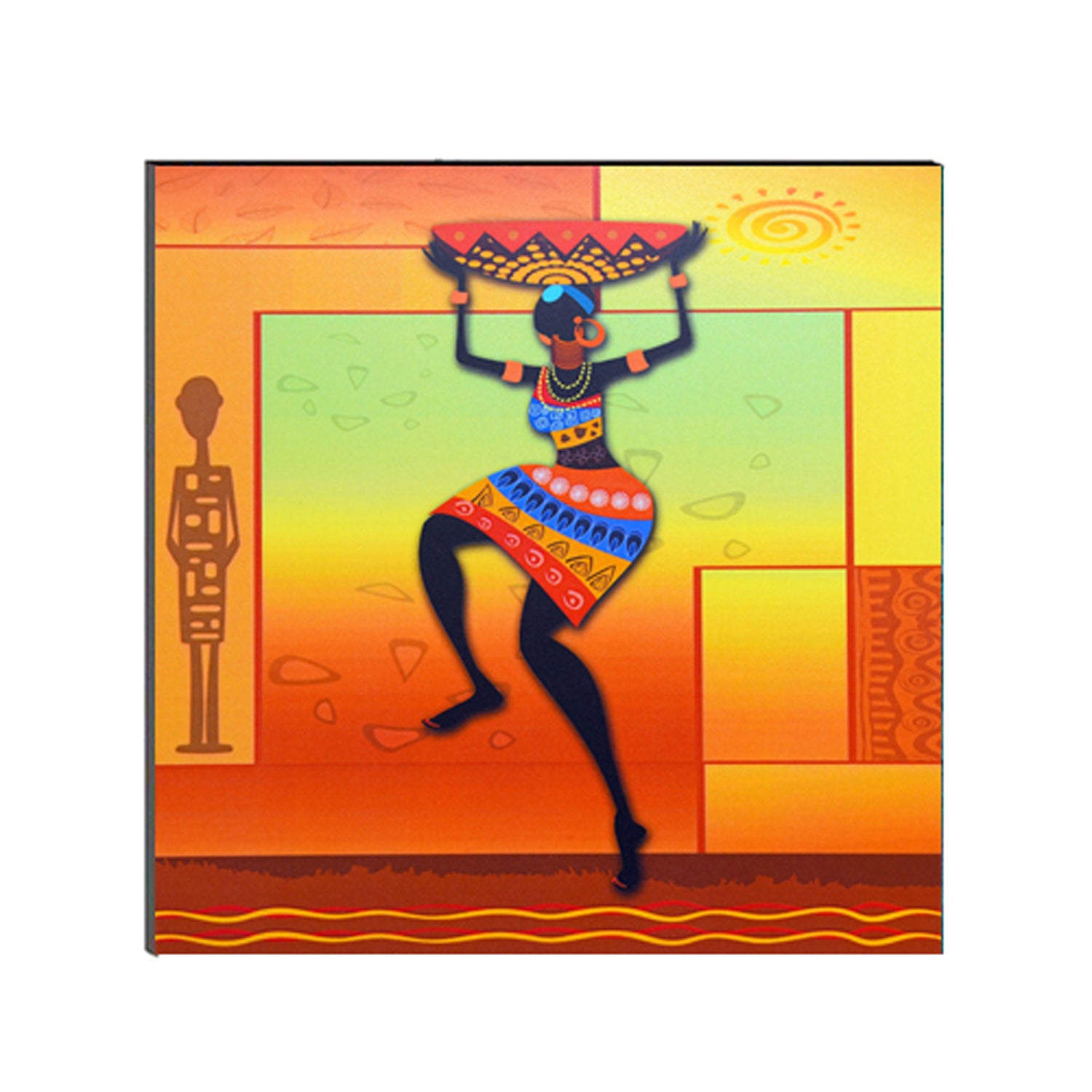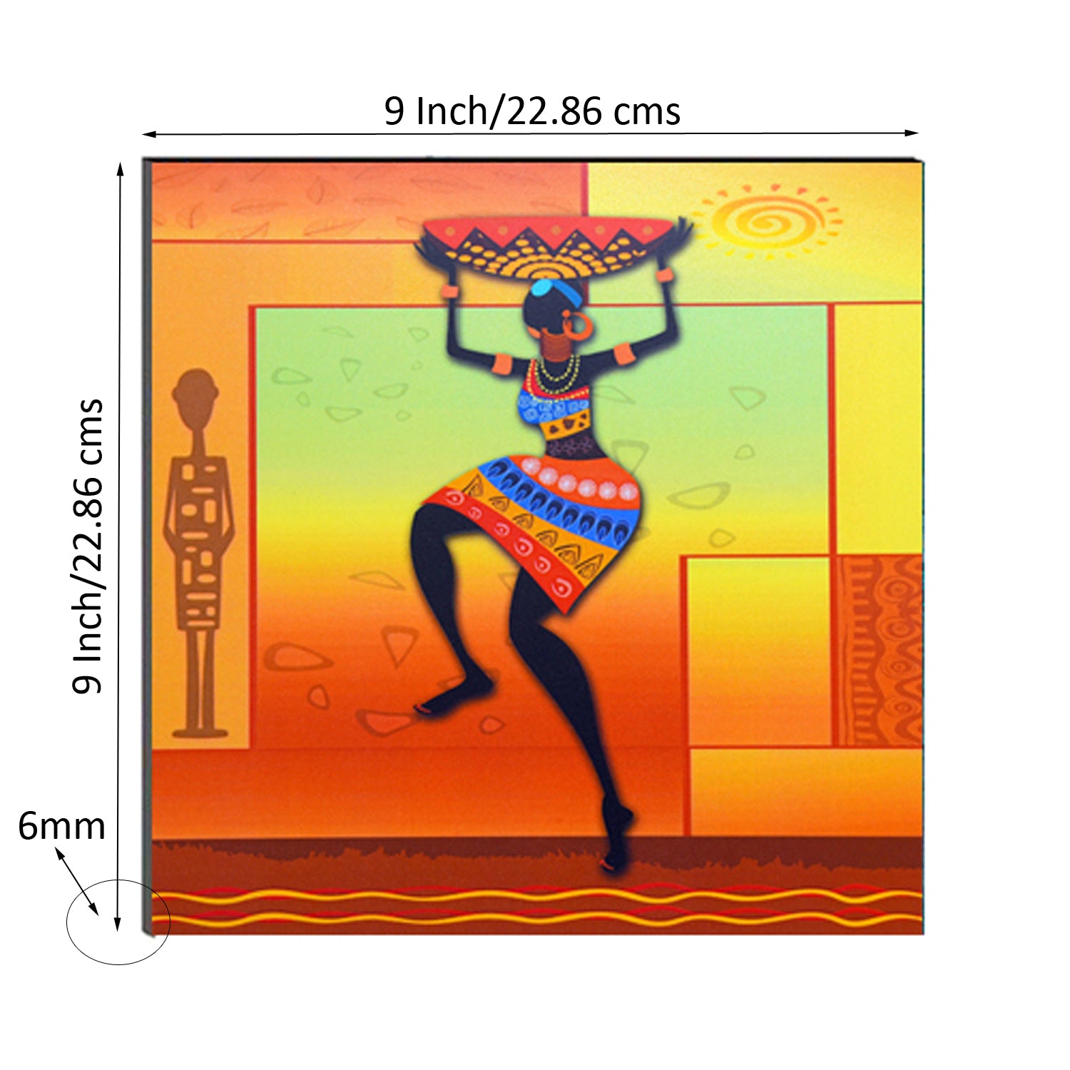 Package Content - One 6MM MDF Dancing Tribal Woman Satin Matt Texture UV Art Painting