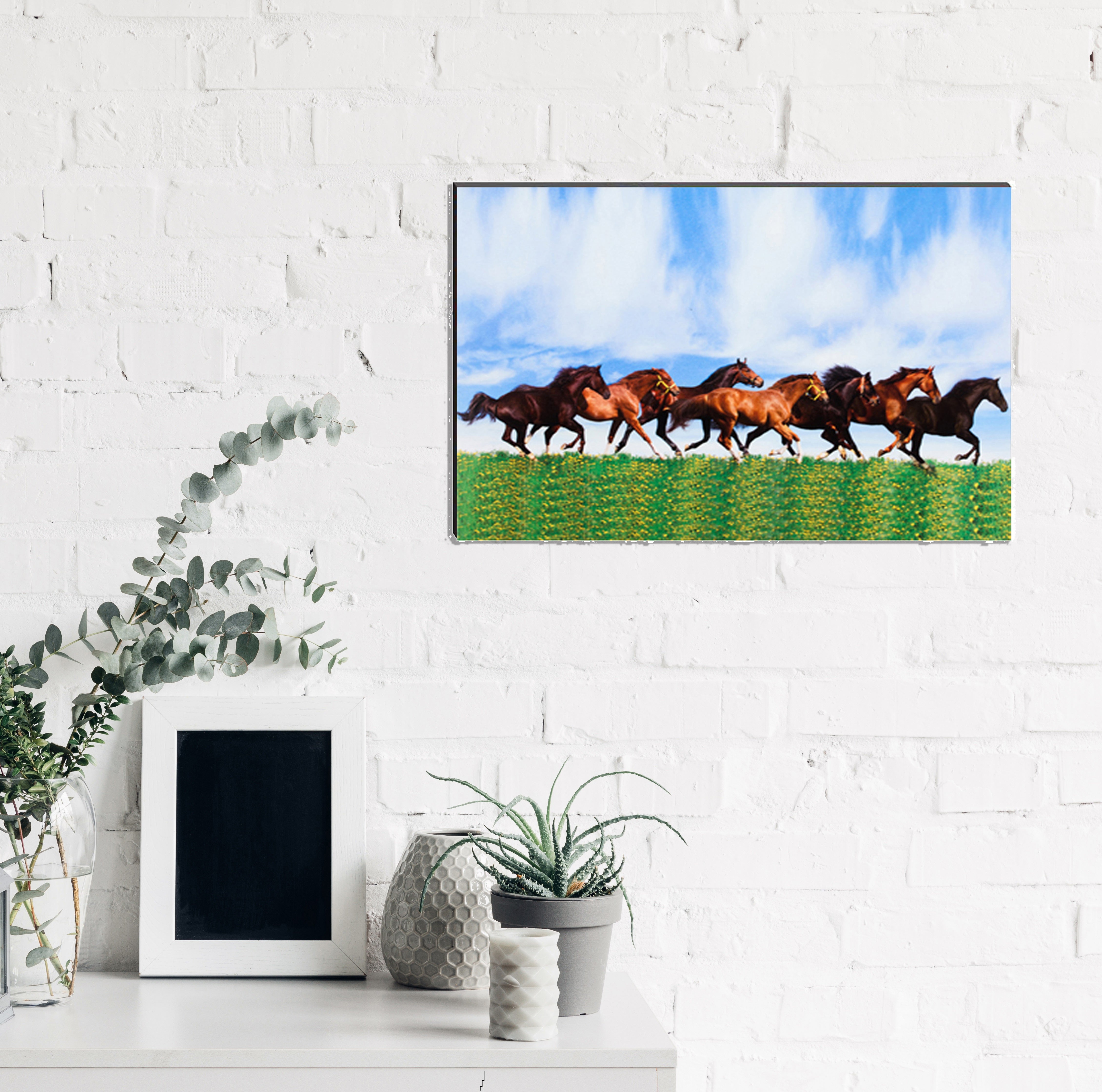 Package Content - One 6MM MDF 7 Lucky Running Horses Satin Matt Texture UV Art Painting