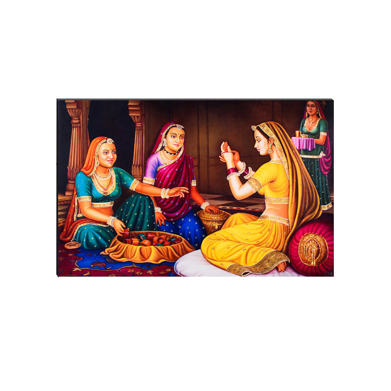 Package Content - One 6MM MDF Village Women Satin Matt Texture UV Art Painting