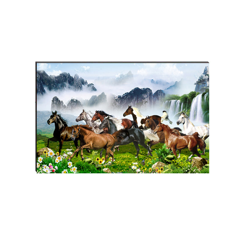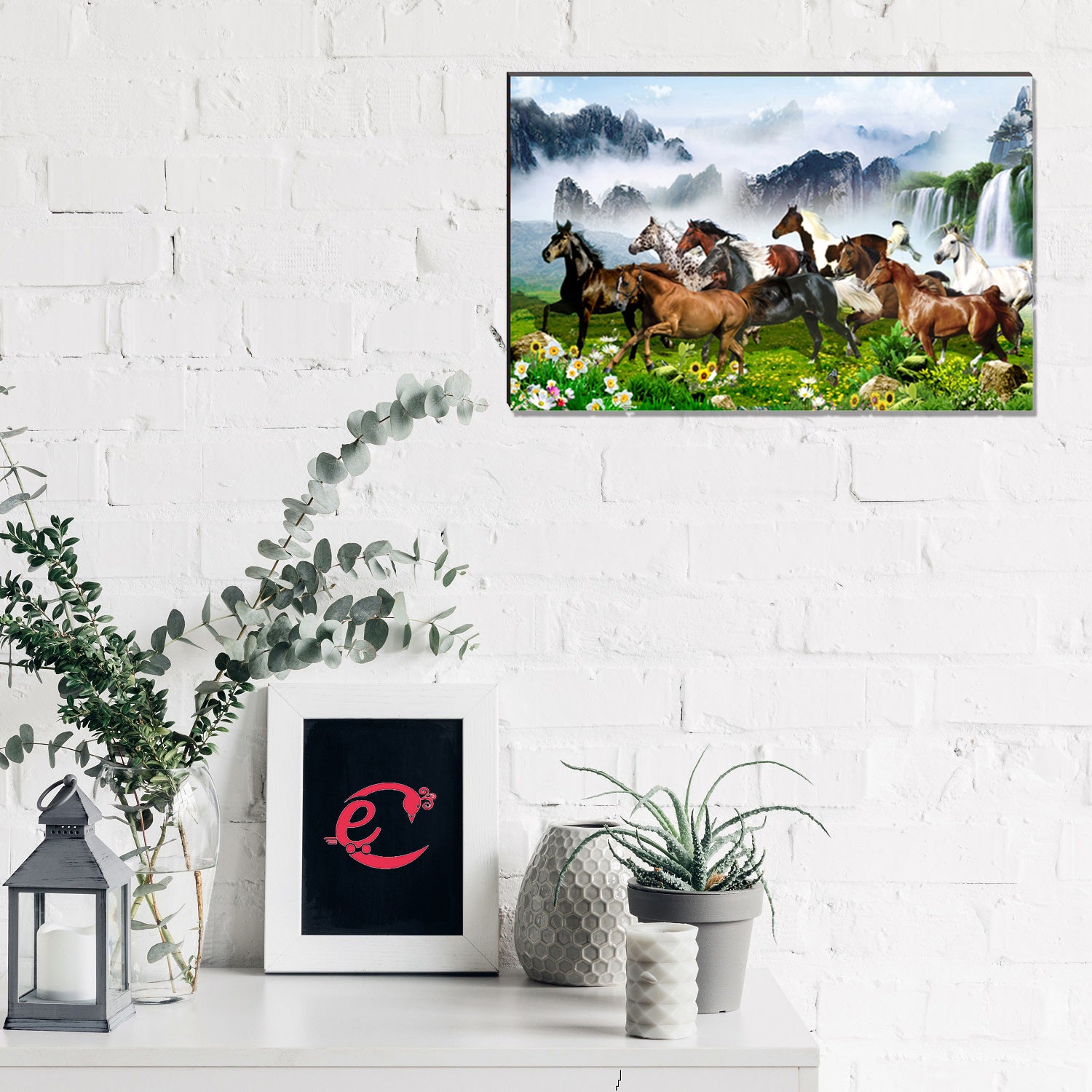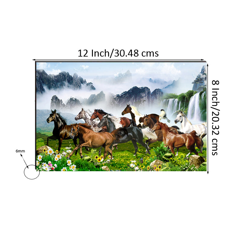 Package Content - One 6MM MDF 7 Lucky Running Horses Satin Matt Texture UV Art Painting