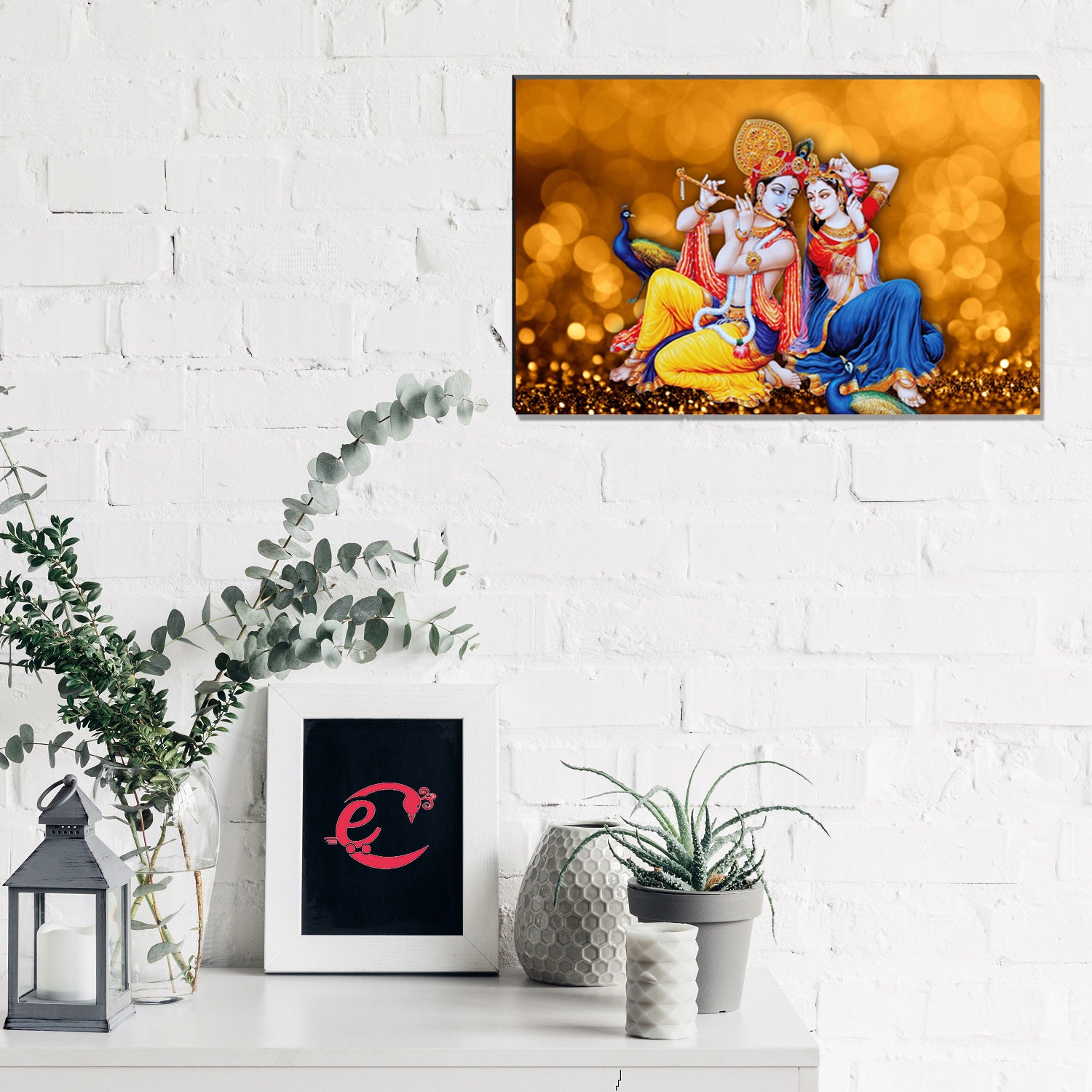 6MM MDF Radha Krishna Playing Flute Satin Matt Texture UV Art Painting - eCraftIndia Online