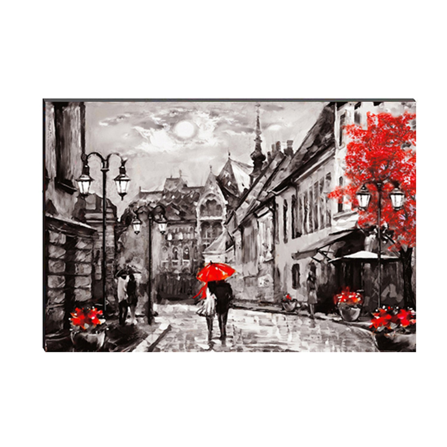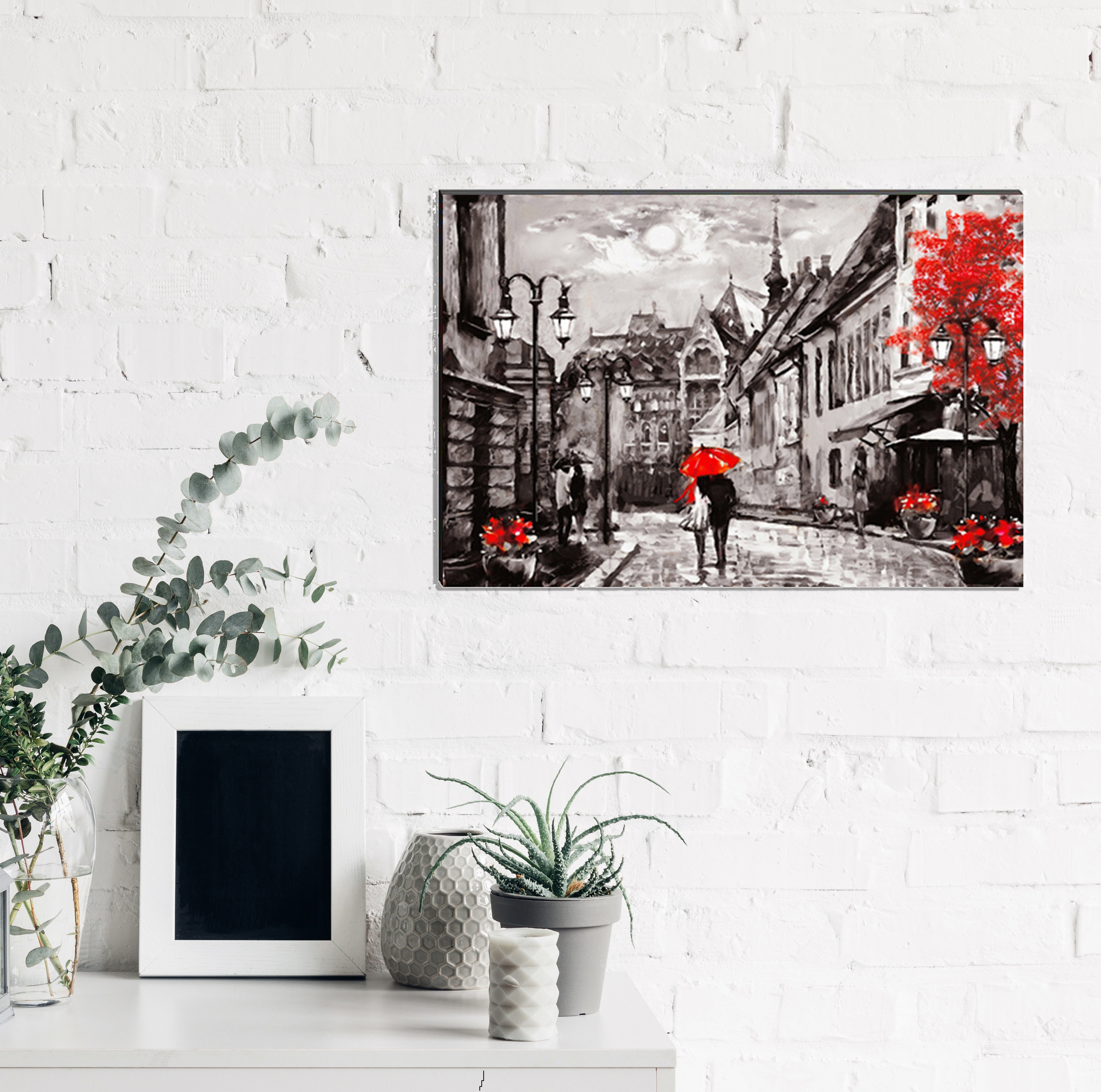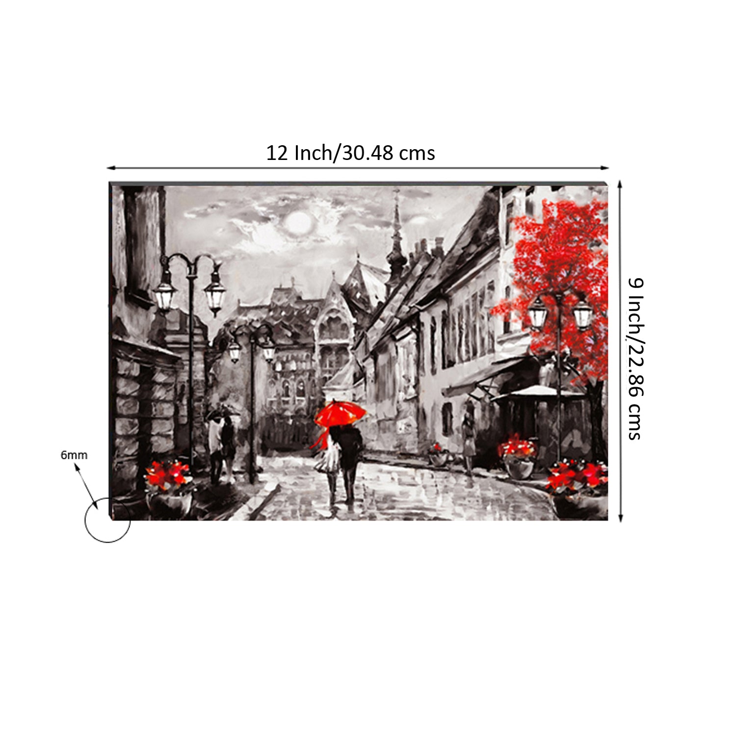 Package Content - One 6MM MDF Couple under Red Umbrella Satin Matt Texture UV Art Painting