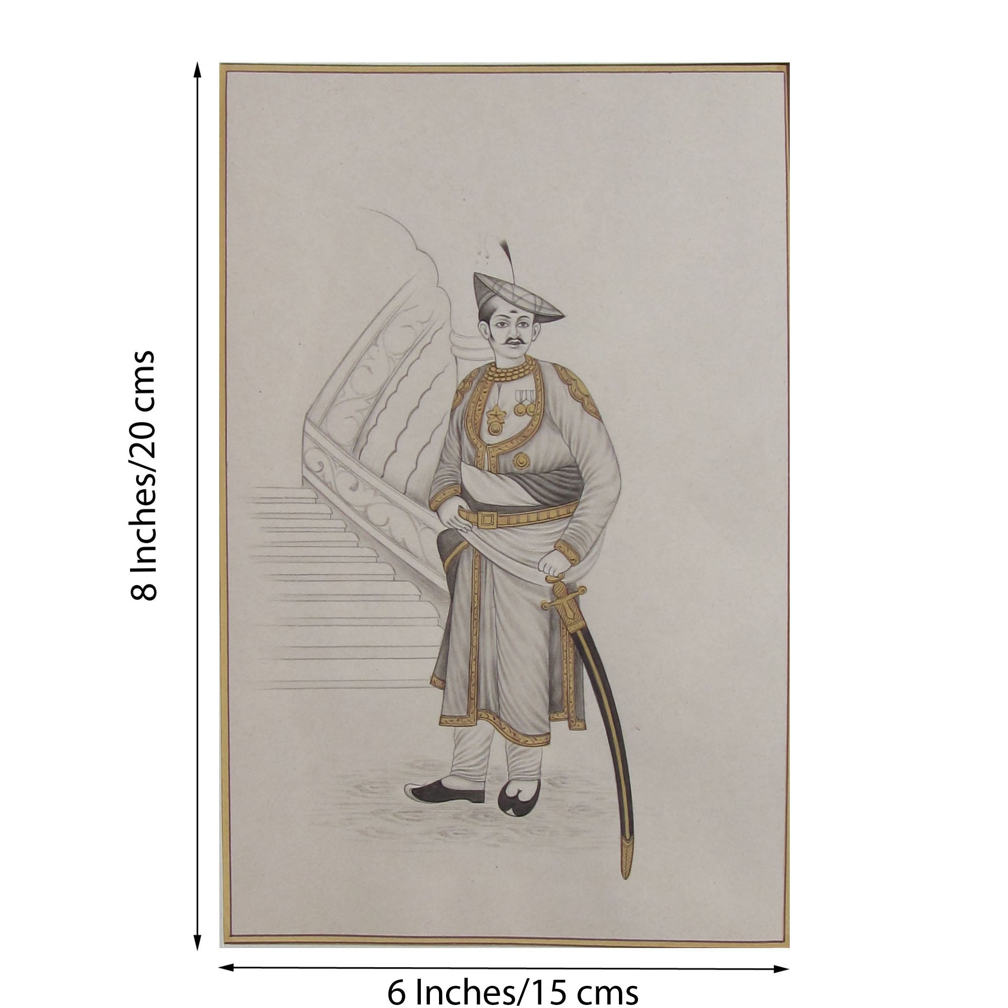 Package Content - One Royal King with his Sword Original Art Paper Painting without Frame