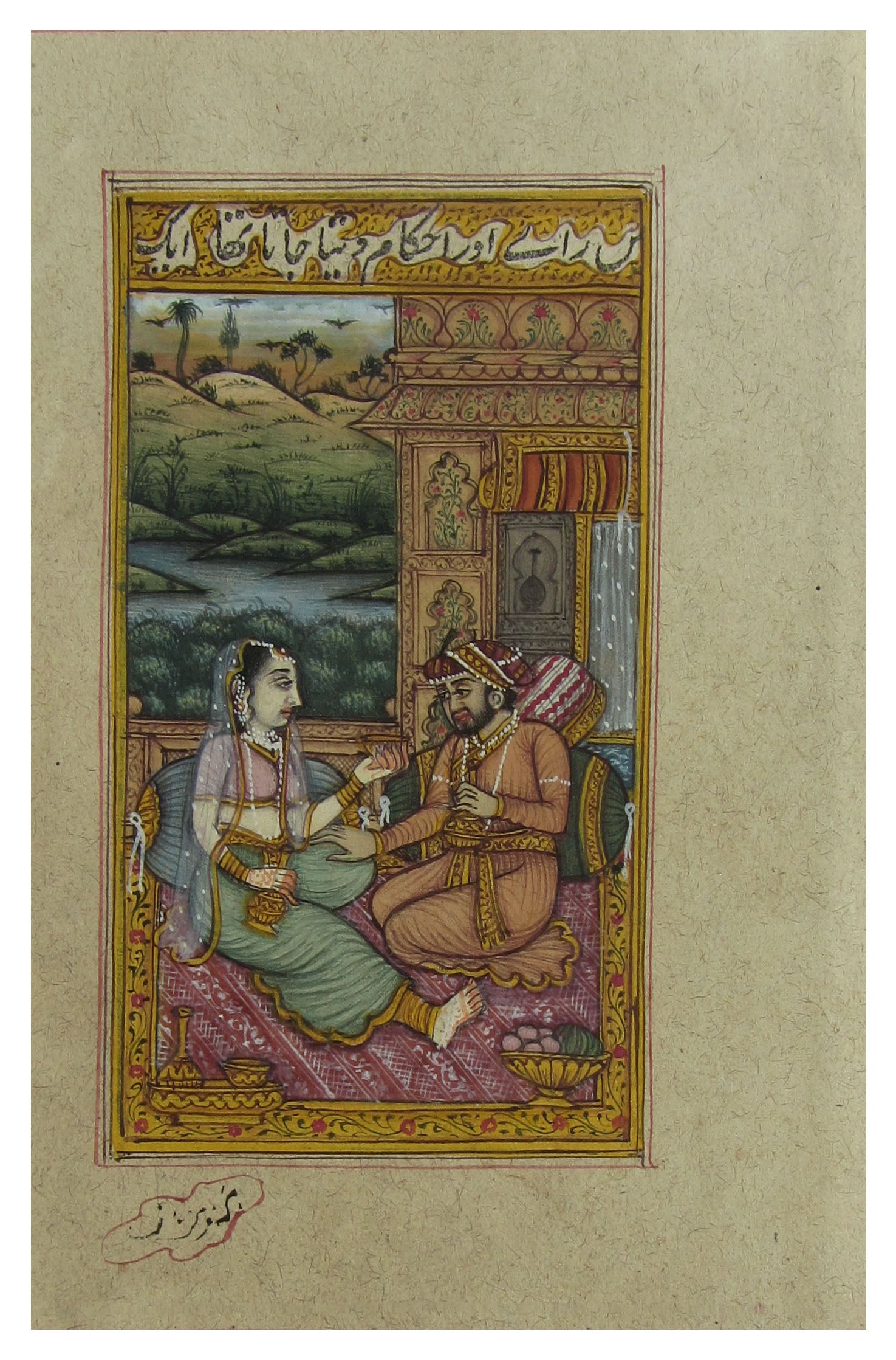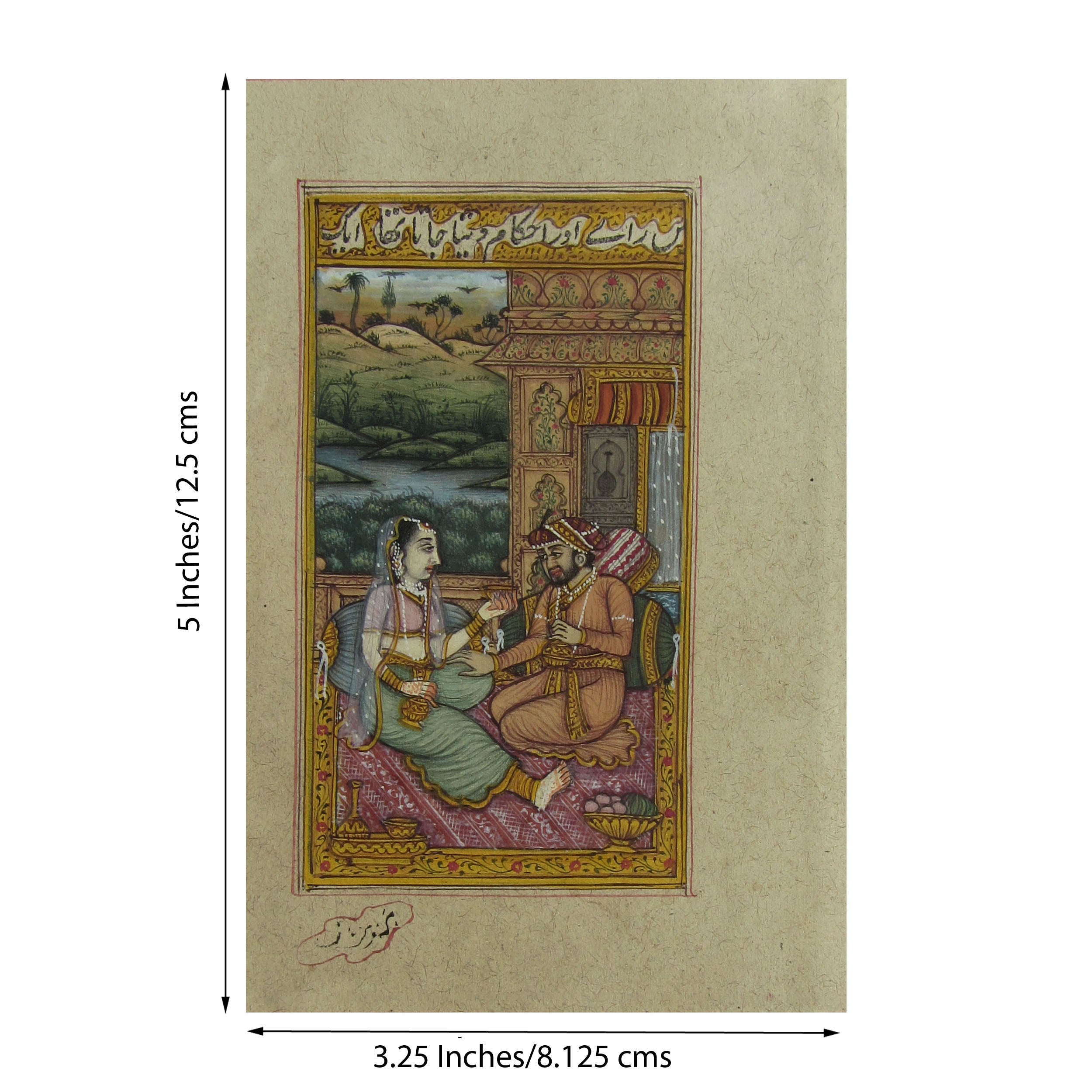 Package Content - One Mughal Love Scene at Palace Original Art Paper Painting without Frame