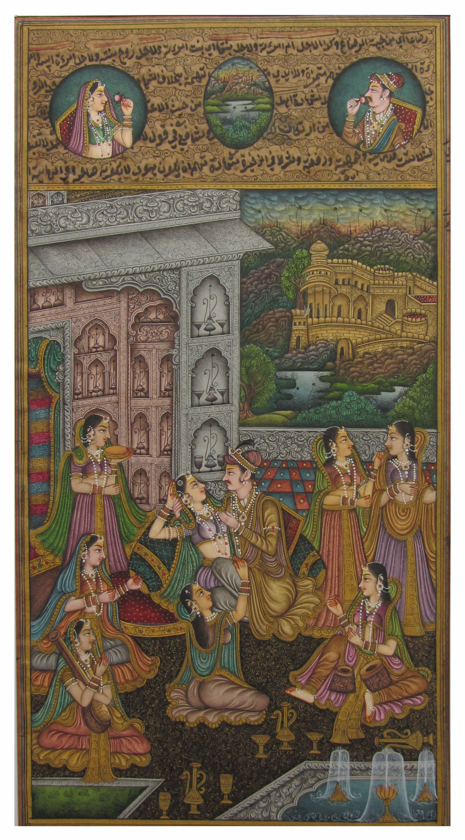 Package Content - One Dignified Mughal Love Scene Original Art Paper Painting without Frame