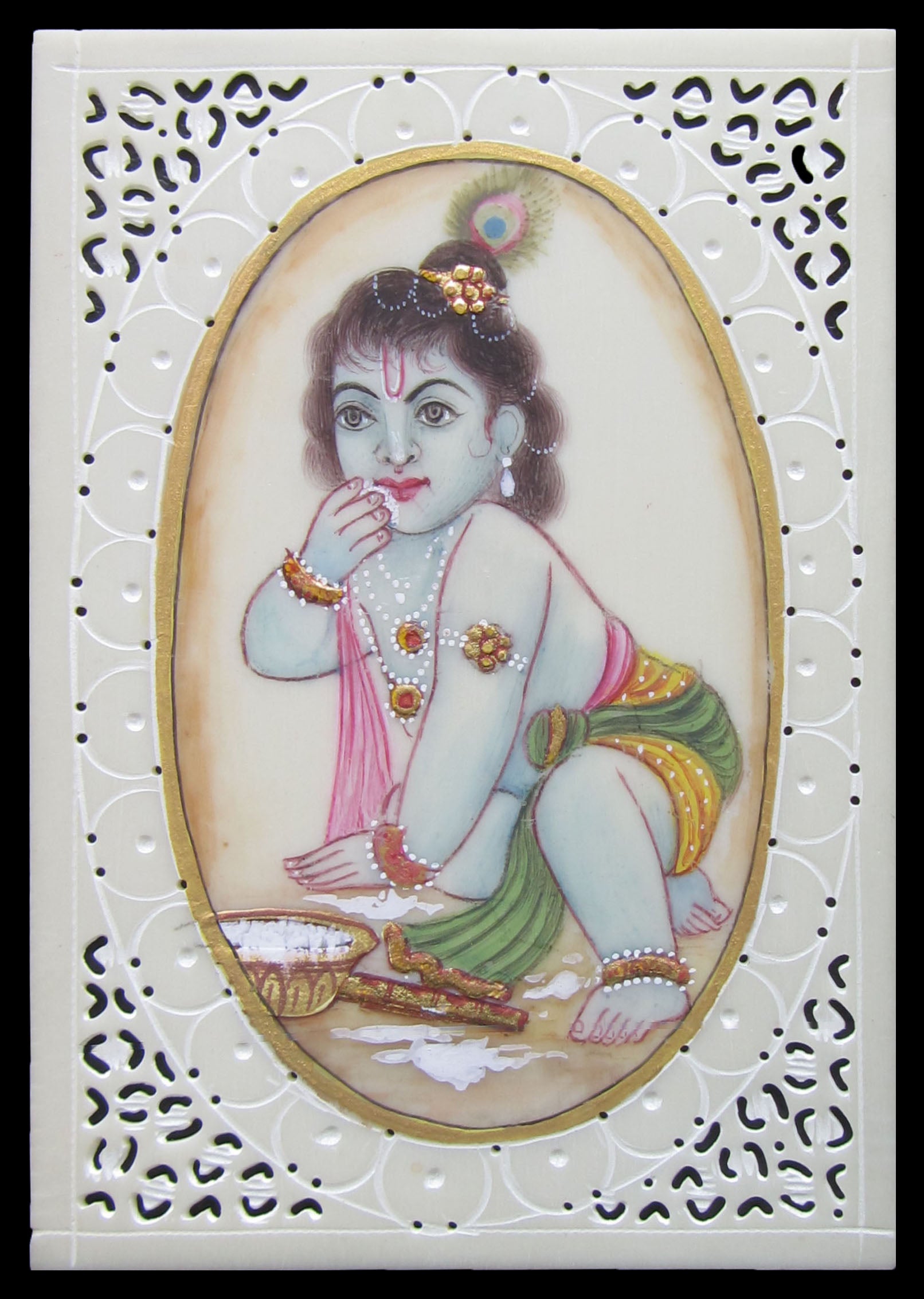 Package Content - One Baby Krishna Original Art Synthetic Plastic Sheet Painting without Frame