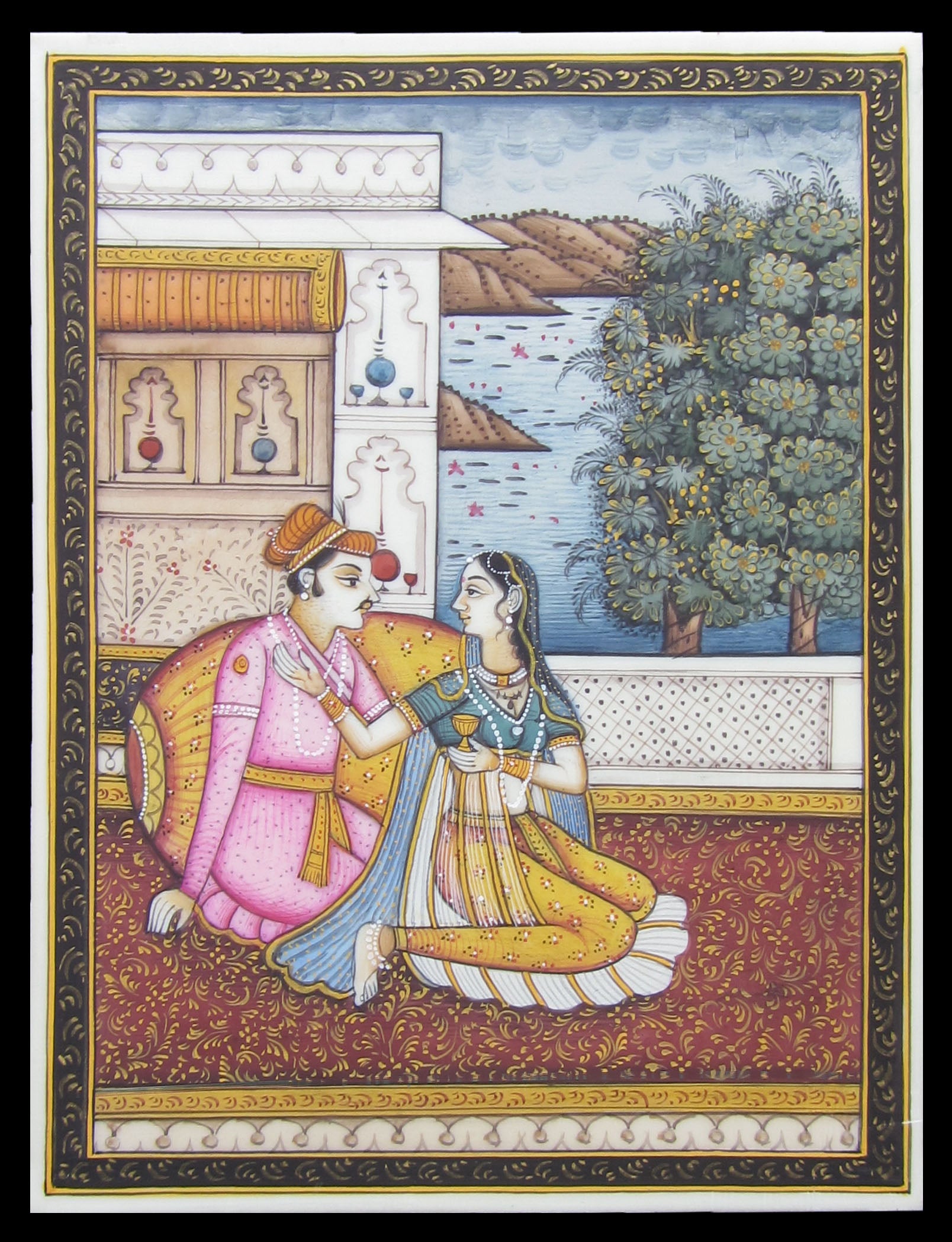 Package Content - One Amorous Mughal Evening Original Art Synthetic Plastic Sheet Painting without Frame