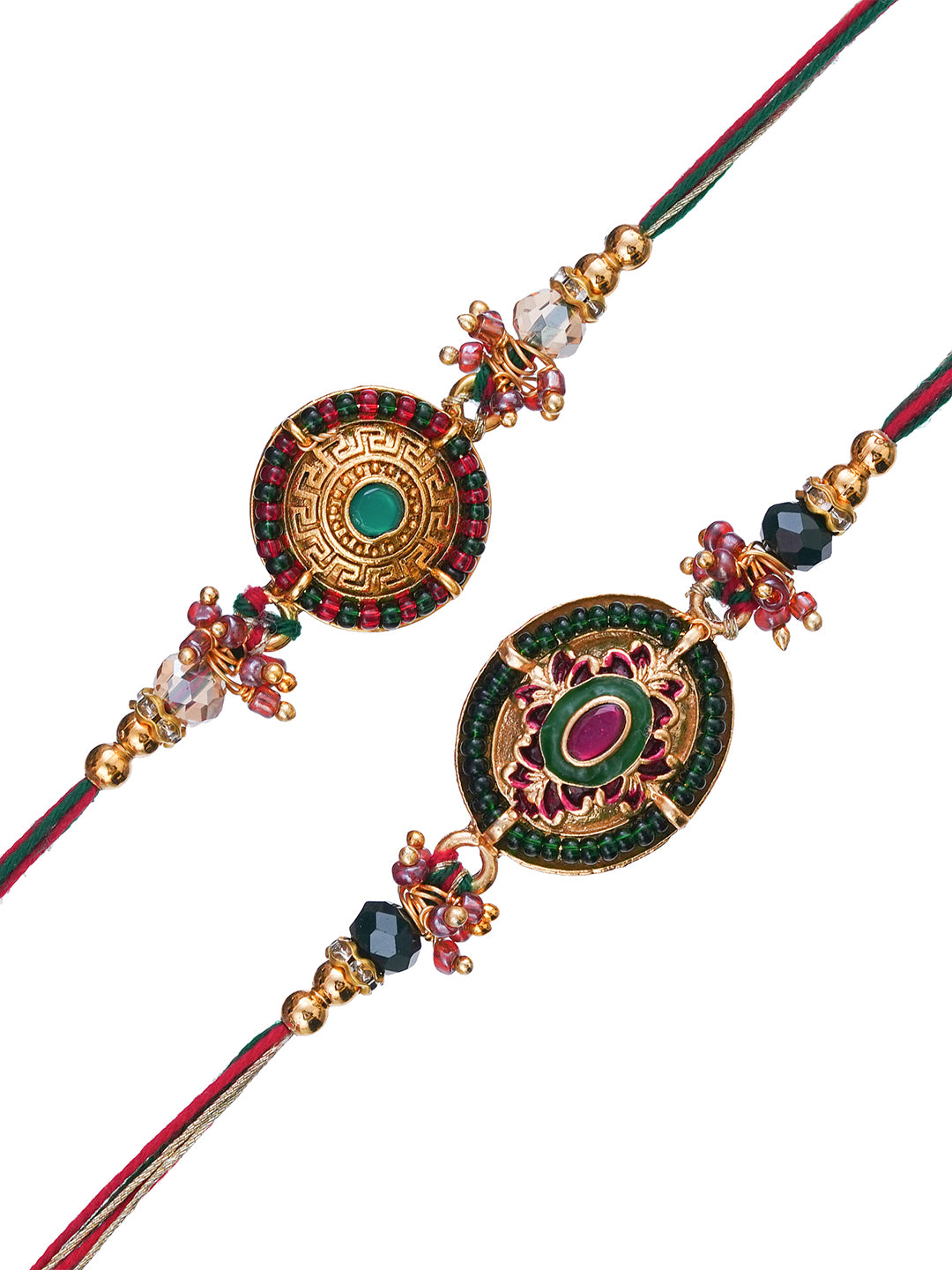 Package Content - Set of 2 Designer Rakhis, 1 Roli Chawal Pack