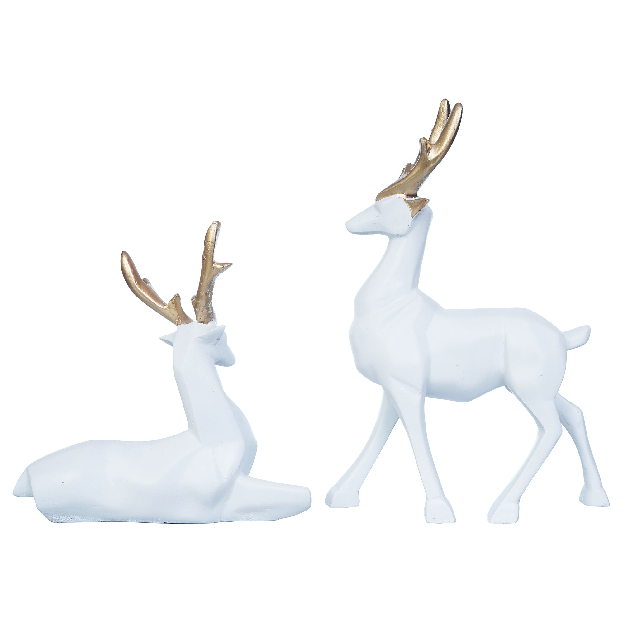 Package Content - Set of 2 Golden & White Reindeer Statues Animal Figurines Showpieces