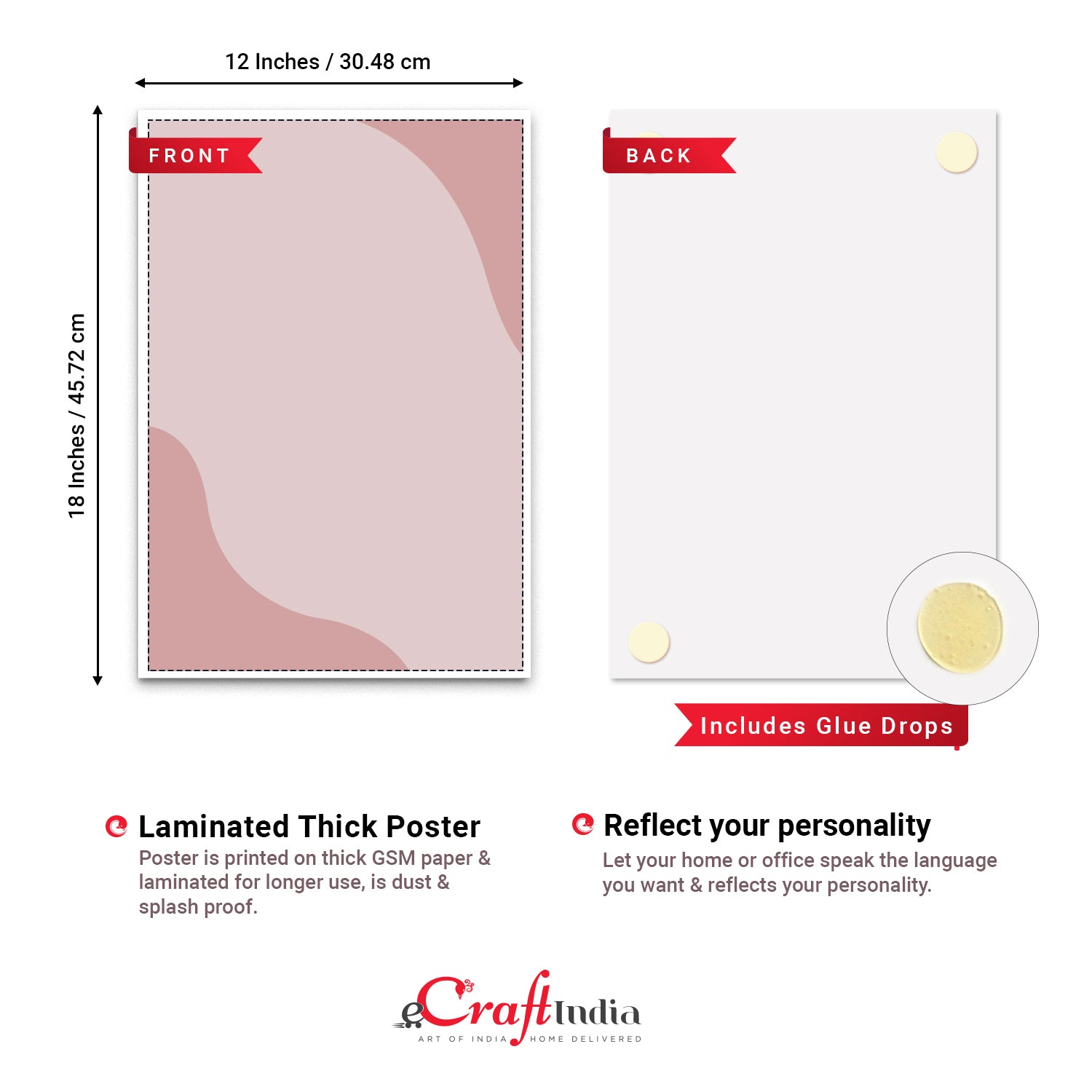 Product Description - Decorate your home & office walls with eCraftIndia Set of 10 Motivational Positive Office Quotes High Quality Printed 300 GSM Posters with Glue Drops. Each design reflects the artistic qualities and time one has taken to design these posters. Exquisitely printed on high quality paper, it is also a perfect gifting option. These posters comes with high quality Glue Drops. Glue Drops are non-messy double-sided adhesives. These can be used for sticking posters on wall if required.